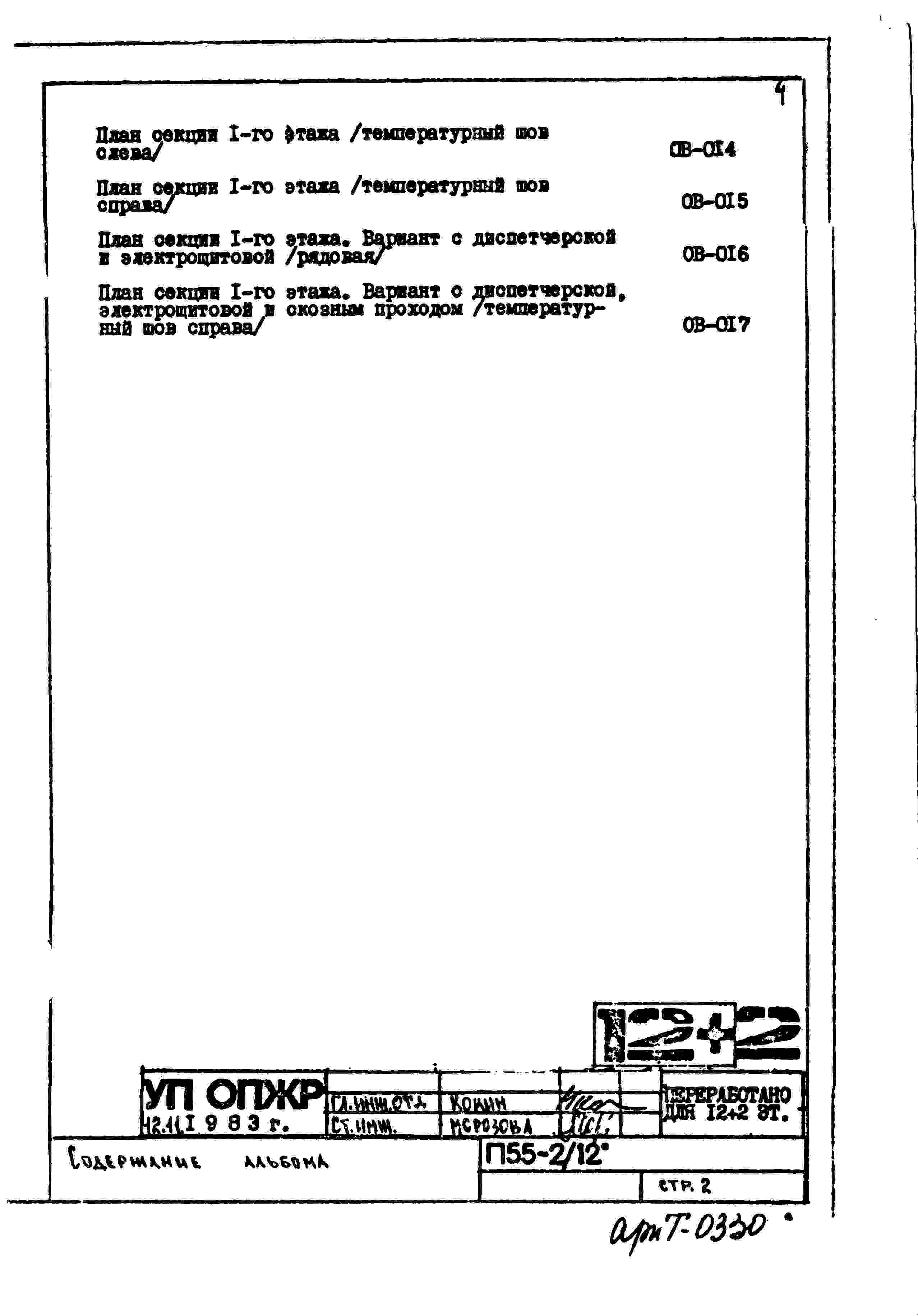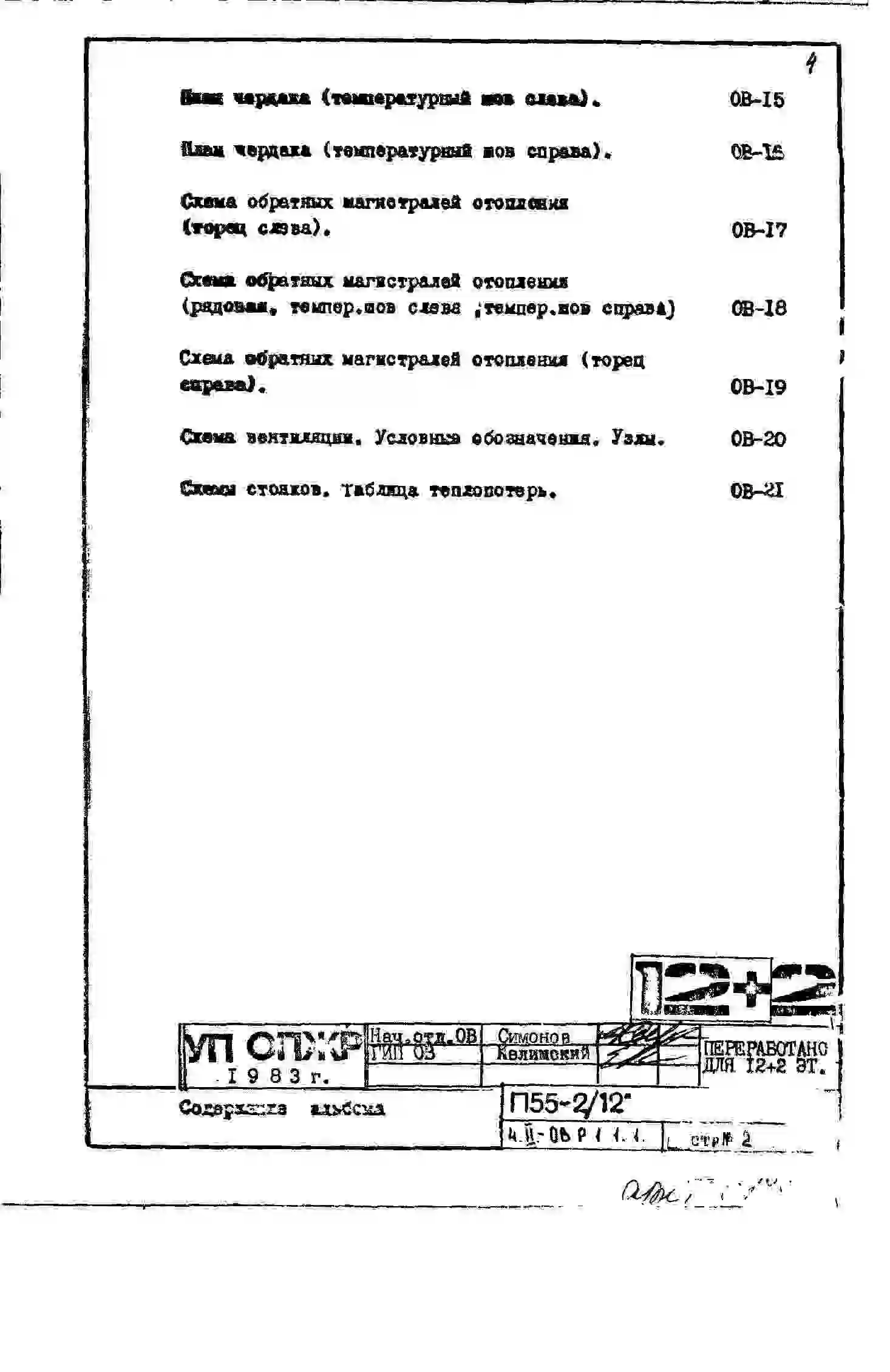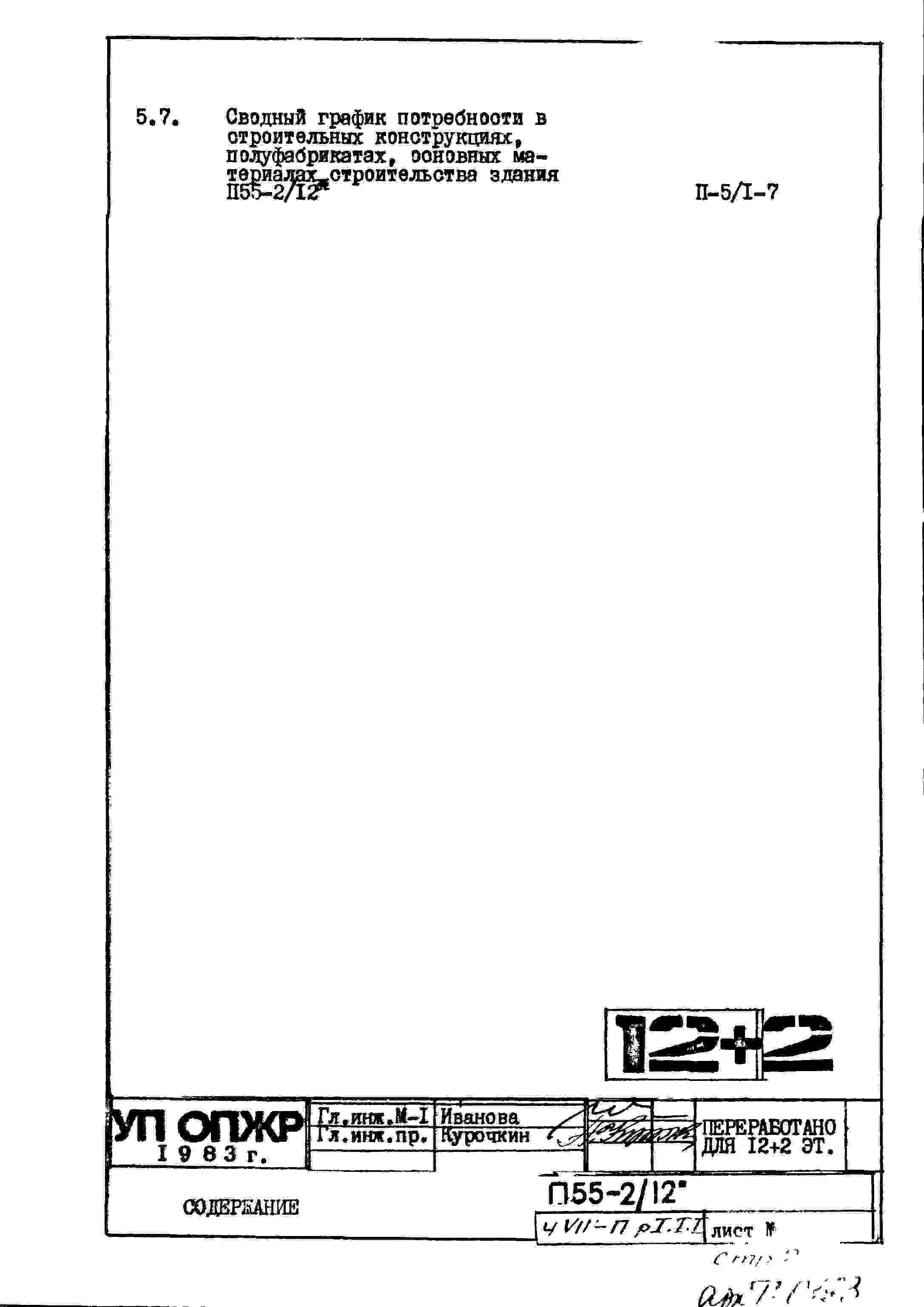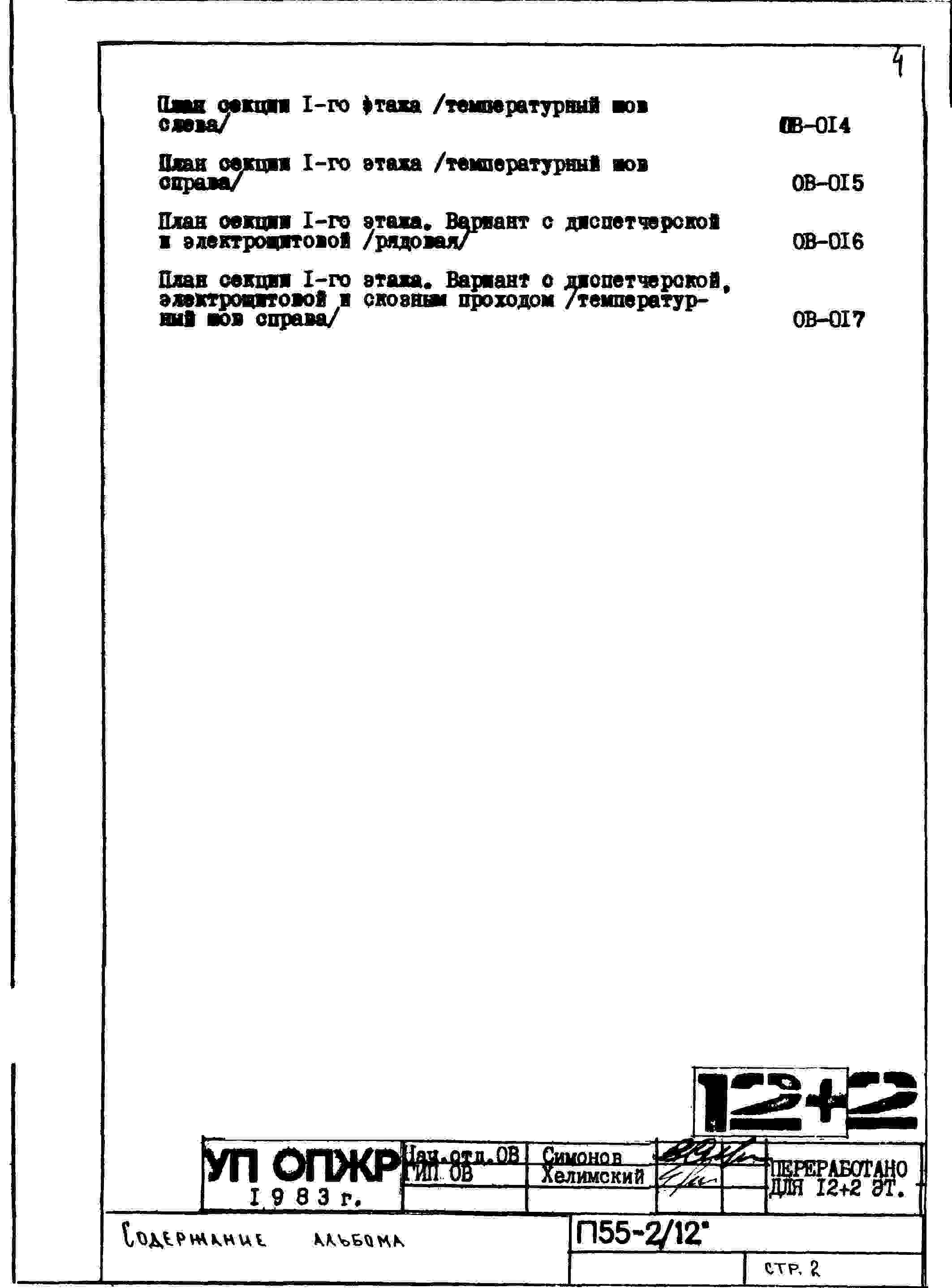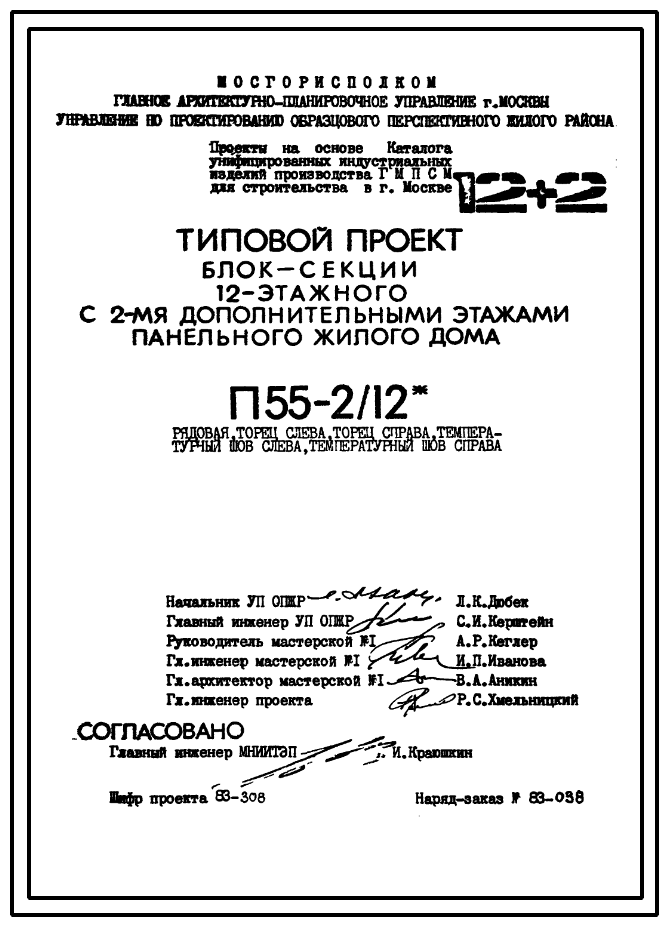Типовой проект П55-2/12 12-ти этажные с двумя дополнительными этажами панельные с первым нежилым этажом блок-секции жилого дома серии П55/12* производства ГМПСМ