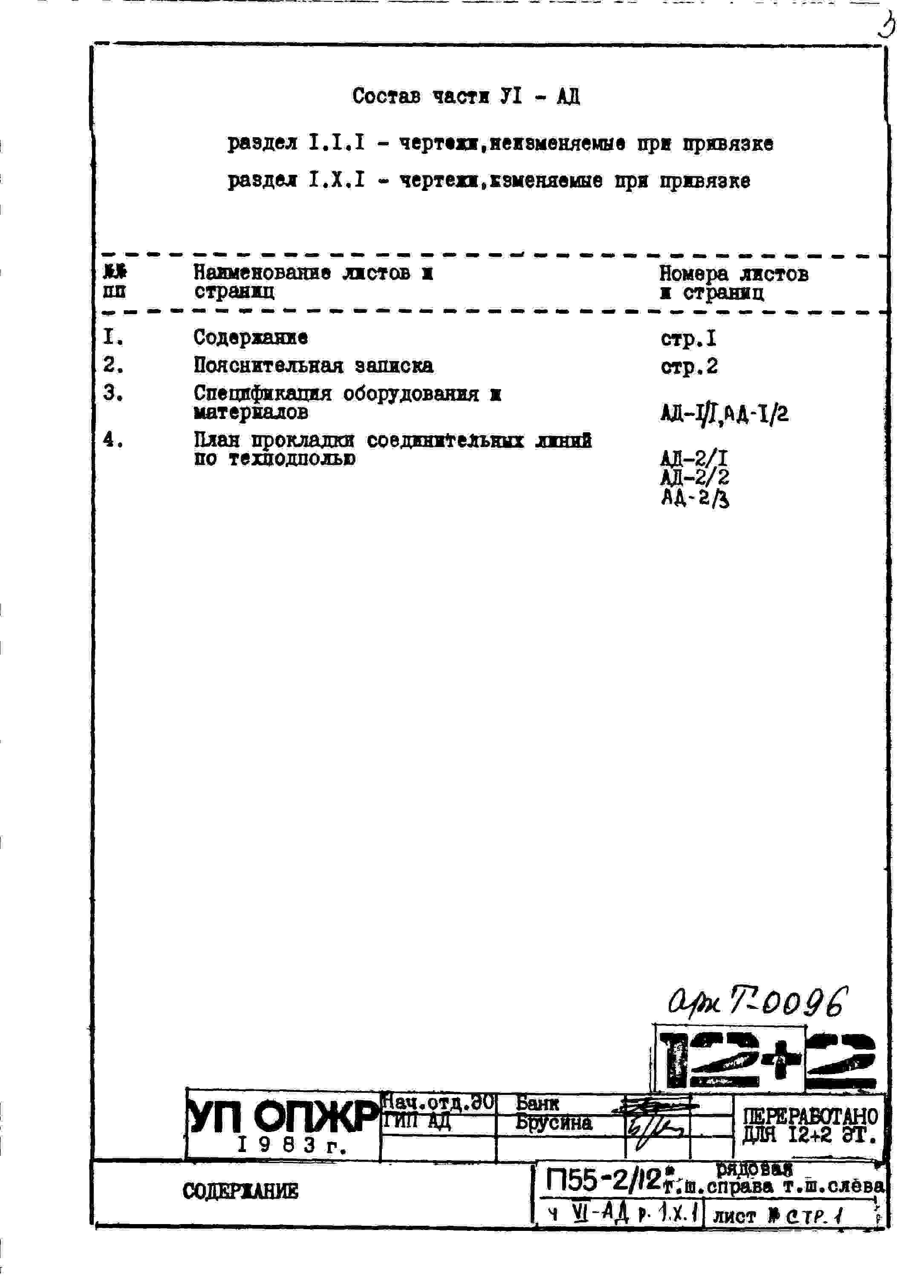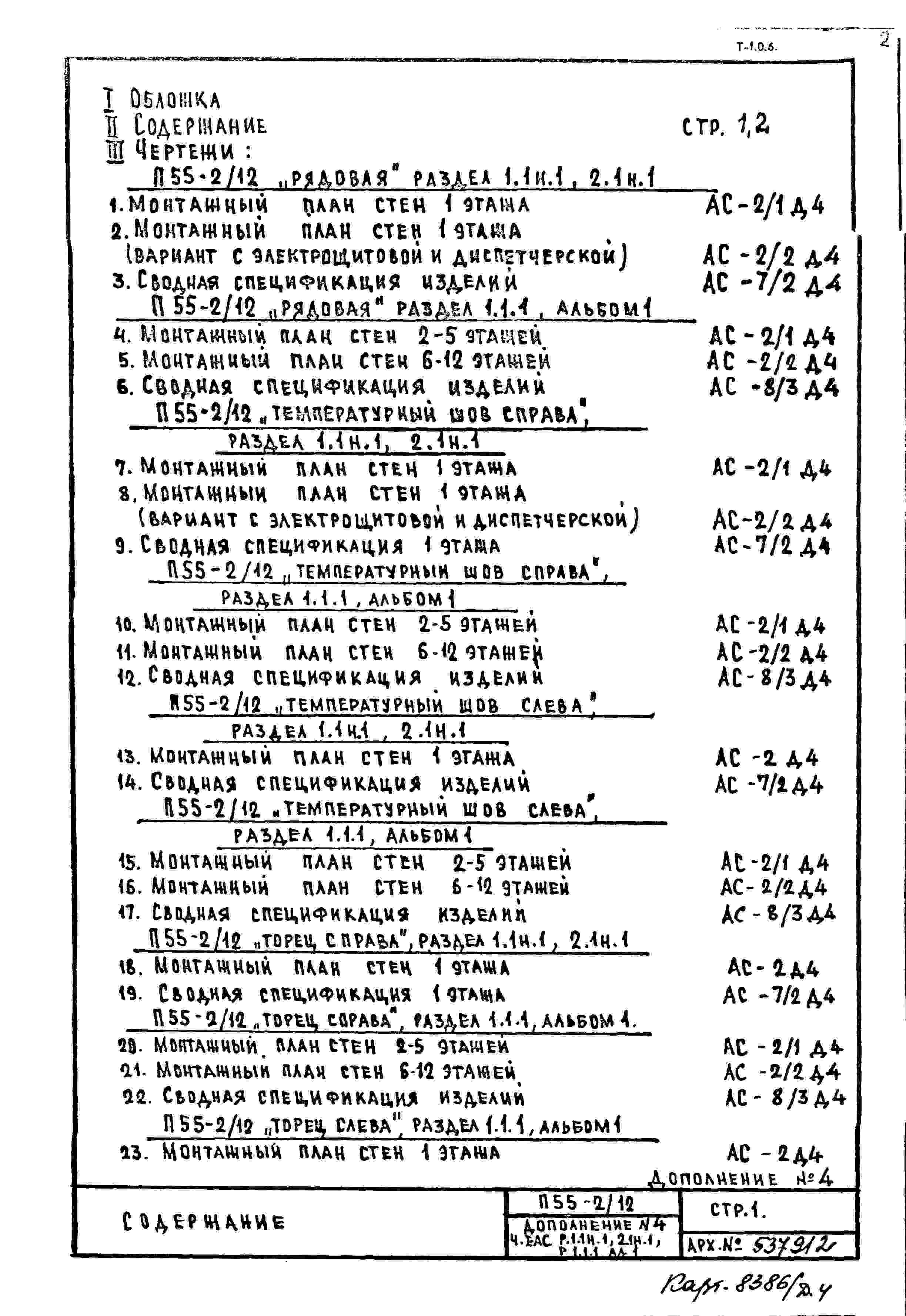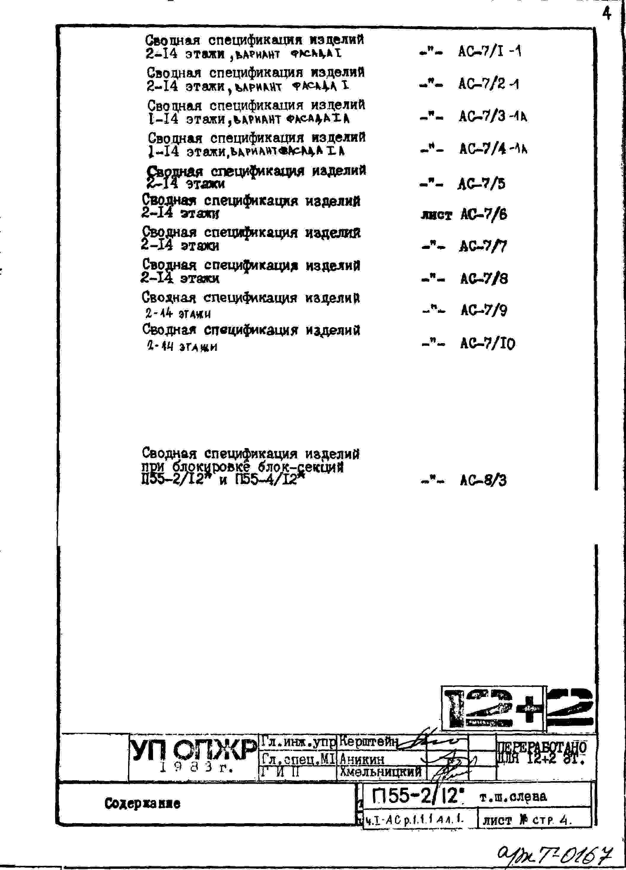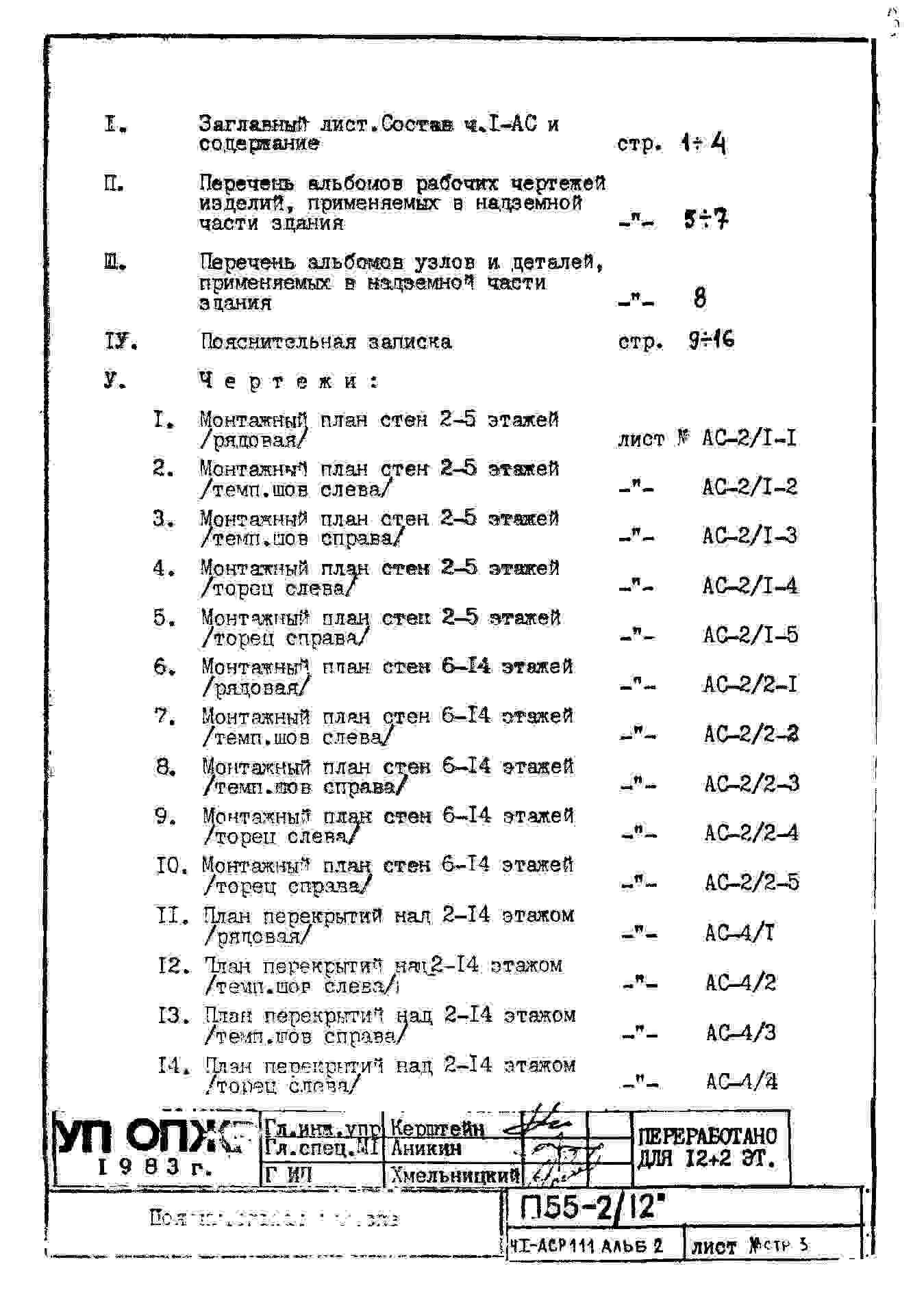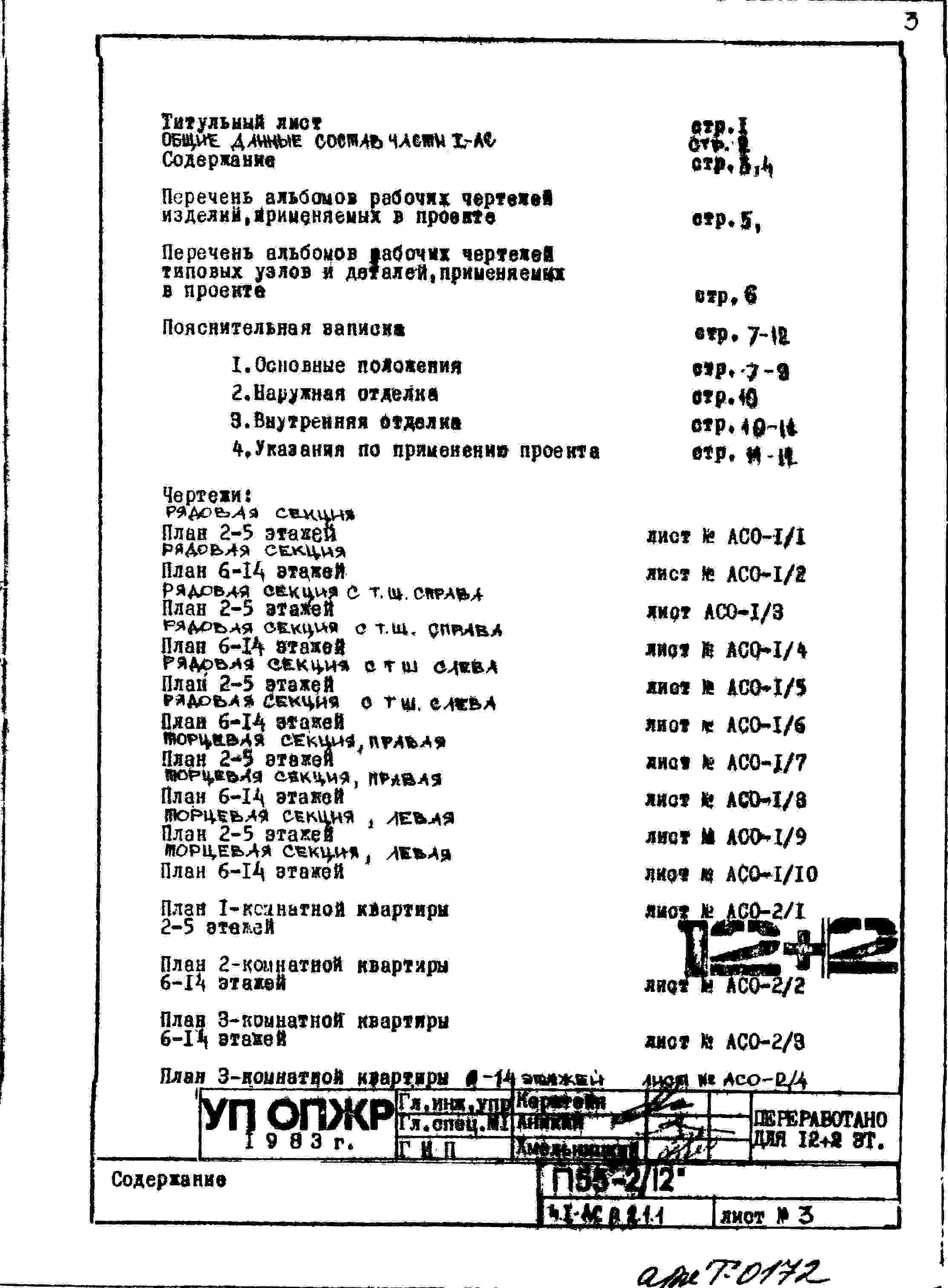 Типовой проект П55-2/12 12-ти этажные с двумя дополнительными этажами панельные с первым нежилым этажом блок-секции жилого дома серии П55/12* производства ГМПСМ