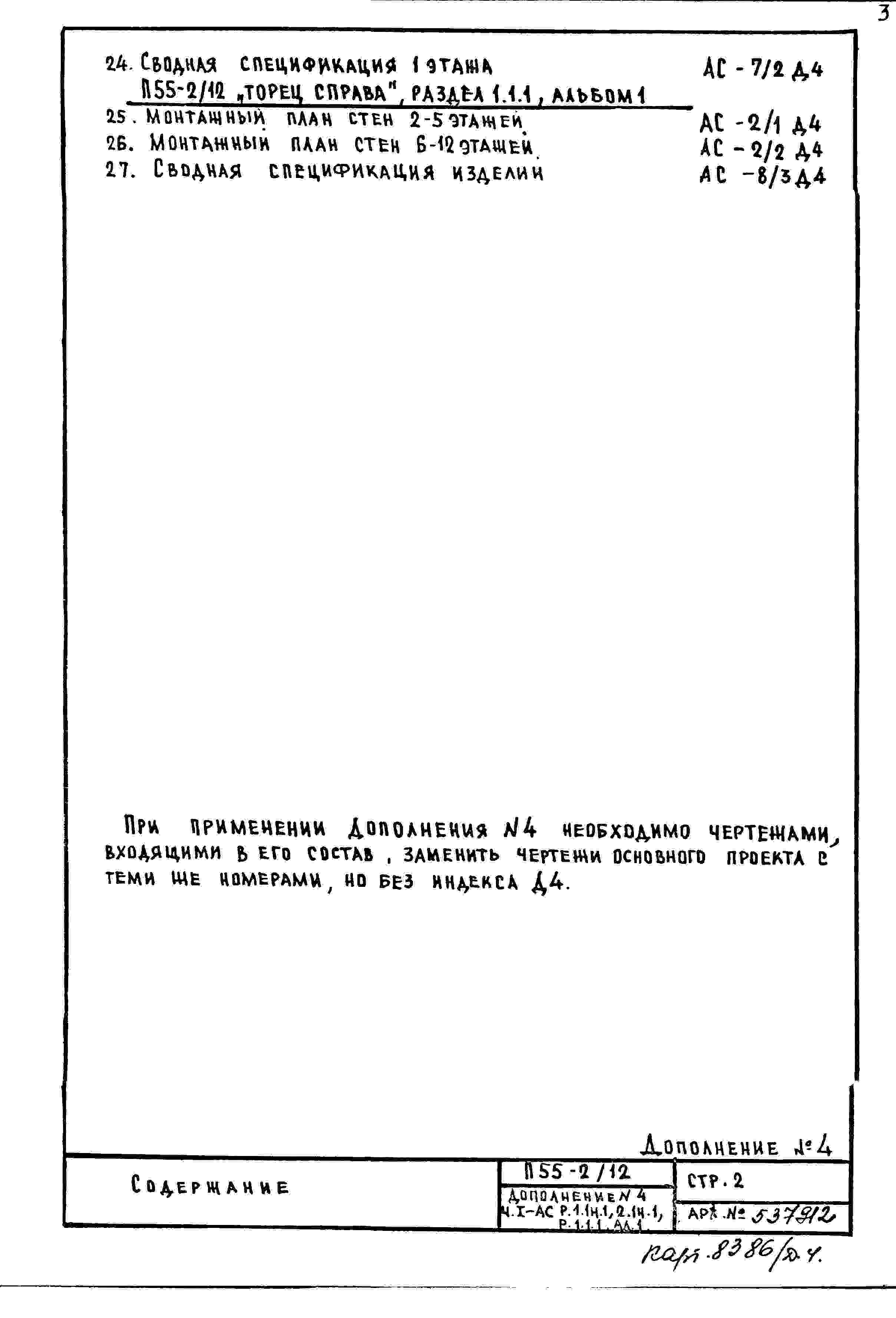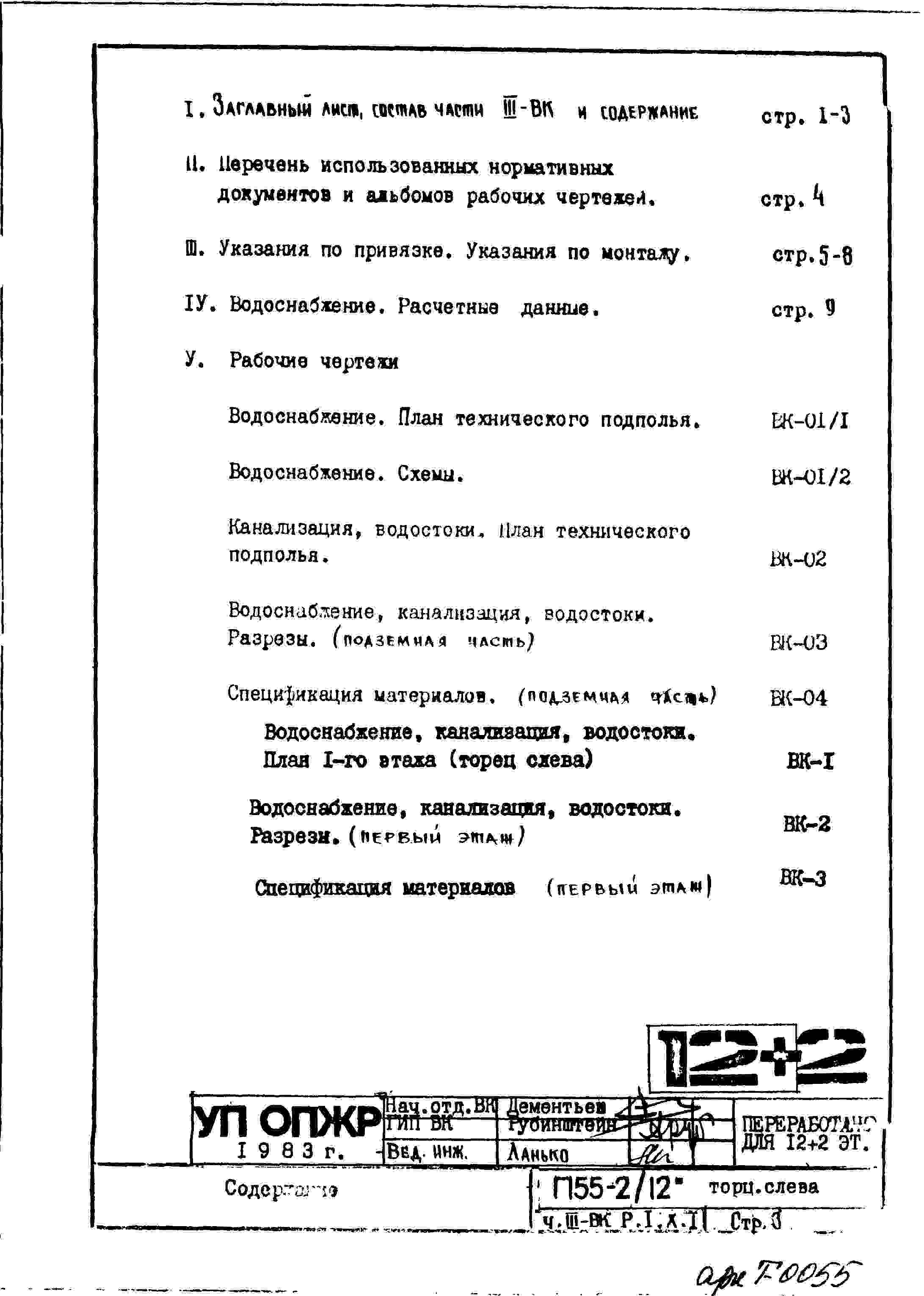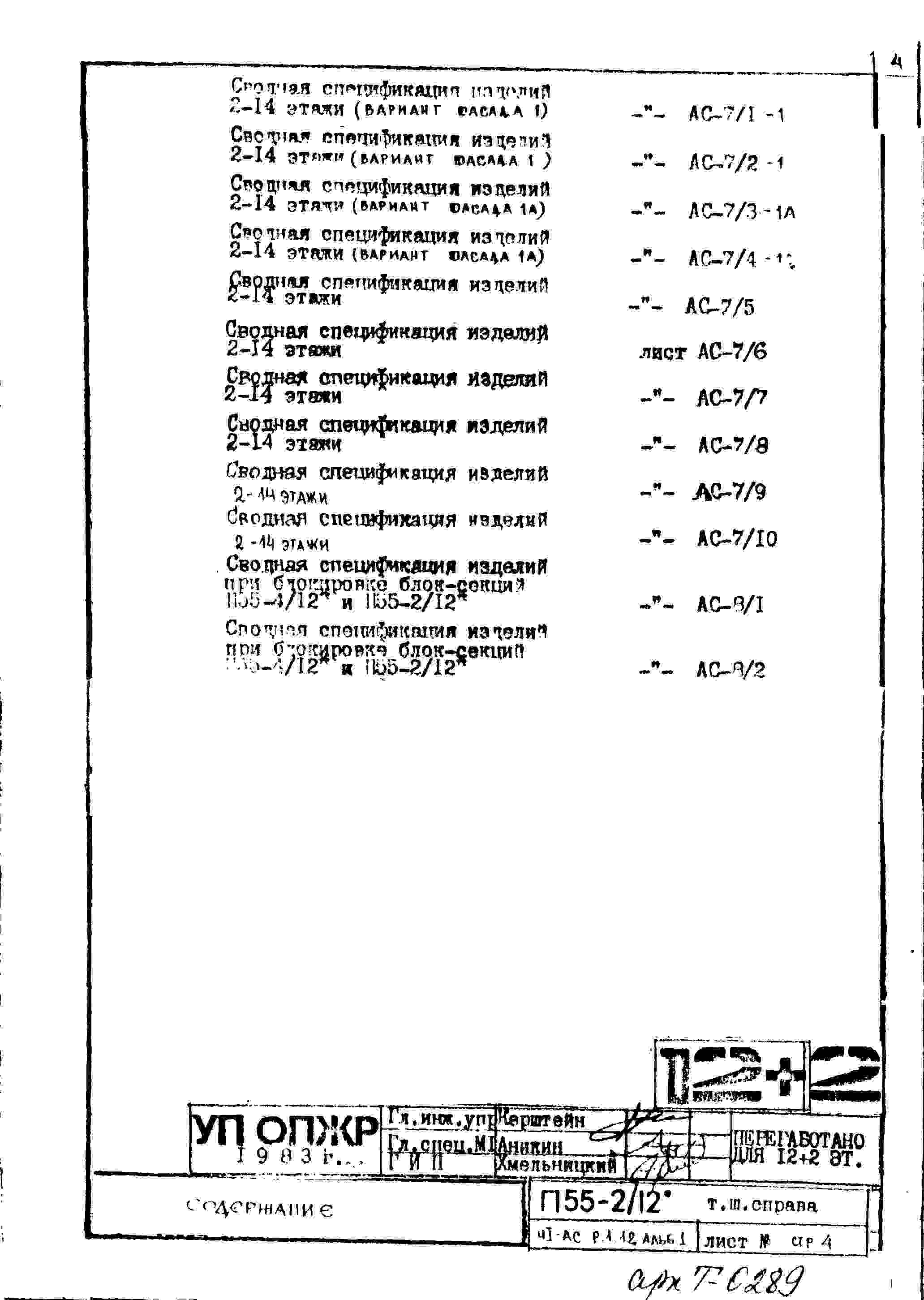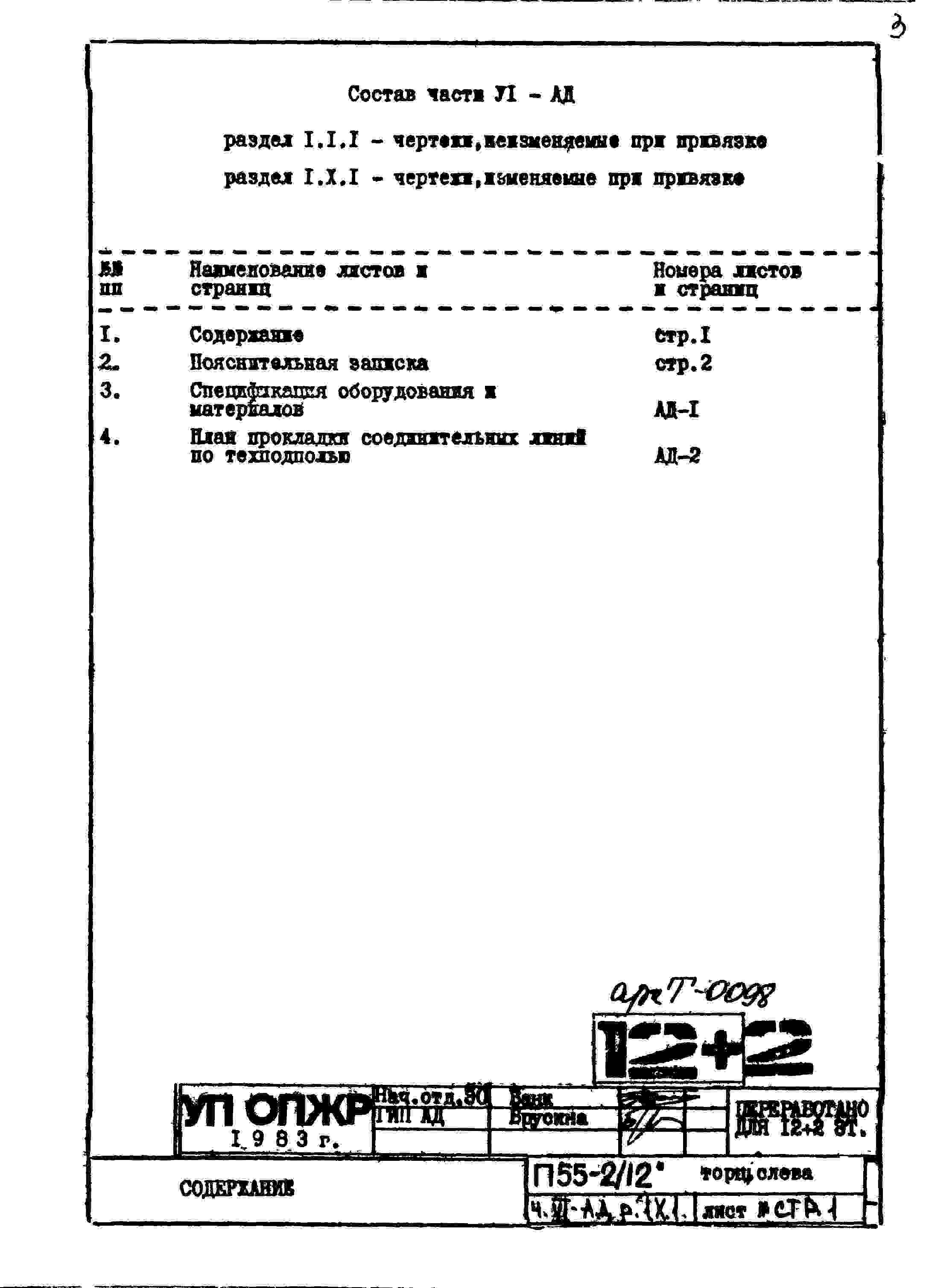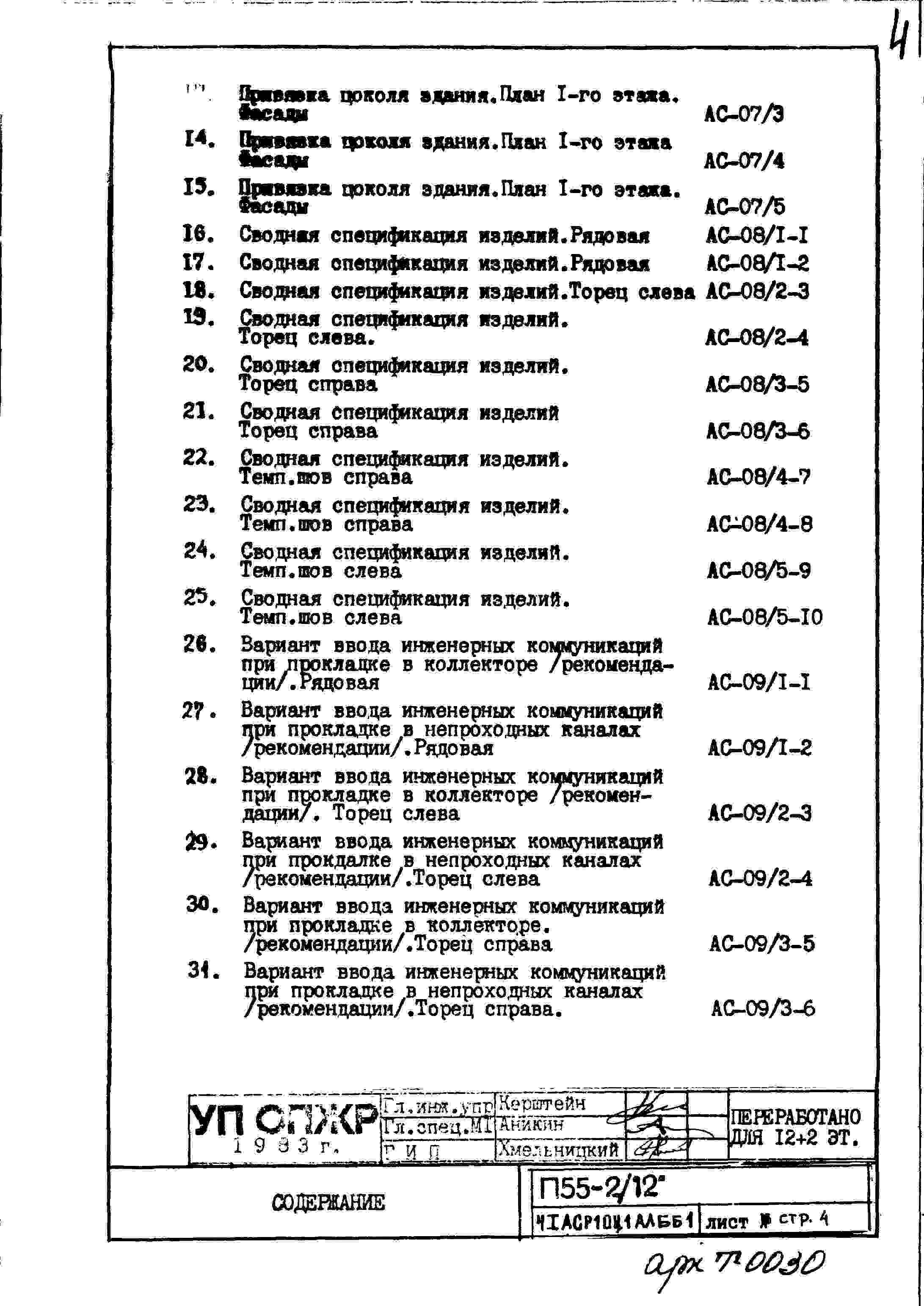 Типовой проект П55-2/12 12-ти этажные с двумя дополнительными этажами панельные с первым нежилым этажом блок-секции жилого дома серии П55/12* производства ГМПСМ