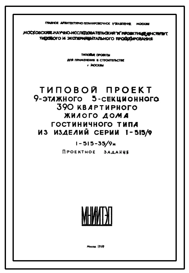 Типовой проект 1-515-35/9М 9-ти этажный 5-ти секционный 390 квартирный жилой дом гостиничного типа из изделий серии 1-515/9
