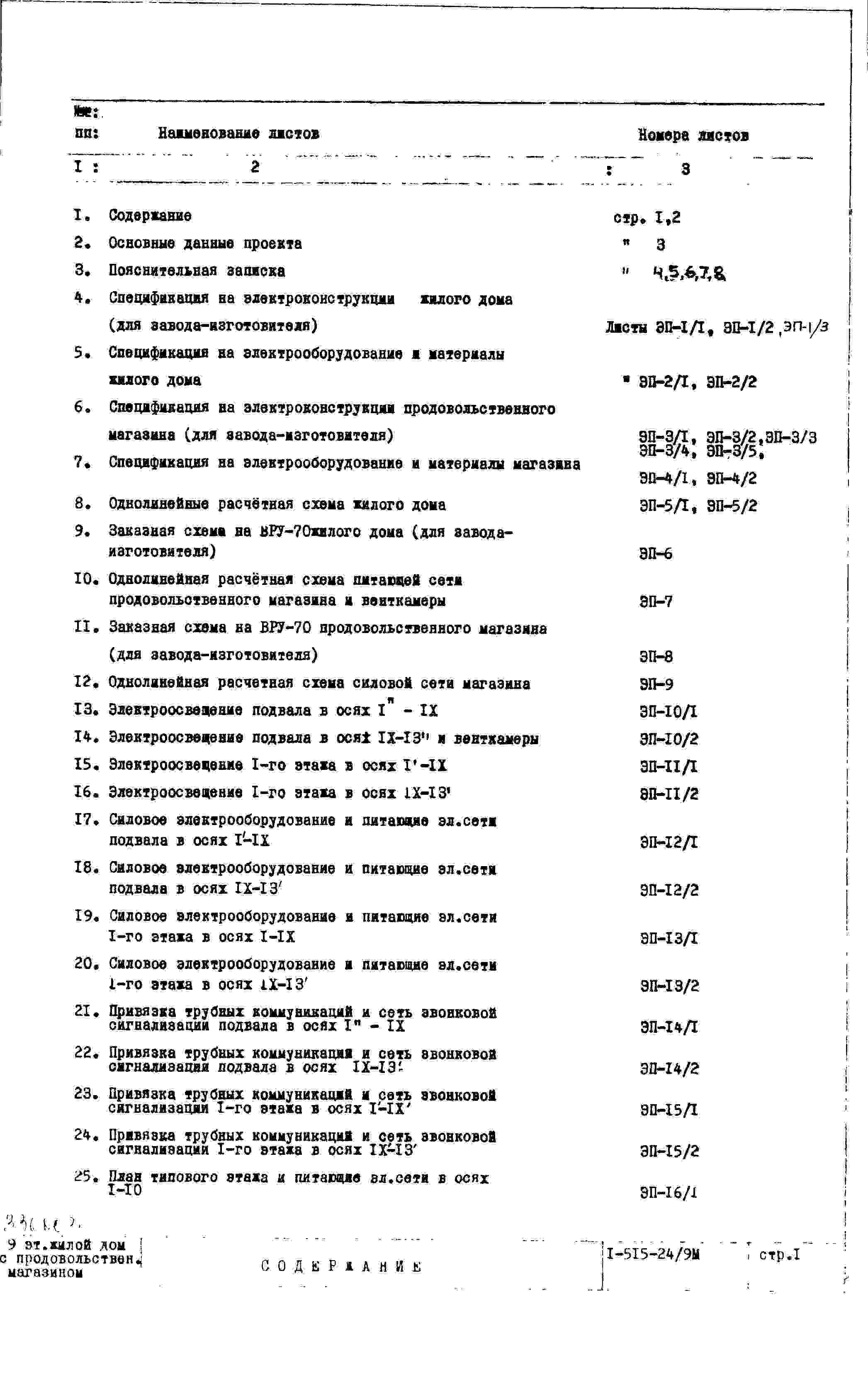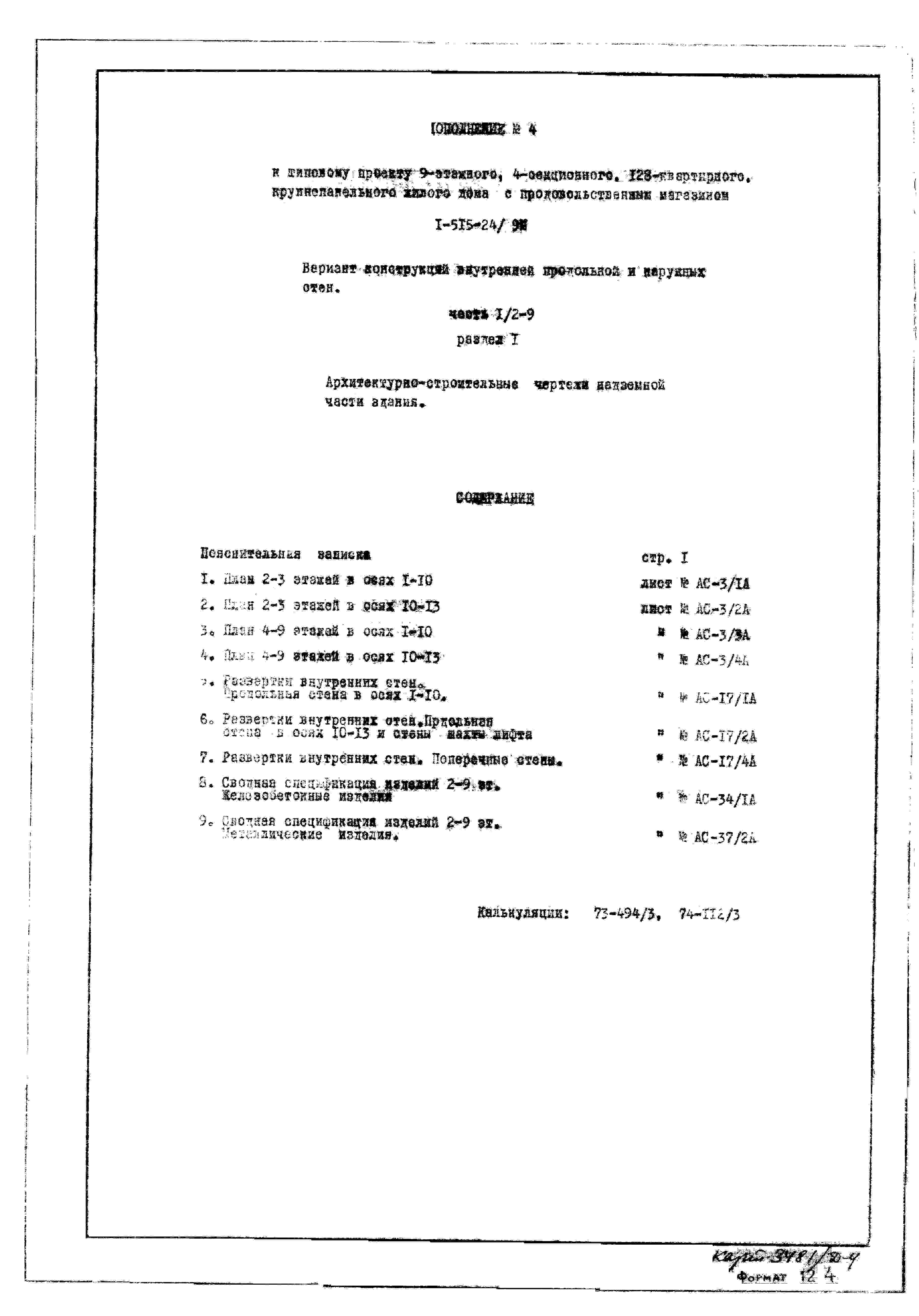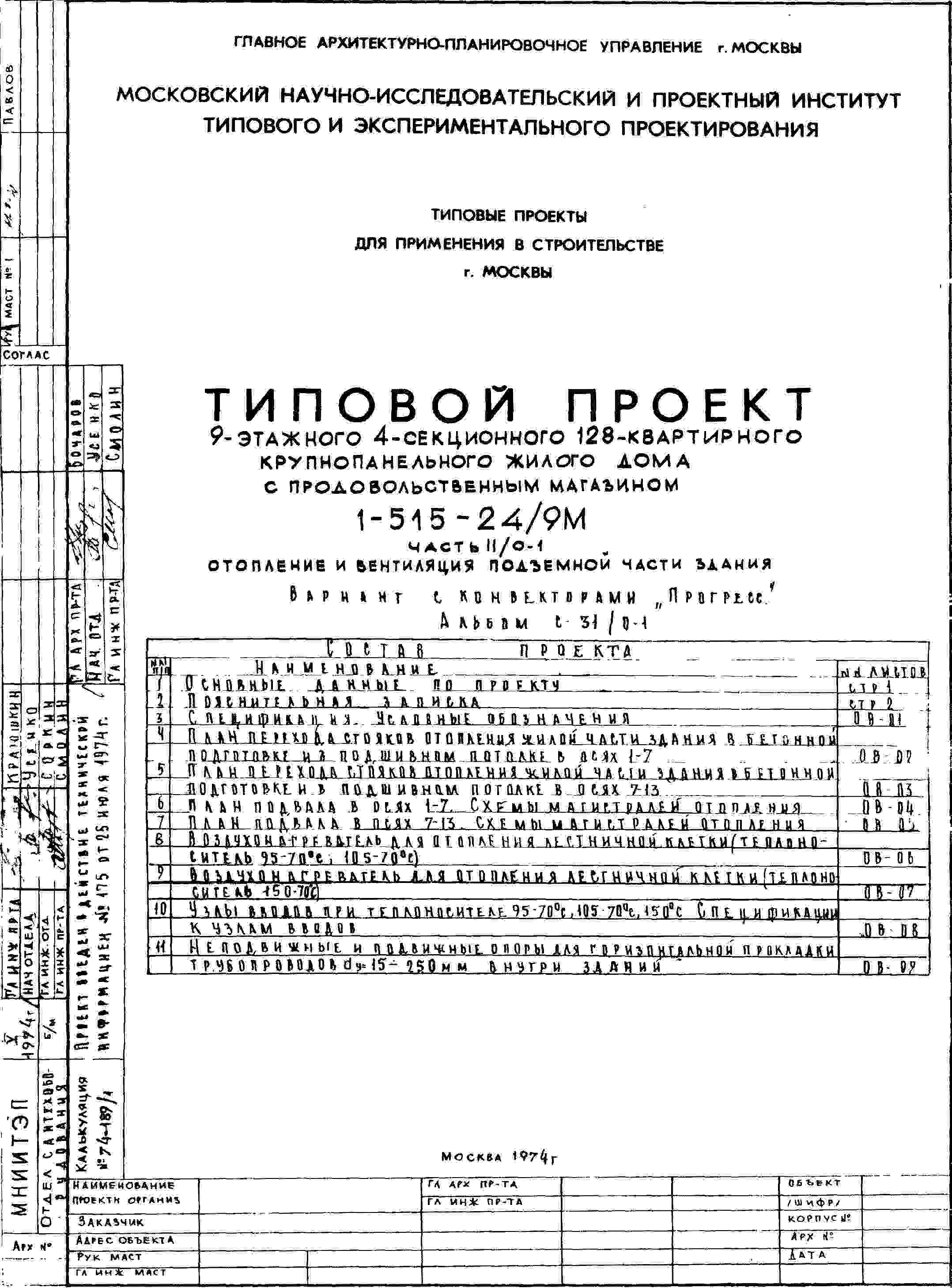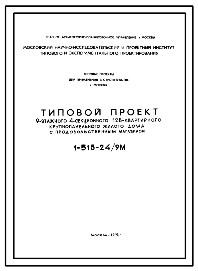 Типовой проект 1-515-24/9М Девятиэтажный крупнопанельный жилой дом на 128 квартир с продовольственным магазином