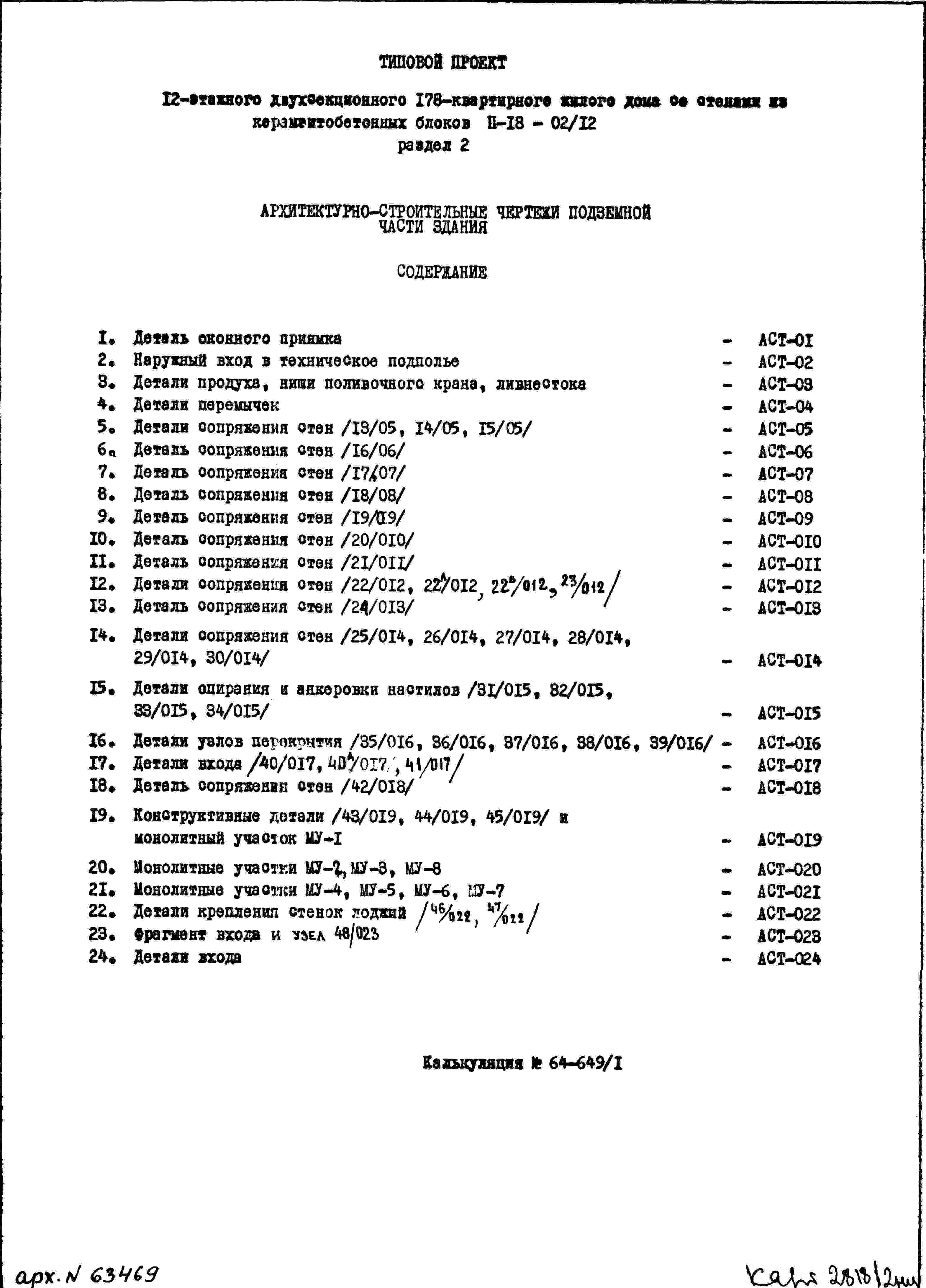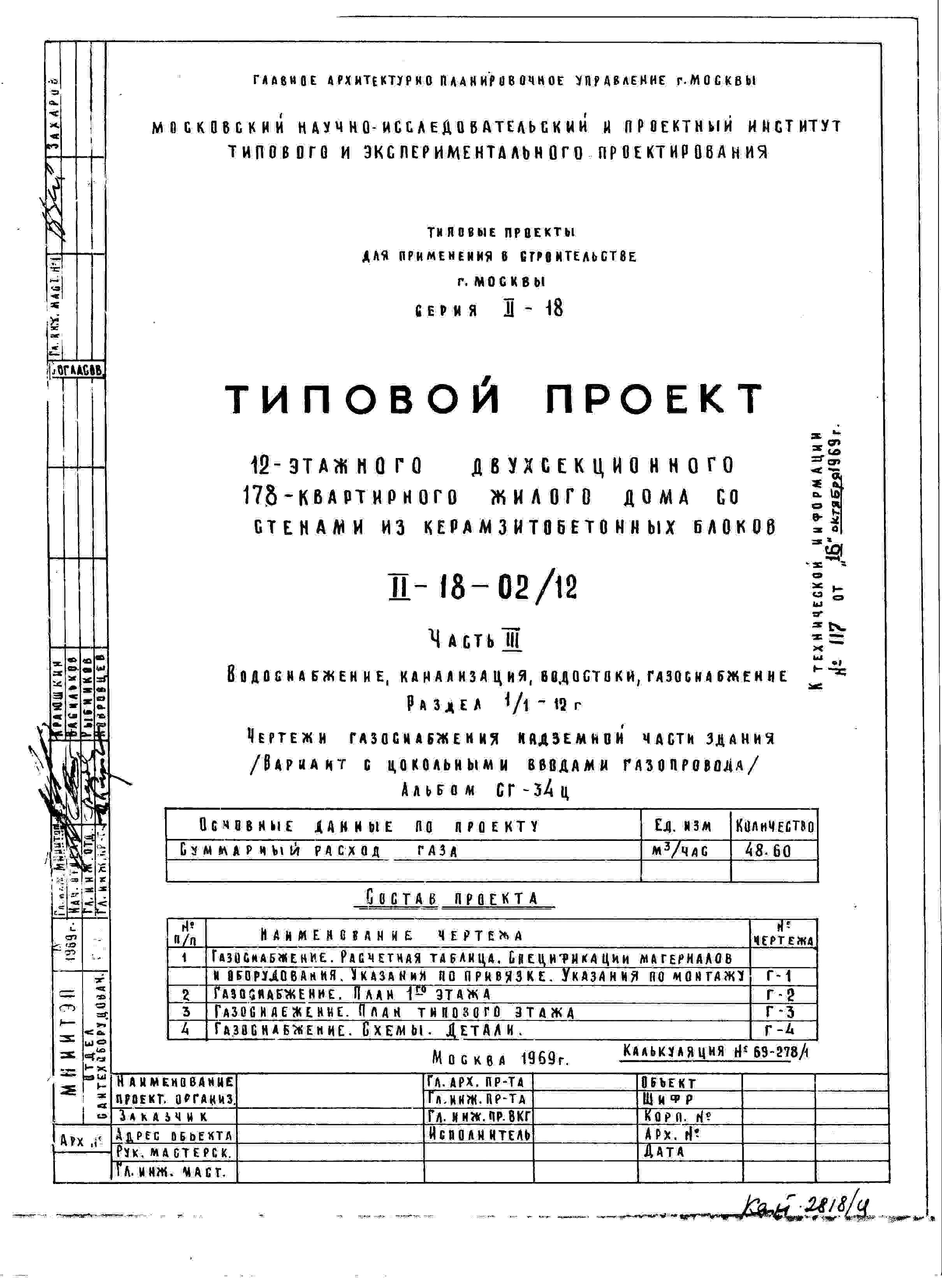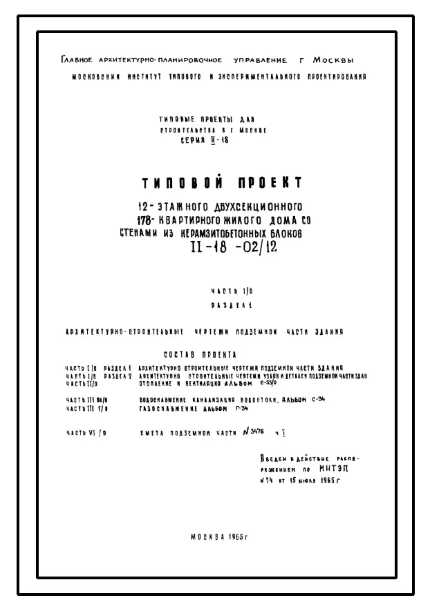 Типовой проект II-18-02/12 12-этажный двухсекционный 178-квартирный жилой дом со стенами из керамзитобетонных блоков (вариант с унифицированными изделиями лоджий) с несимметричными створками окон