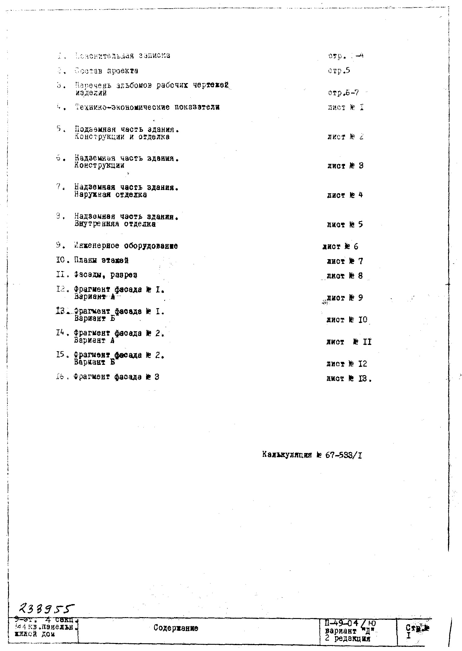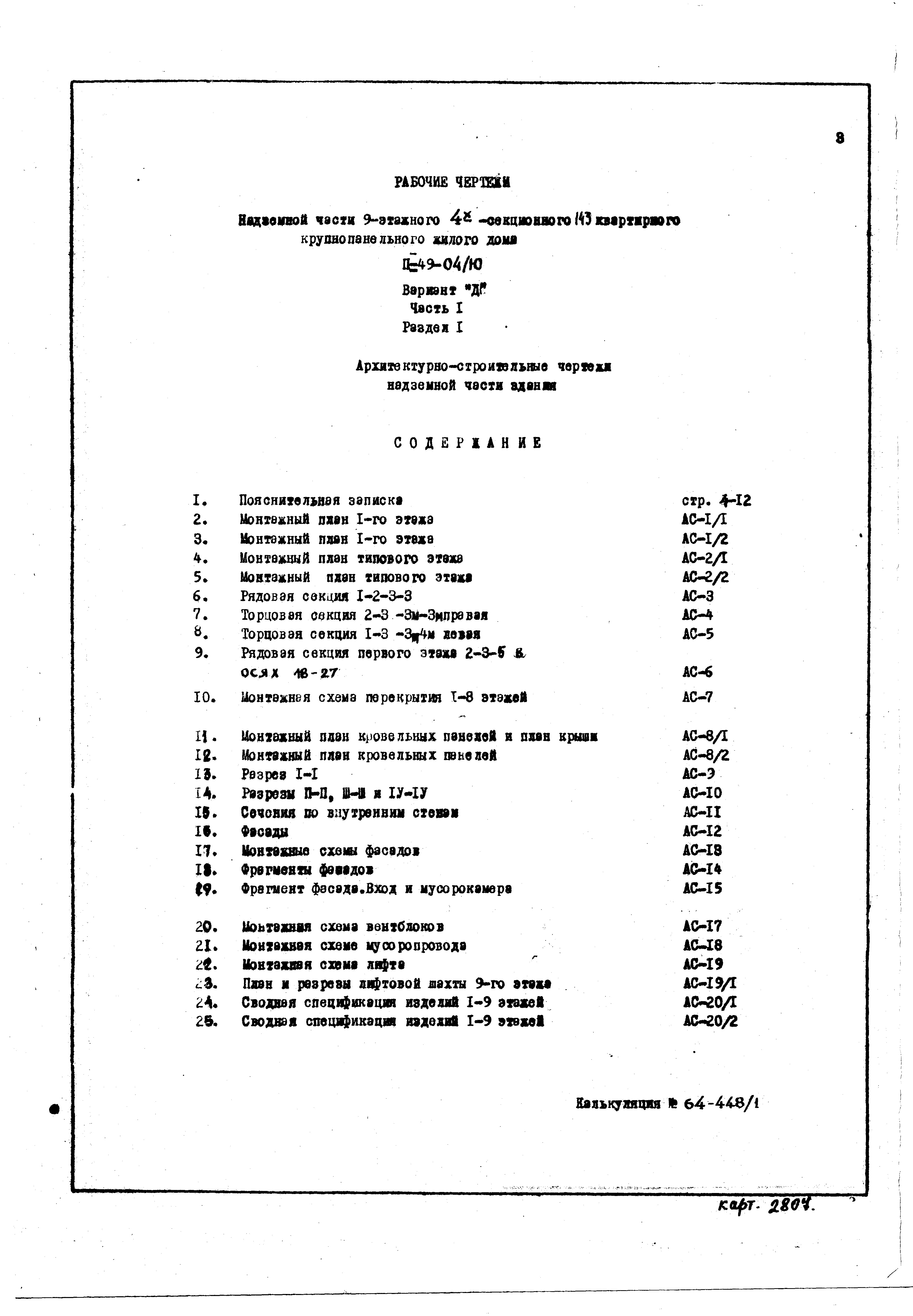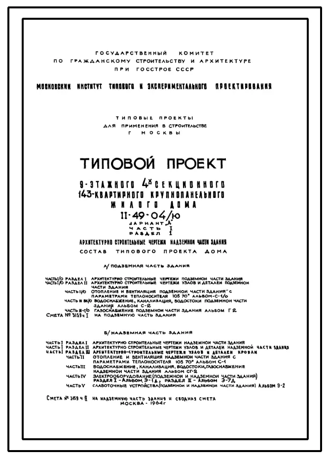 Типовой проект II-49-04/Ю 9-этажный панельный 4-секционный 143(144)-квартирный жилой дом. Вариант Д