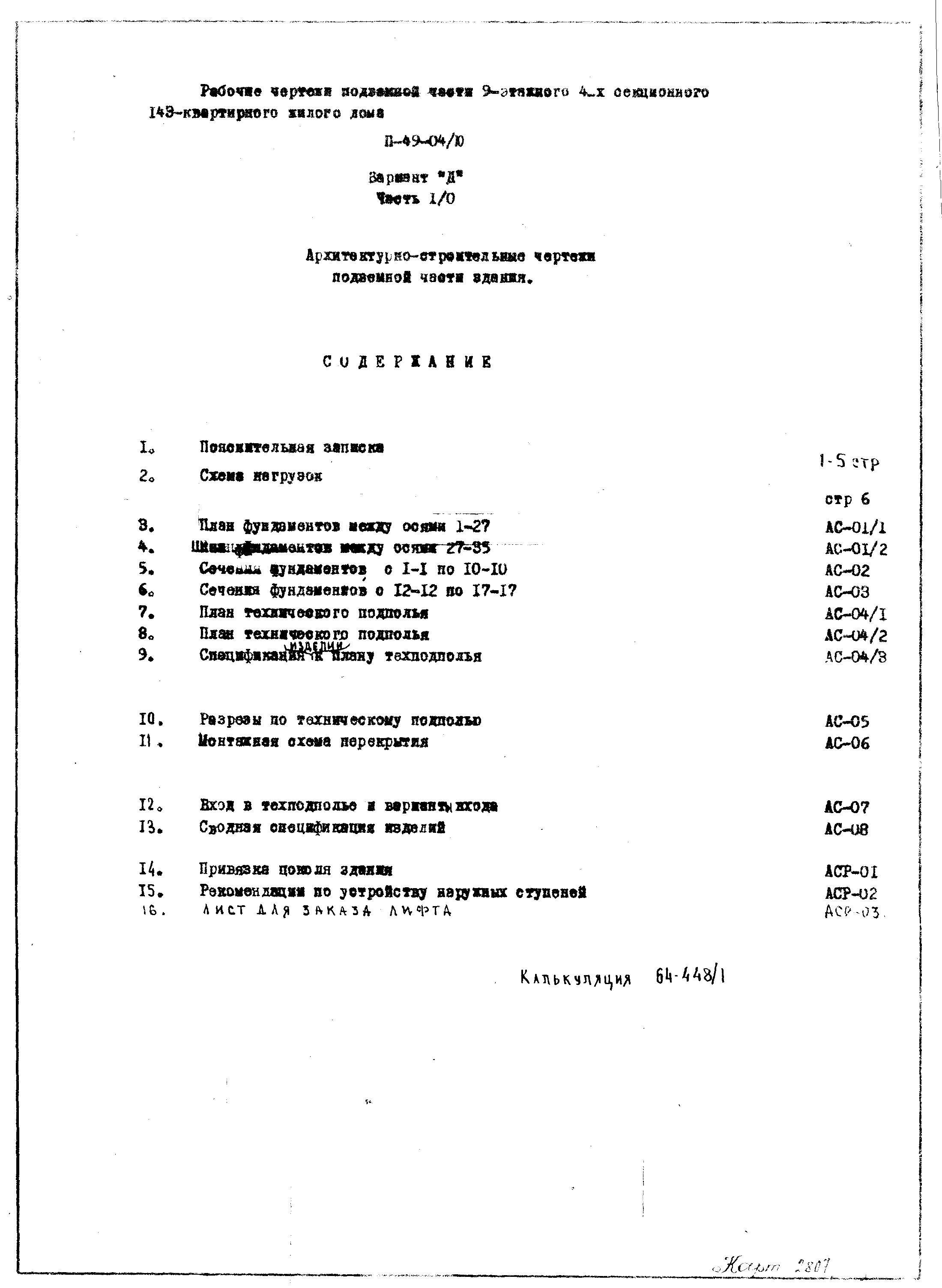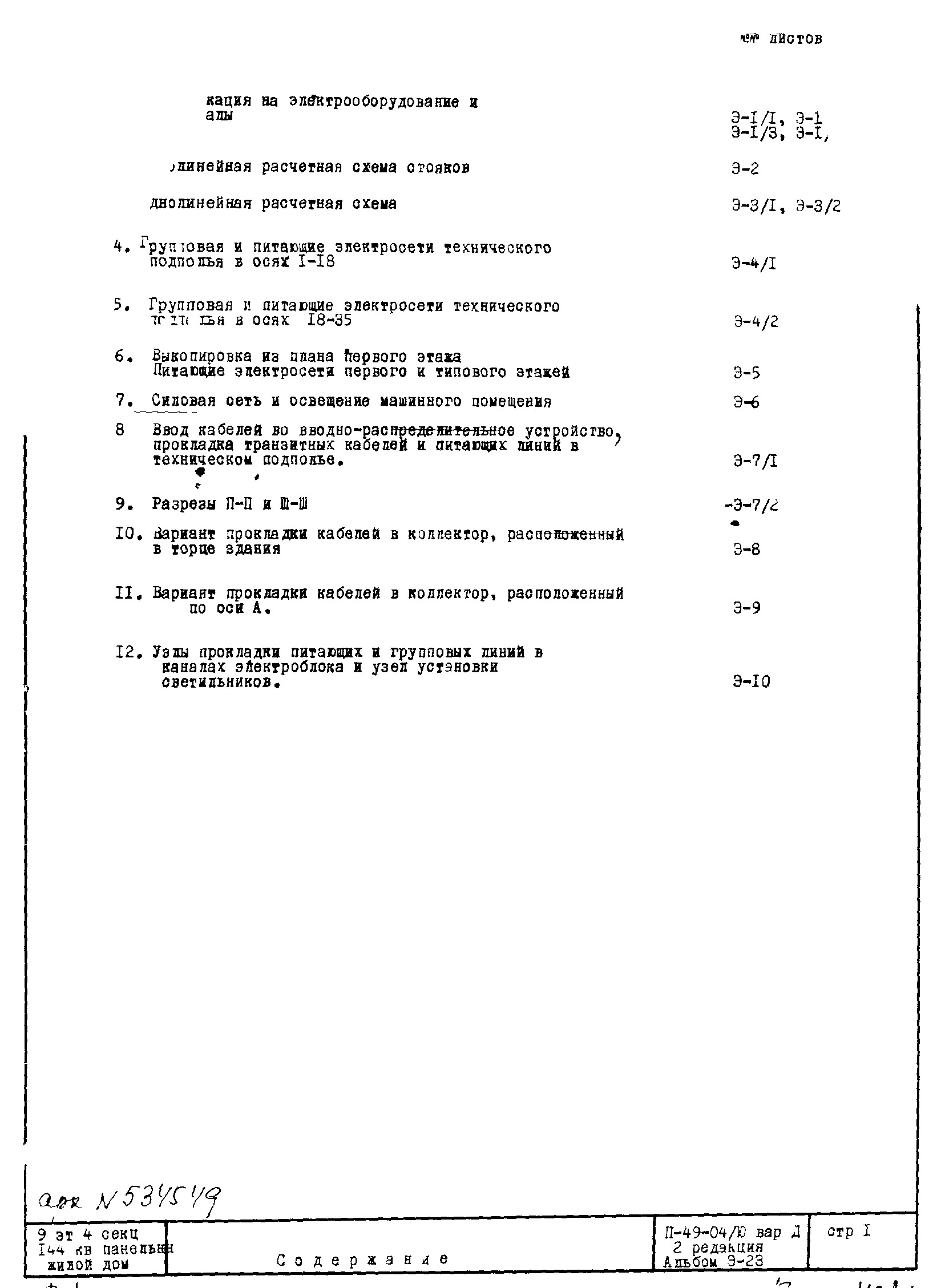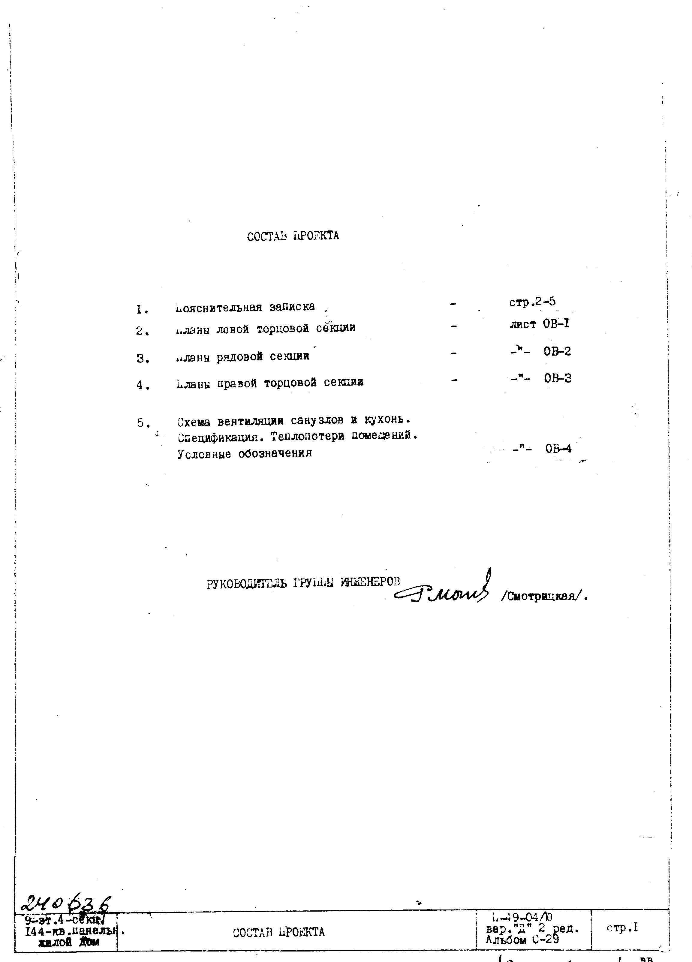 Типовой проект II-49-04/Ю 9-этажный панельный 4-секционный 143(144)-квартирный жилой дом. Вариант Д