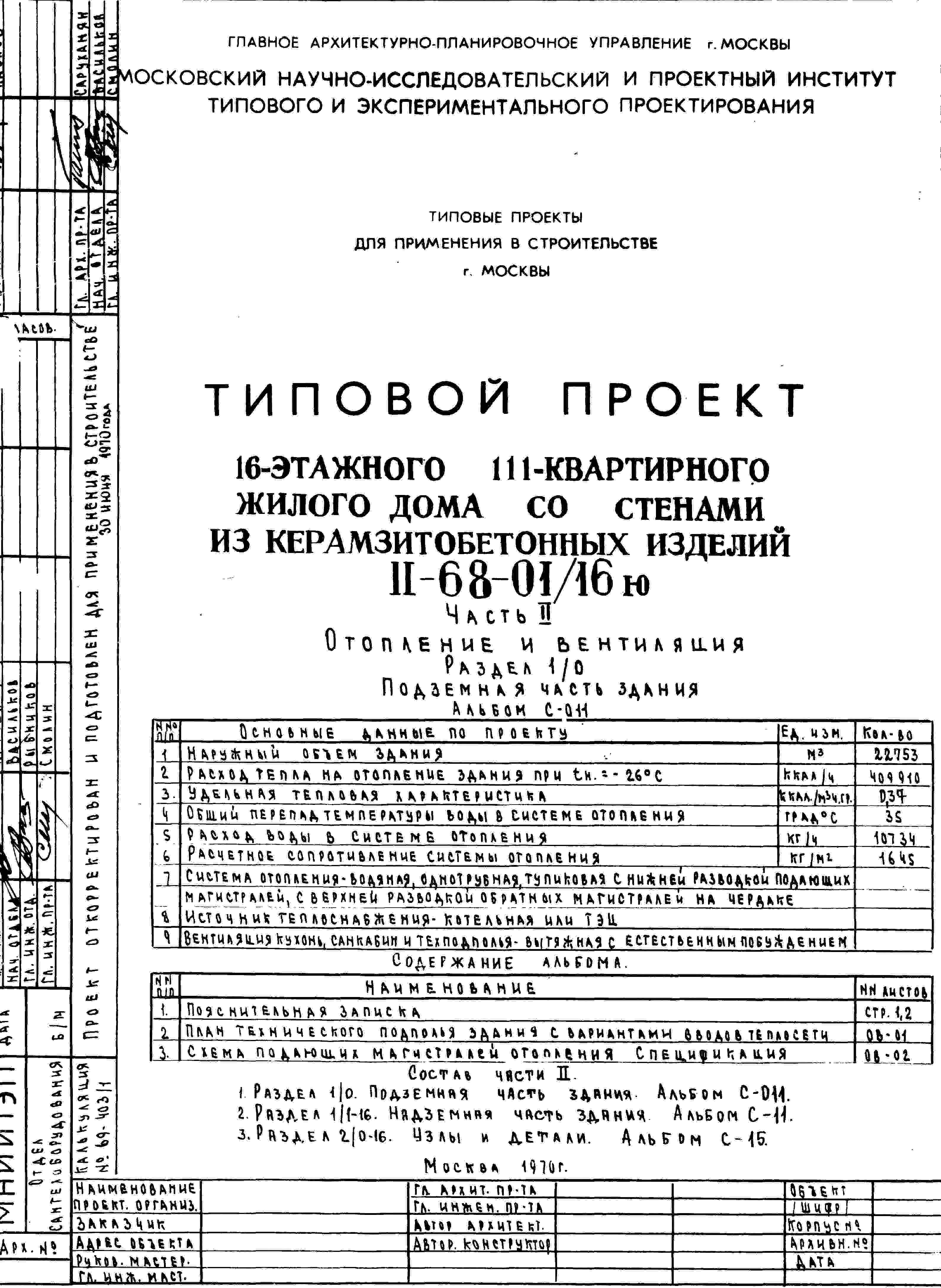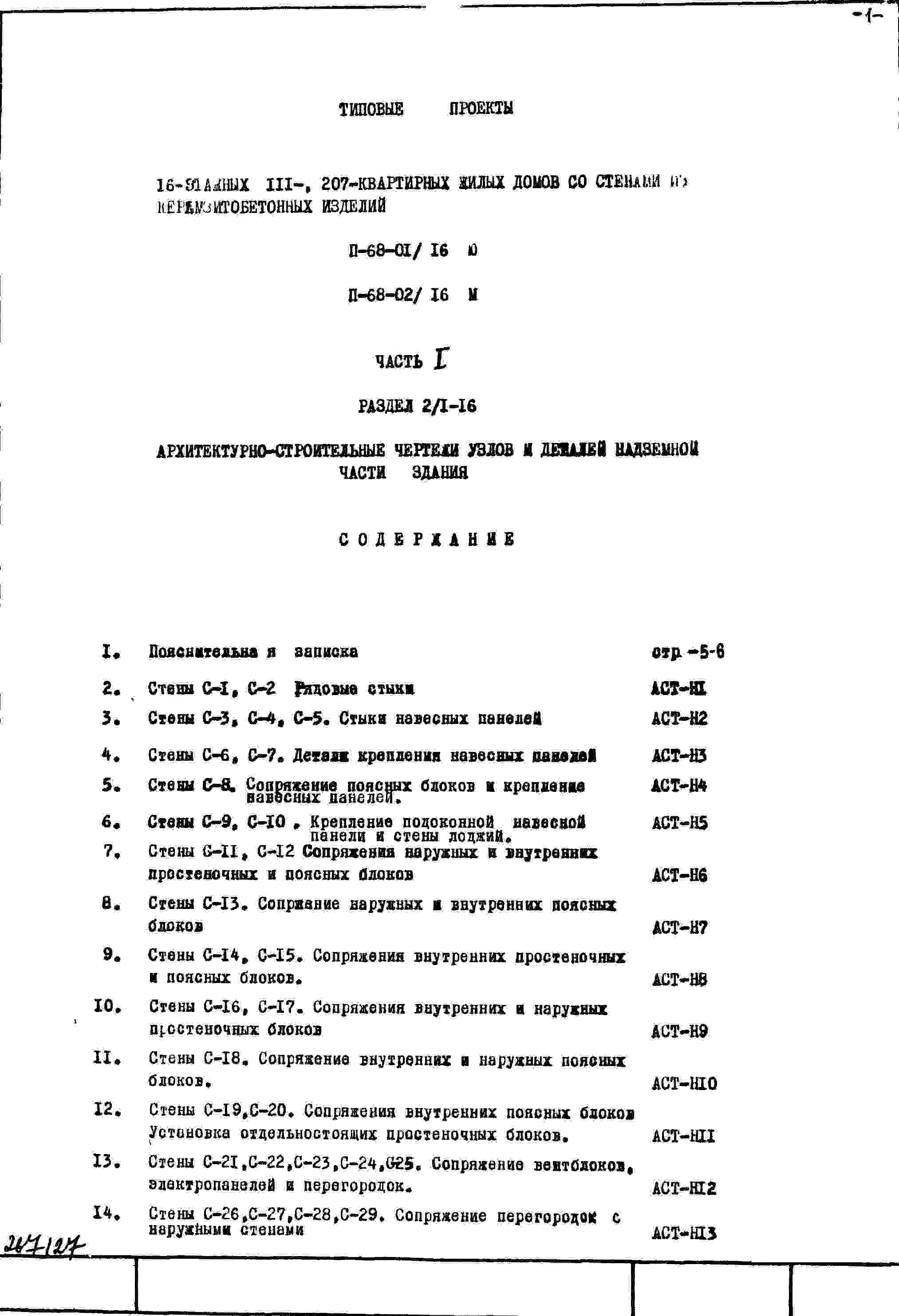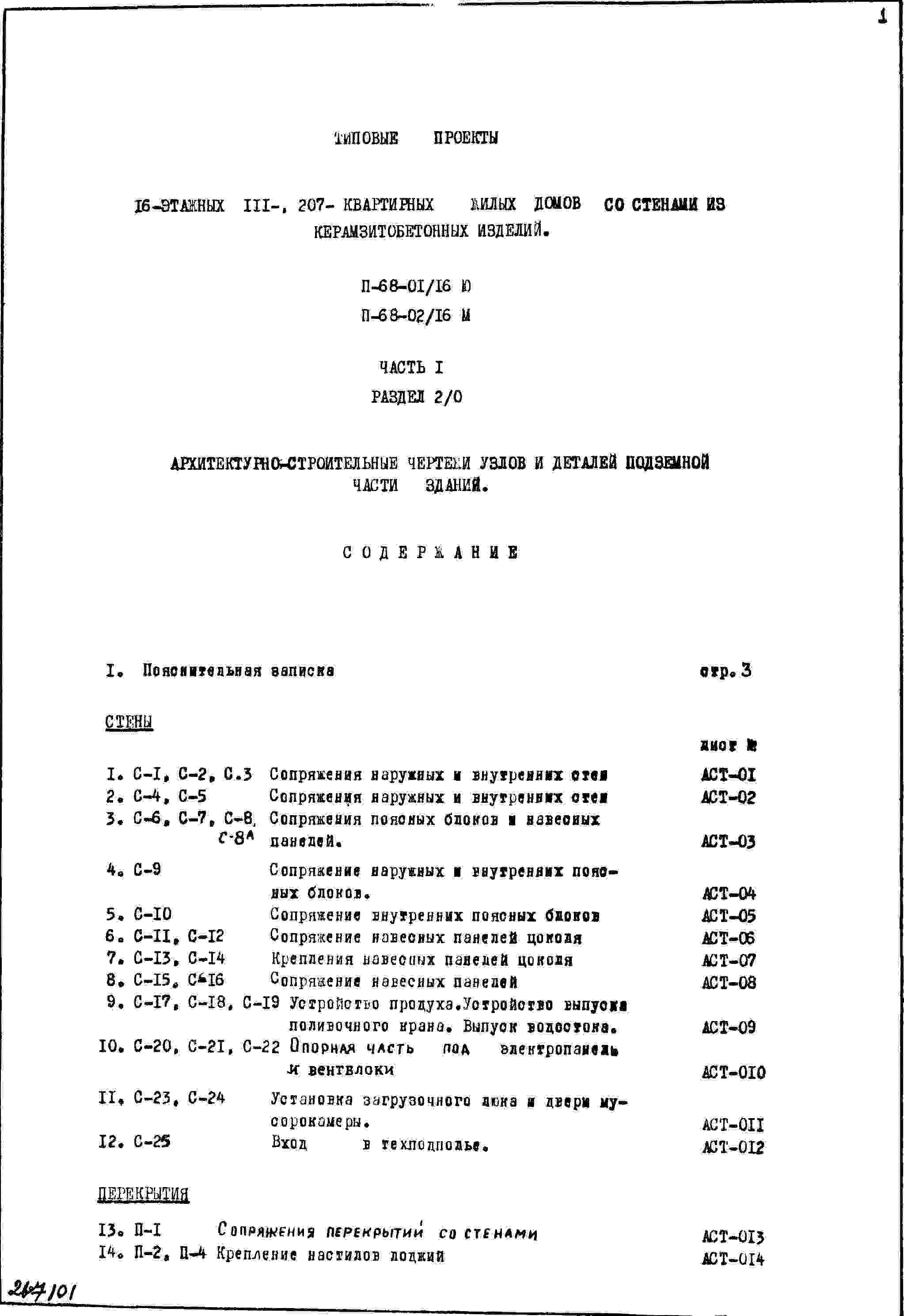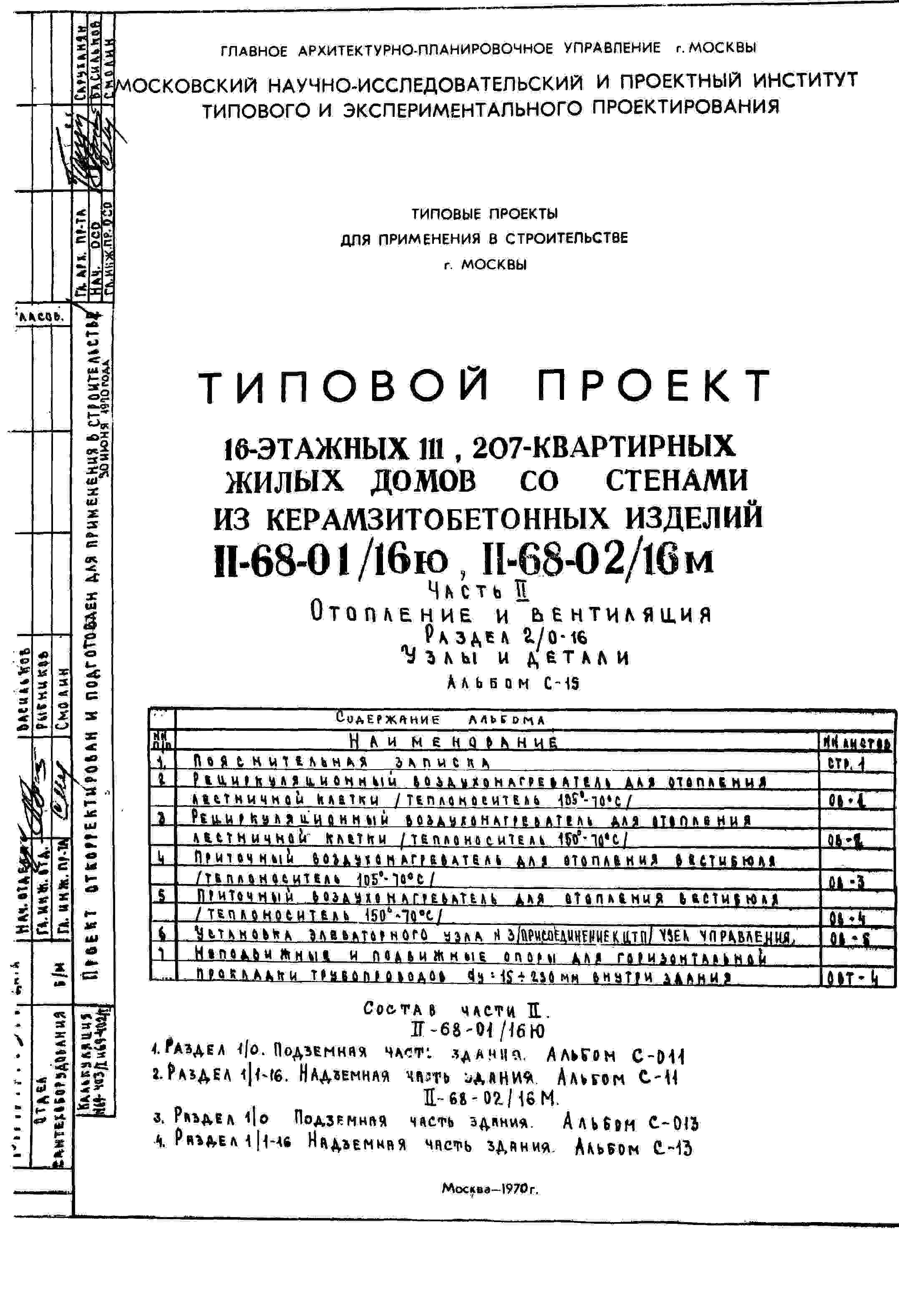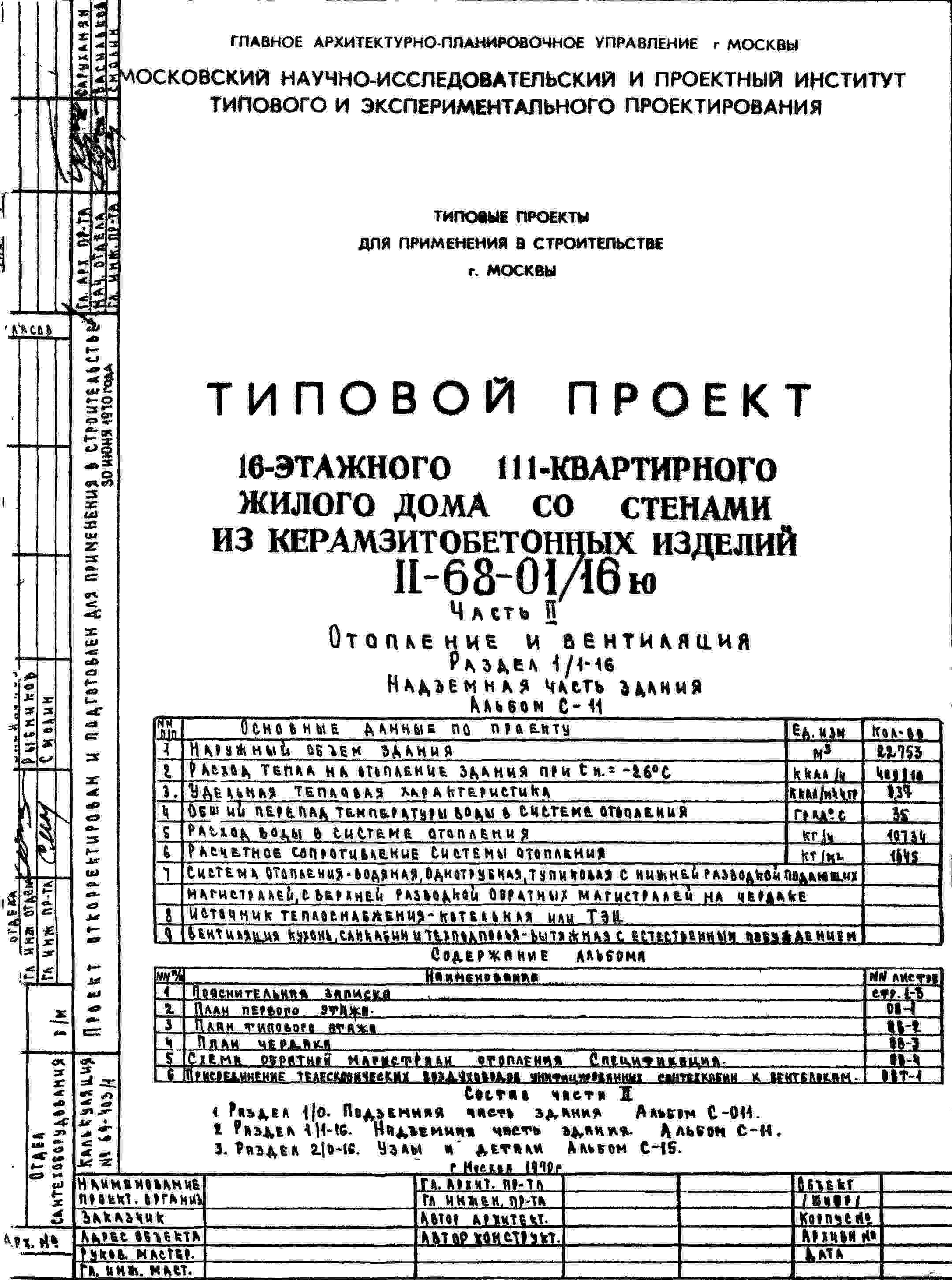 Типовой проект II-68-01/16ю 16-этажный 111-квартирный жилой дом со стенами из керамзитобетонных изделий