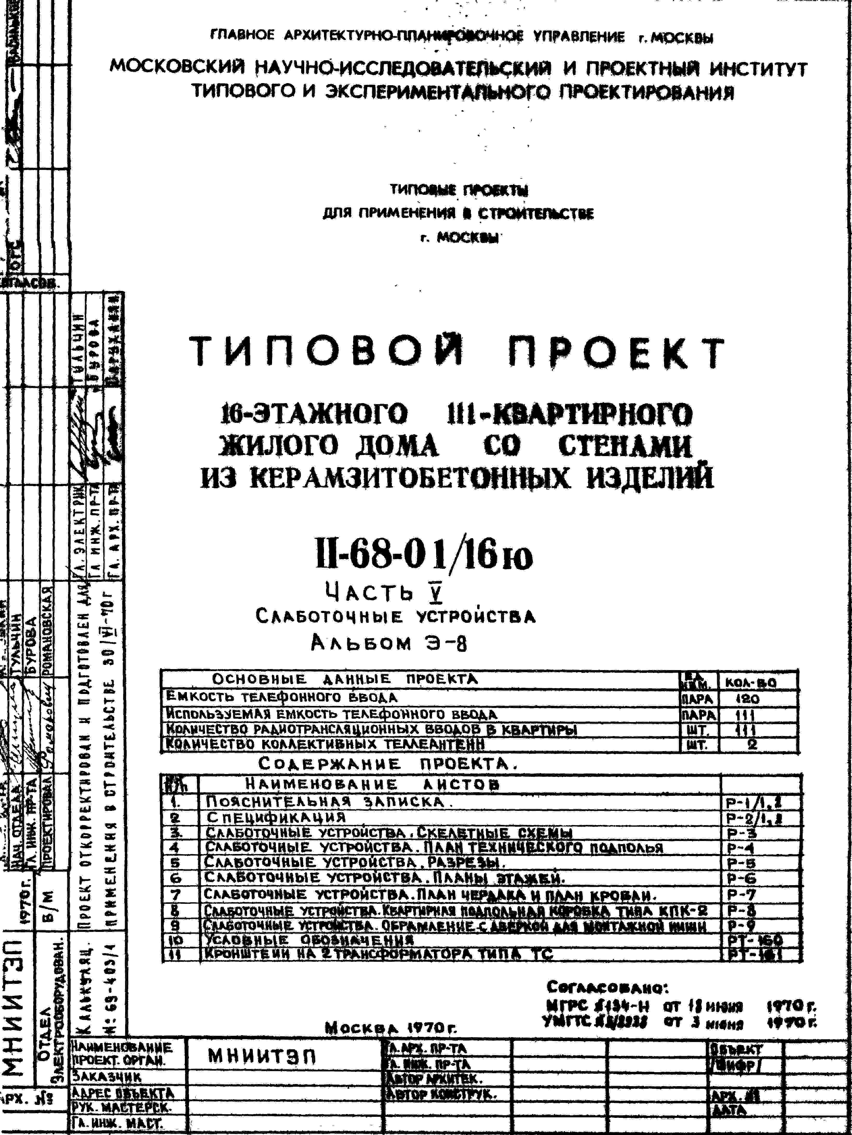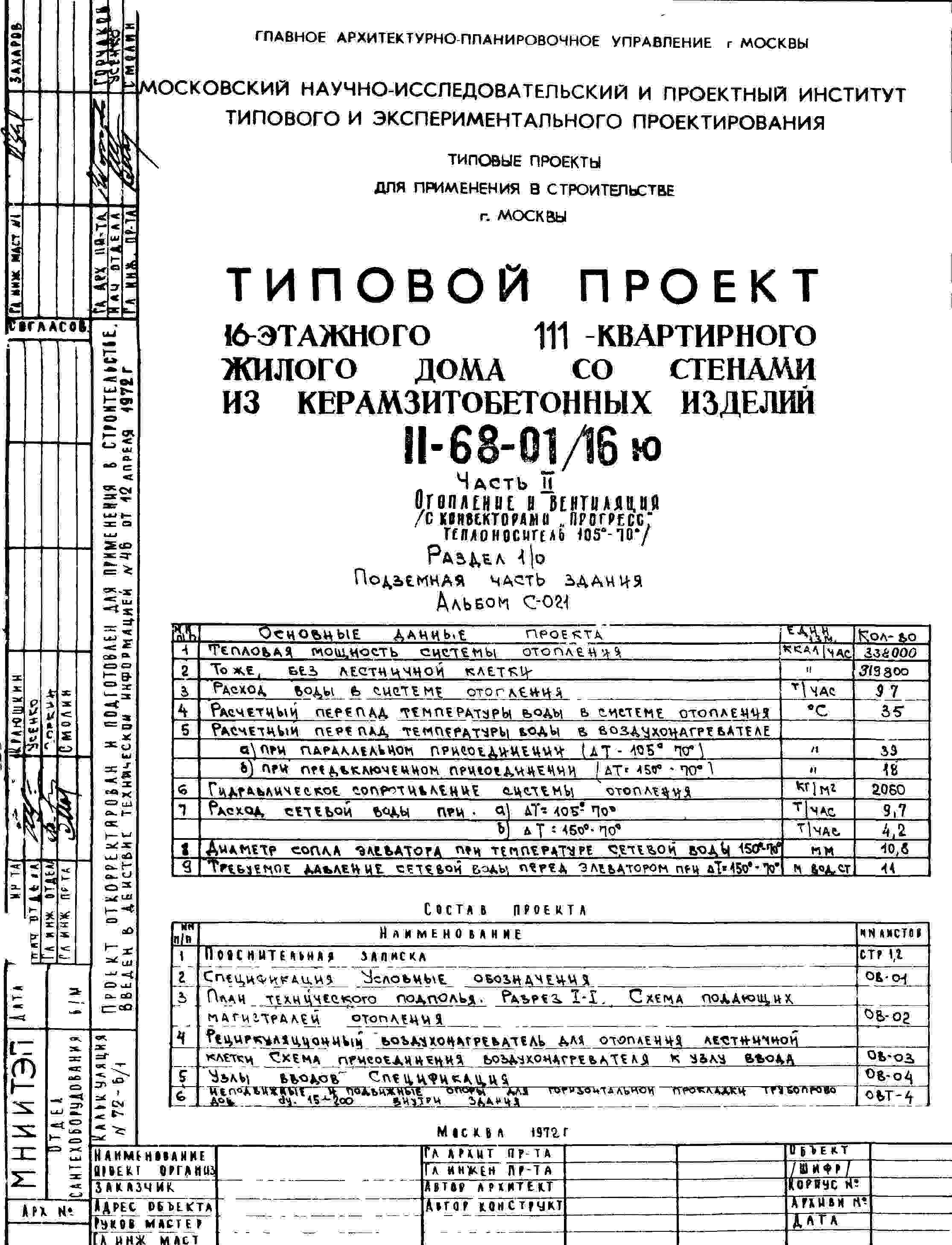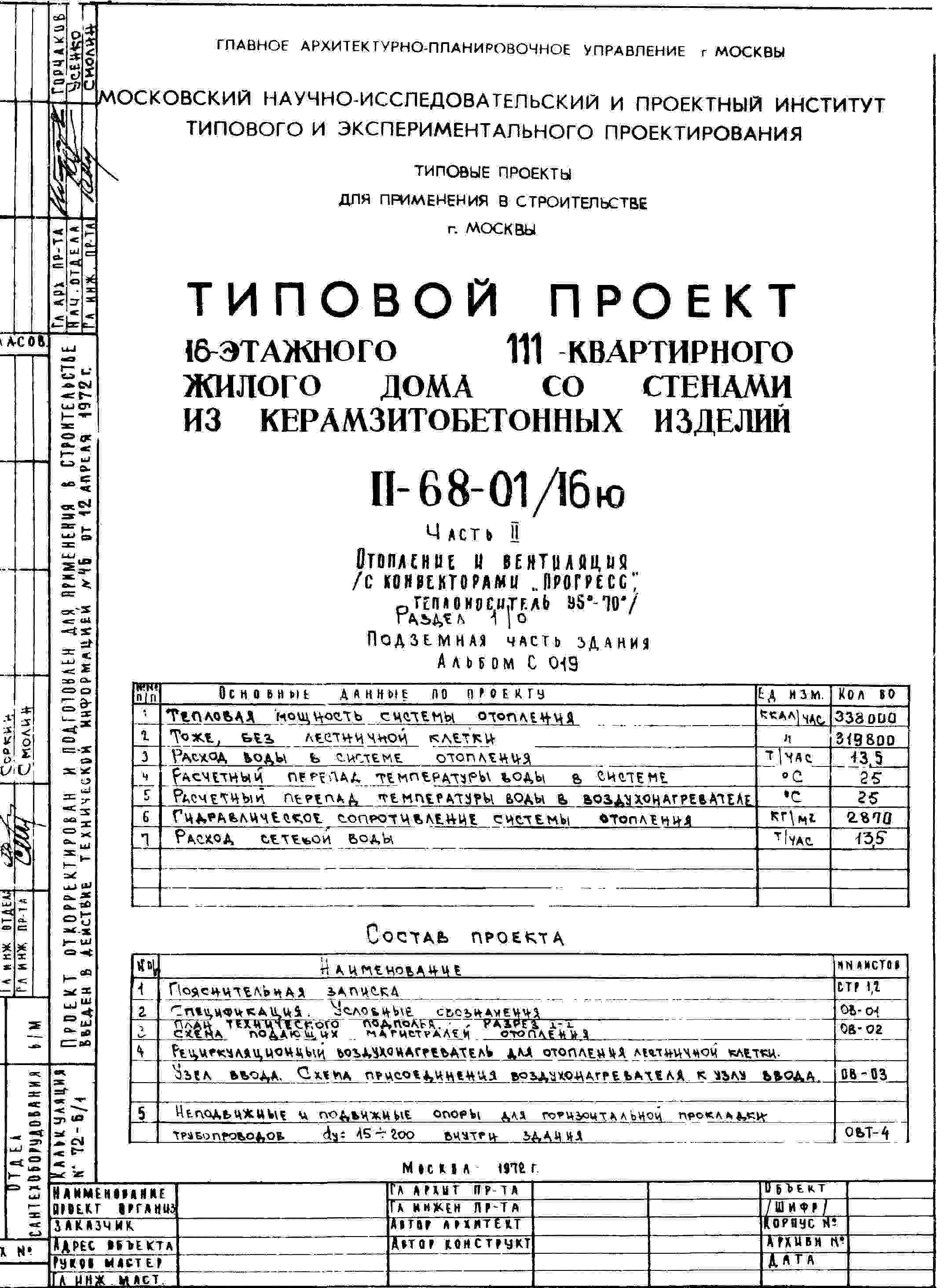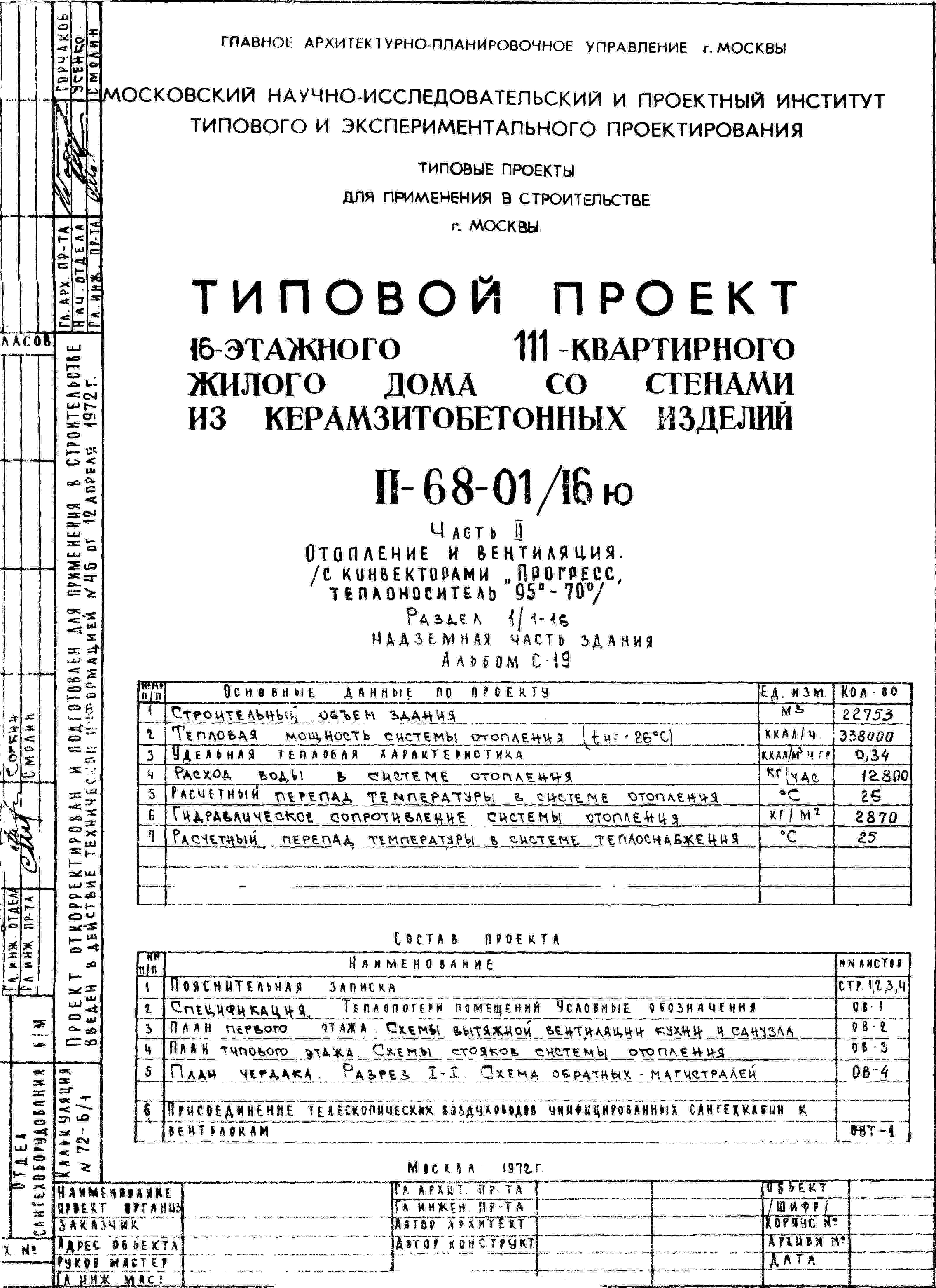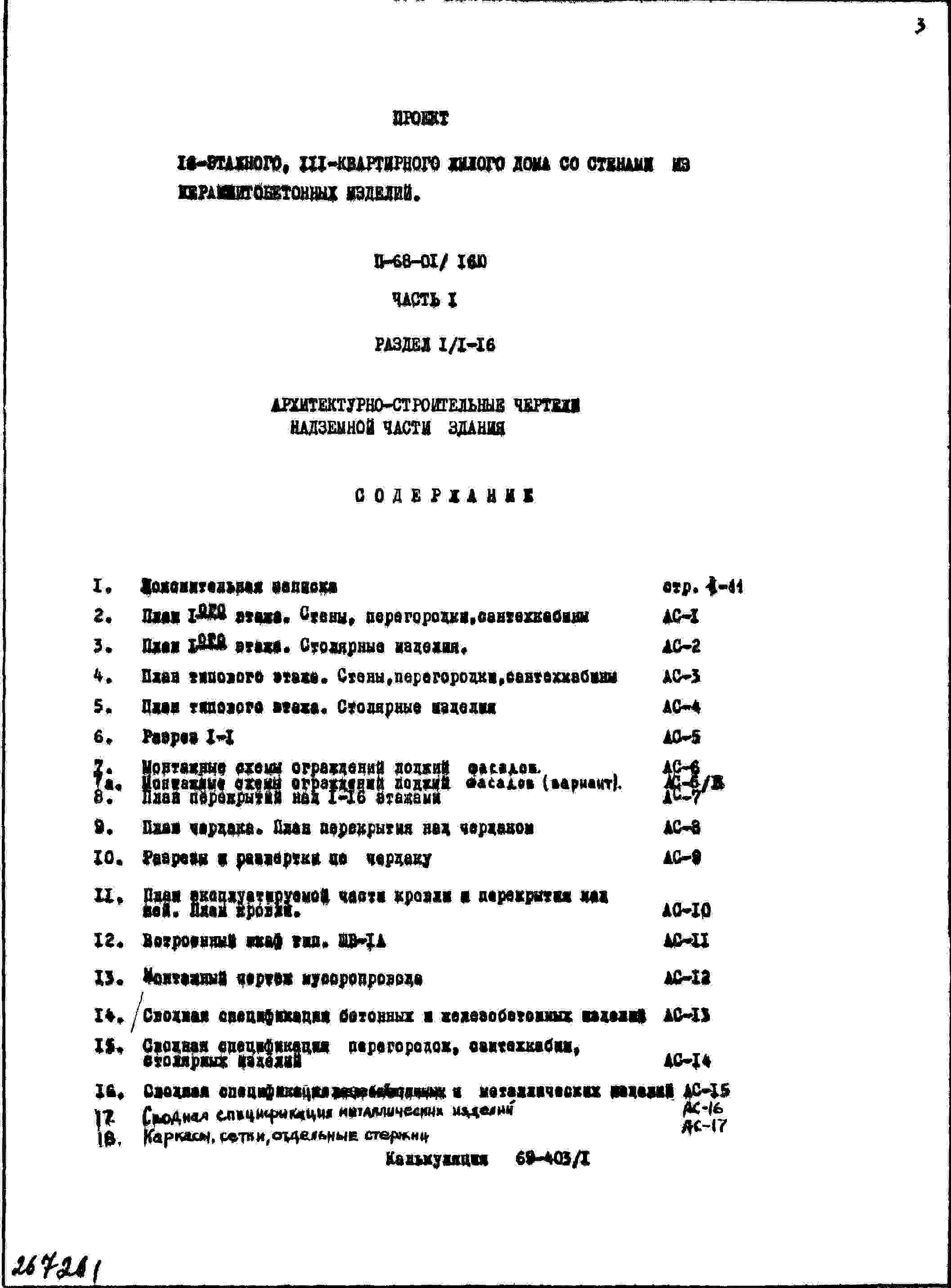 Типовой проект II-68-01/16ю 16-этажный 111-квартирный жилой дом со стенами из керамзитобетонных изделий