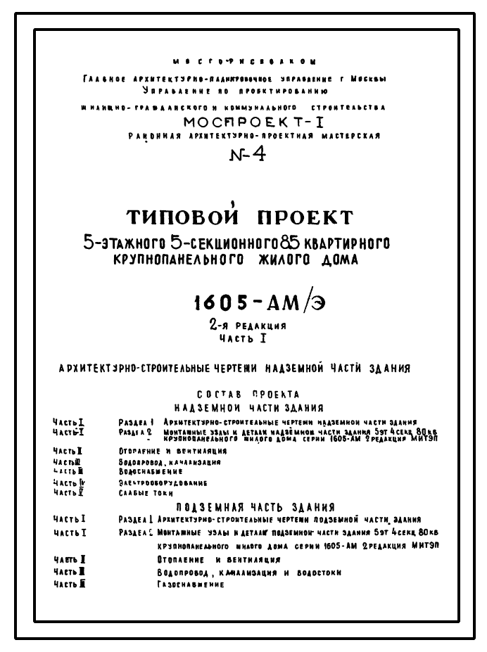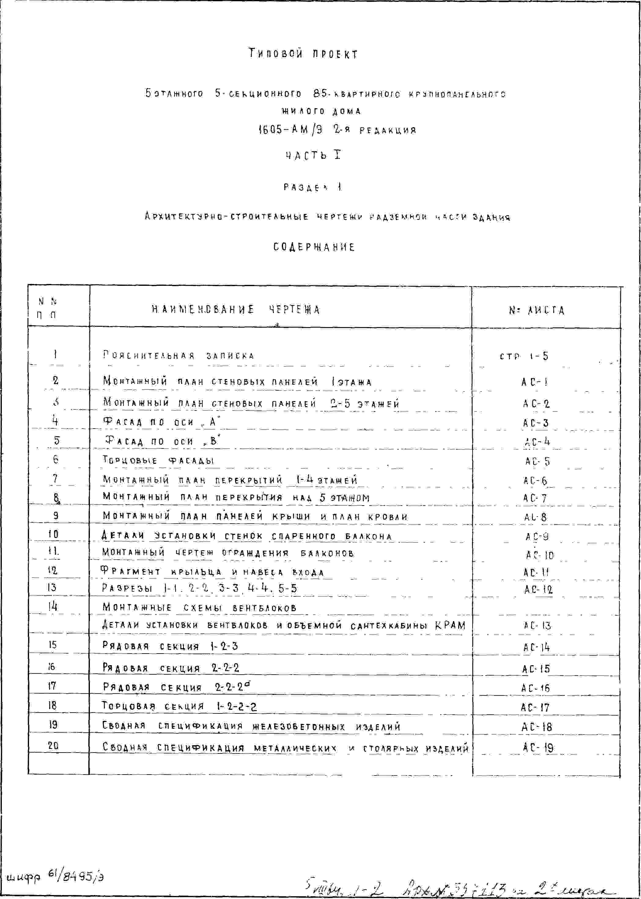 Типовой проект 1605-АМ/Э 5-этажный 5-секционный 85 квартирный крупнопанельный жилой дом