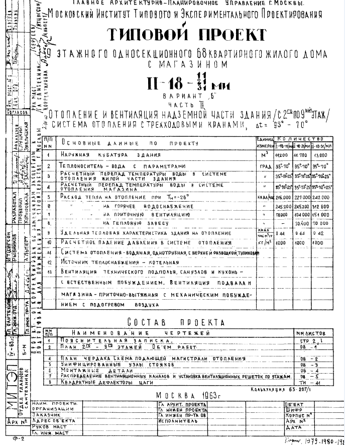 Типовой проект II-18-21/МИ 9-этажный односекционный 68-квартирный жилой дом с магазином