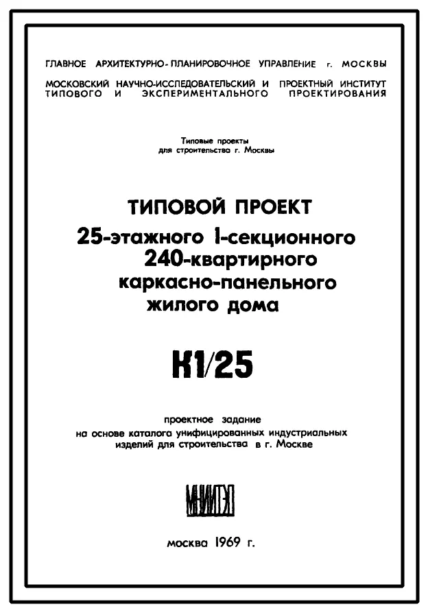 Типовой проект К1/25 25-этажный 1-секционный 240-квартирный каркасно-панельный жилой дом со встроенно-пристроенными торговыми помещениями.