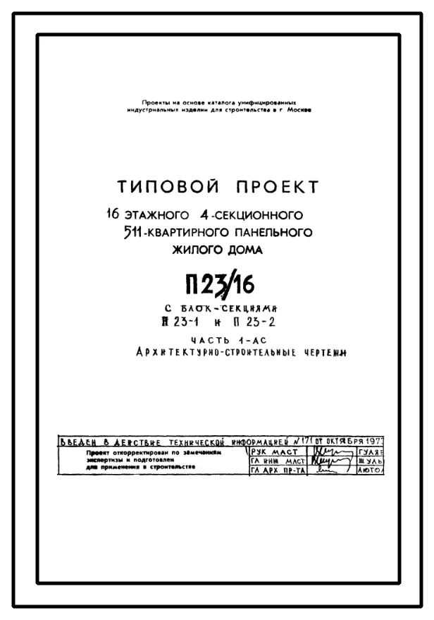 Типовой проект П23/16 16-этажный 4-секционный 511-квартирный панельный жилой дом