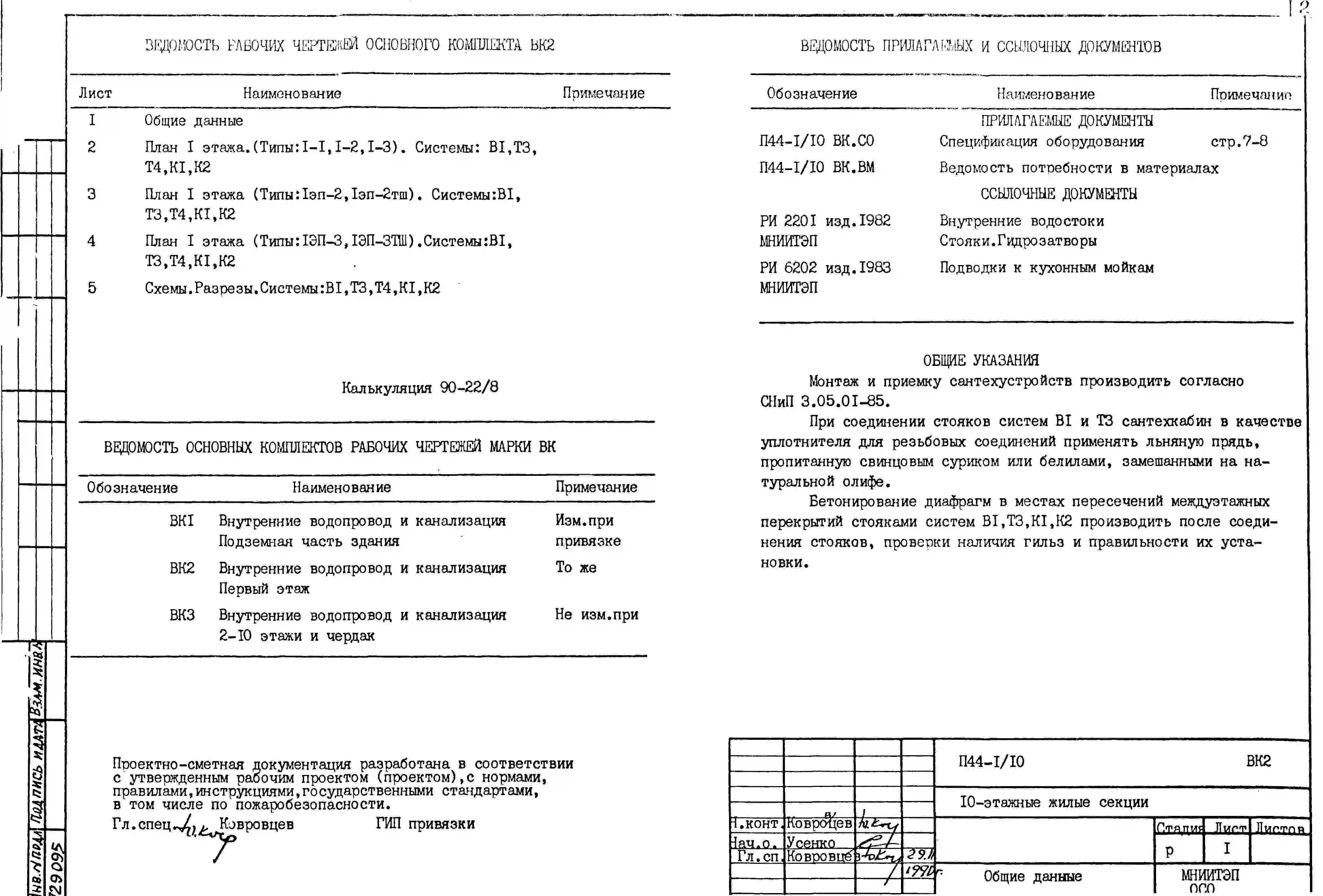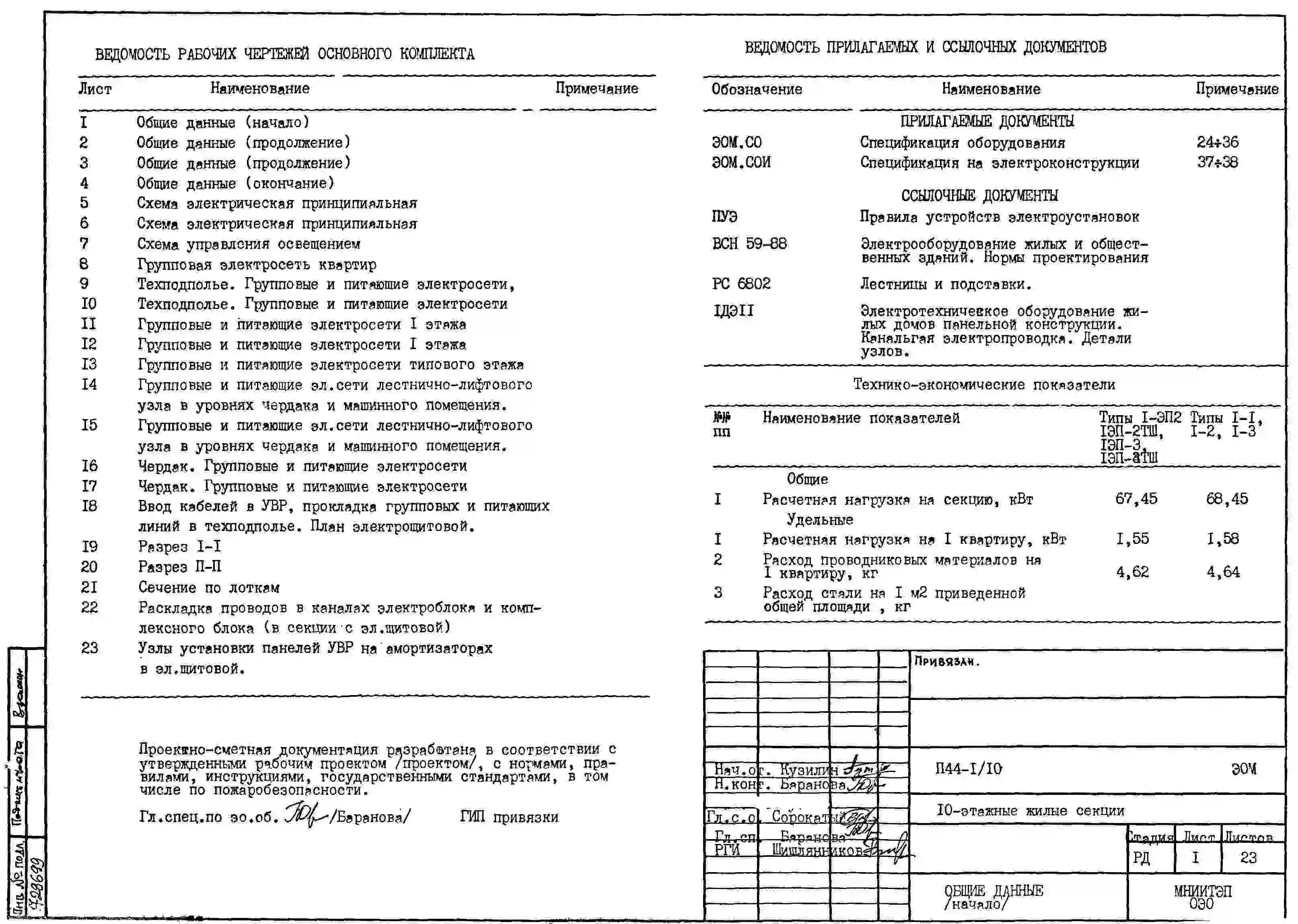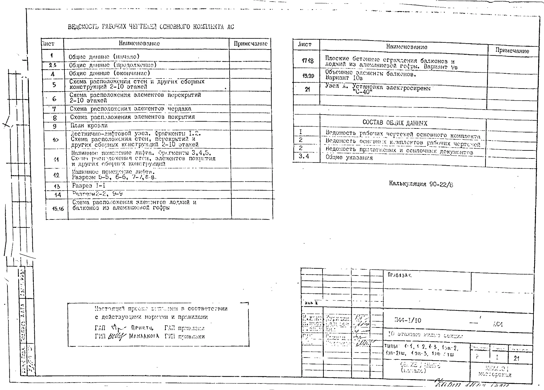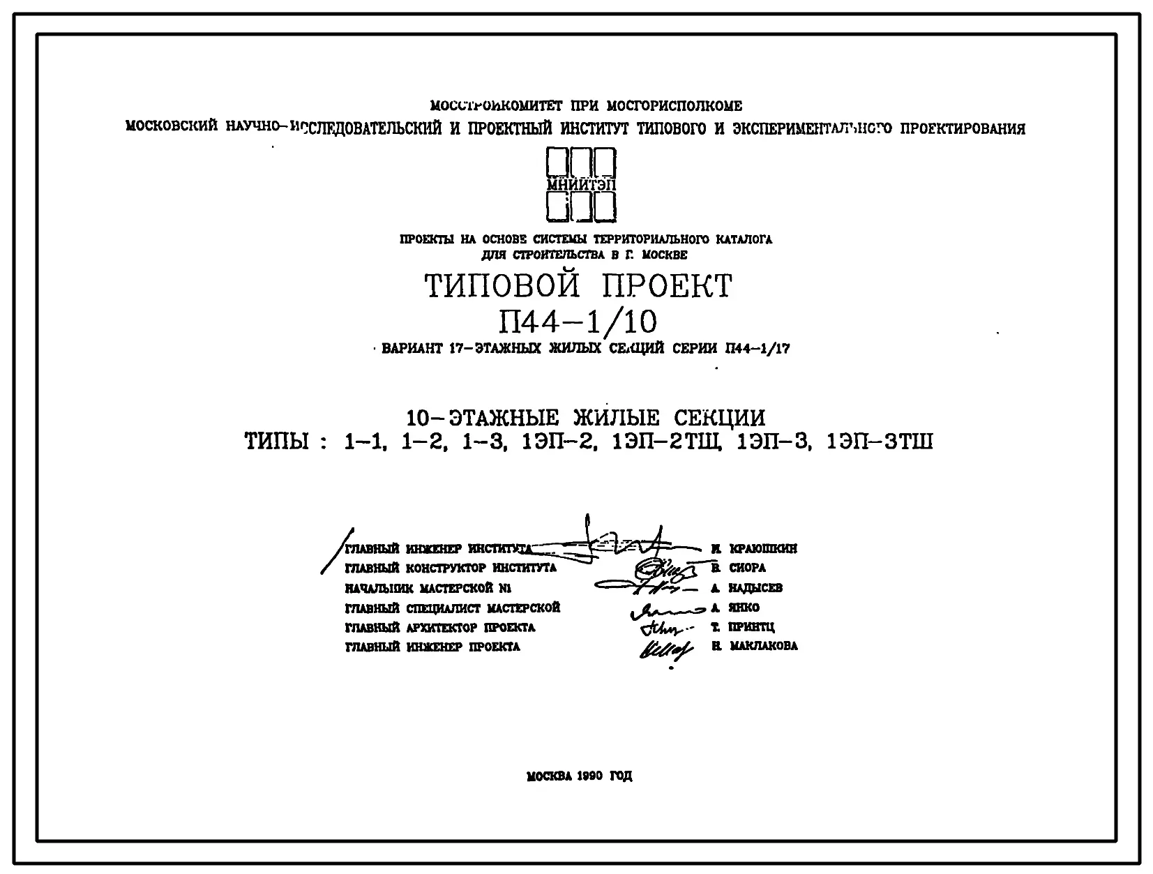 Типовой проект П44-1/10 10-этажные жилые секции (рядовые)