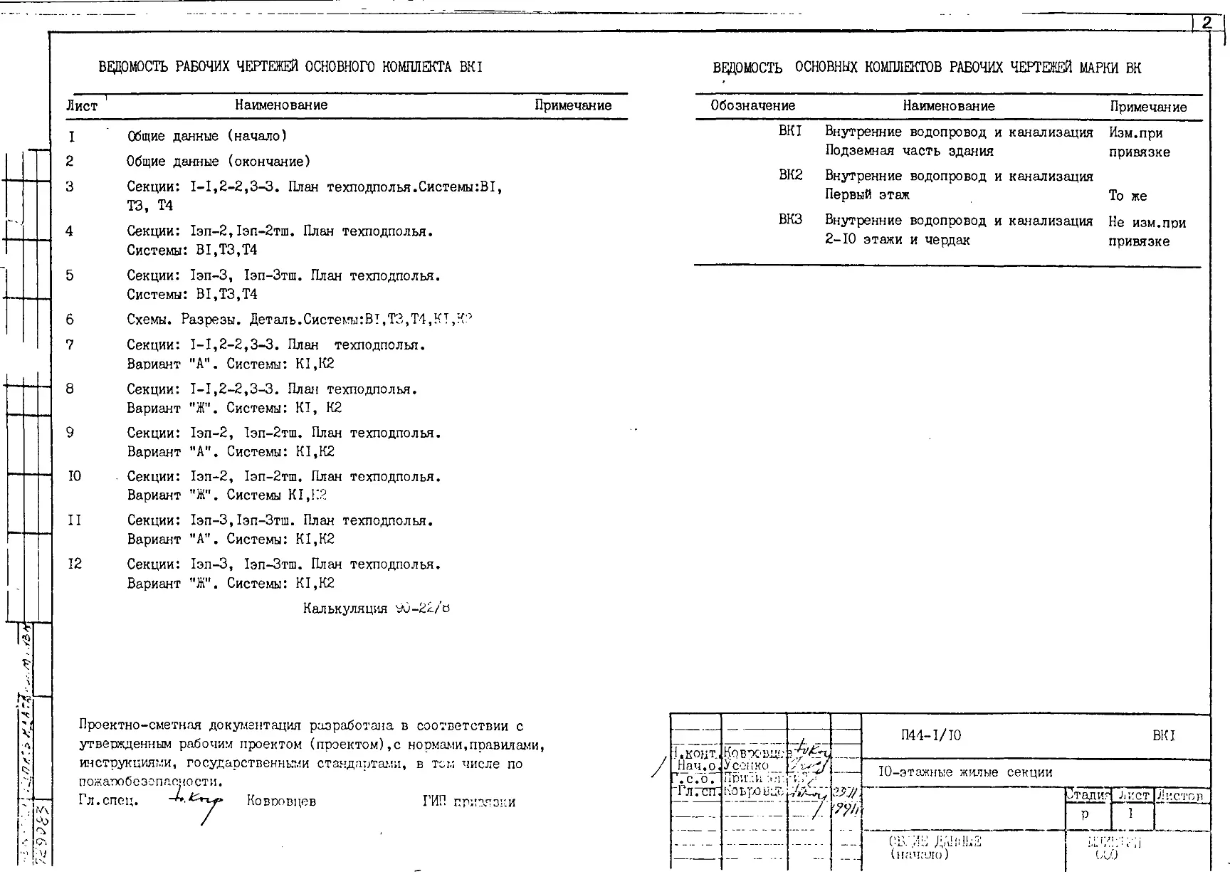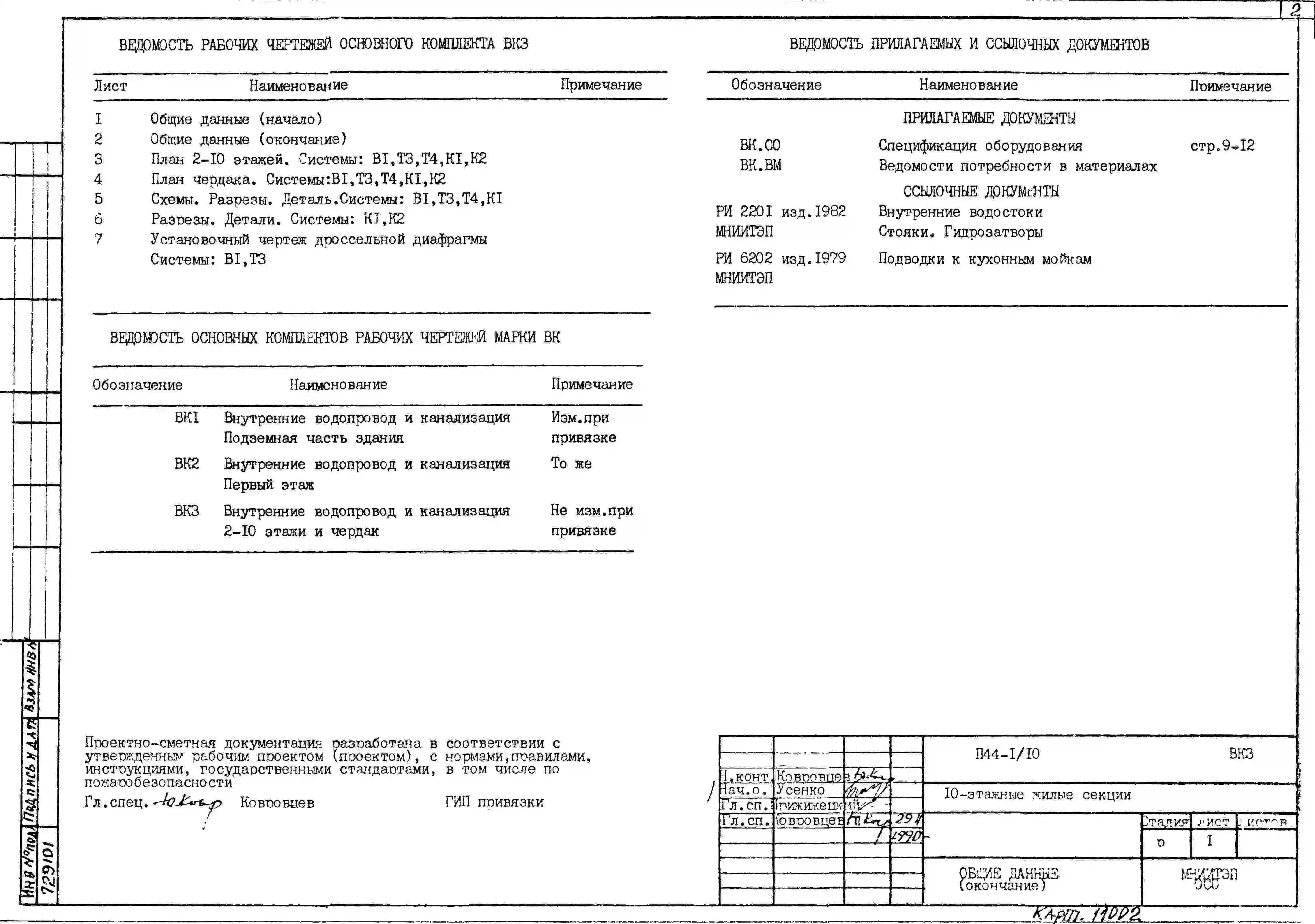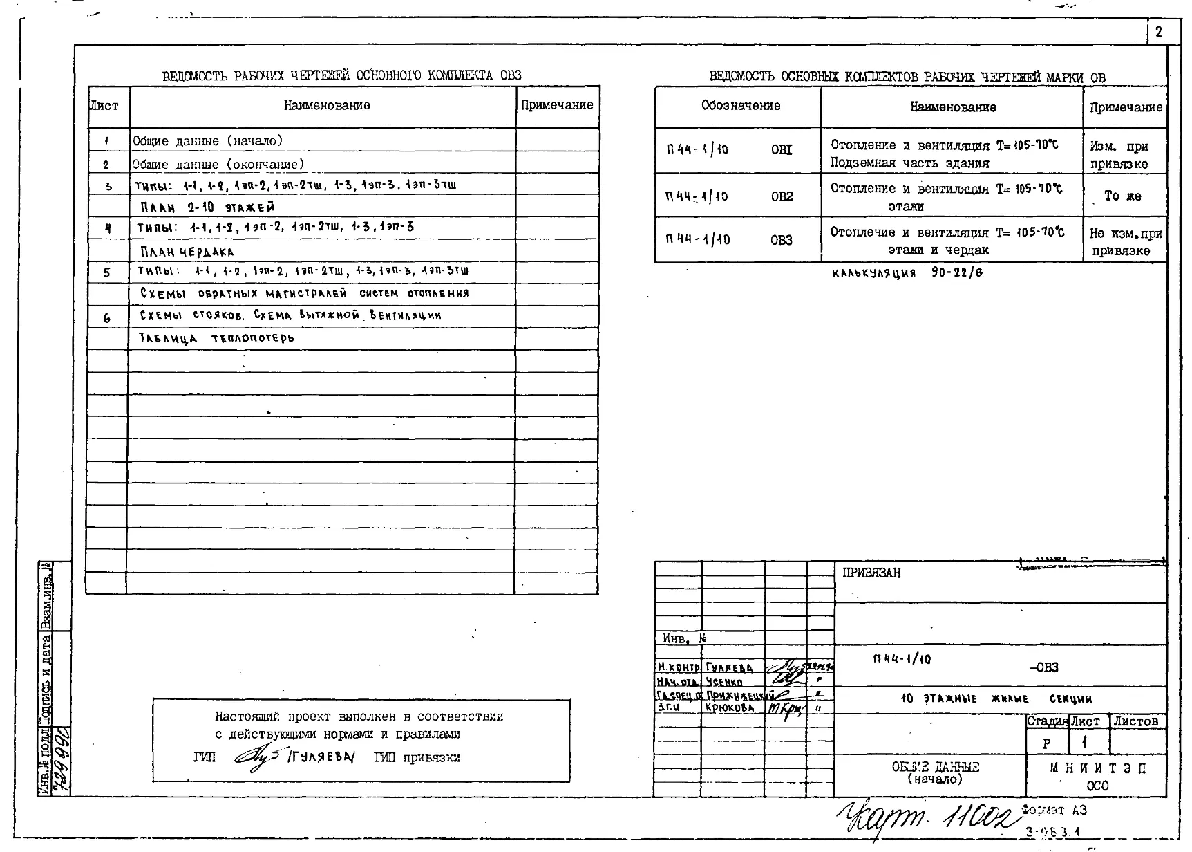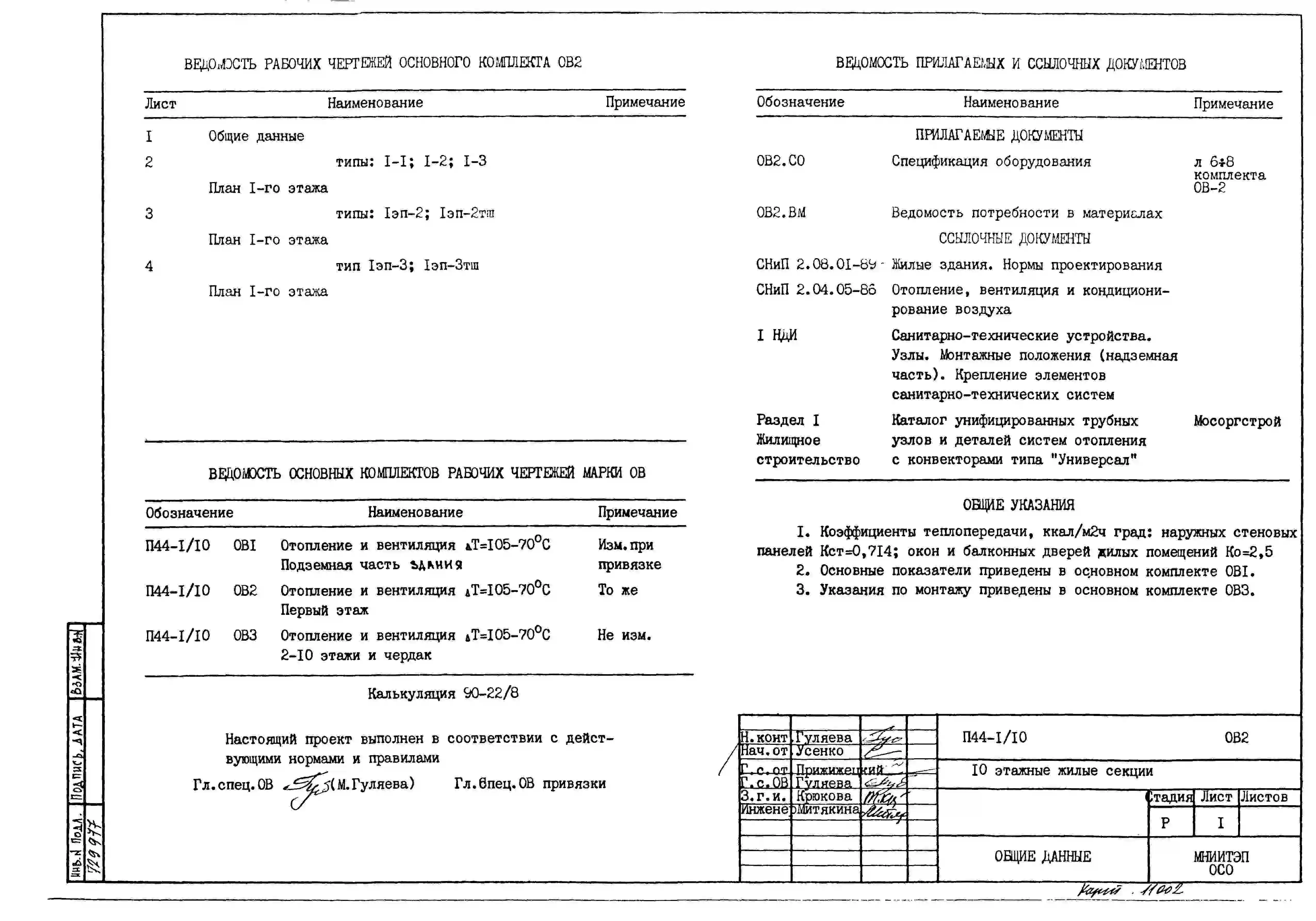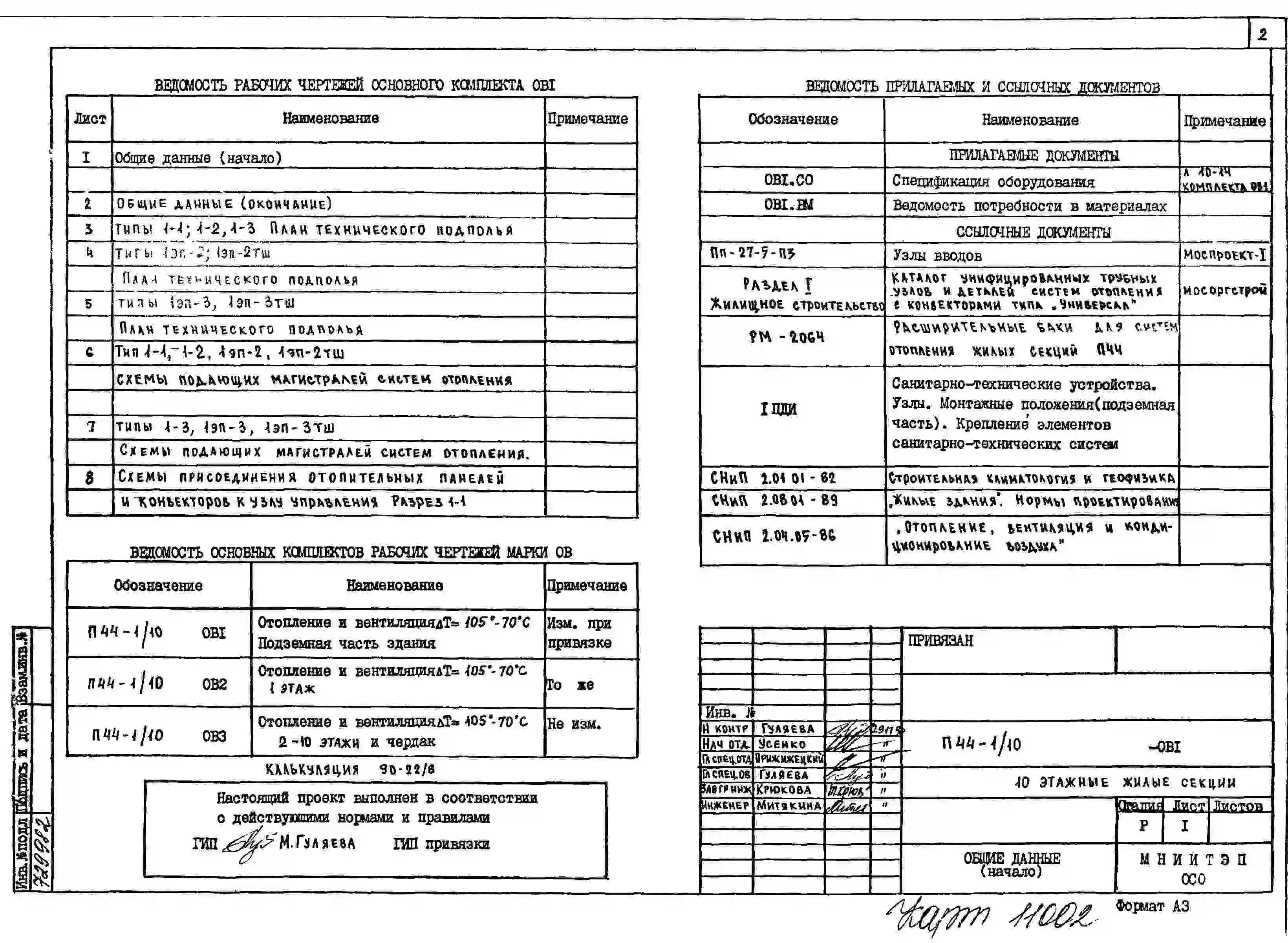 Типовой проект П44-1/10 10-этажные жилые секции (рядовые)