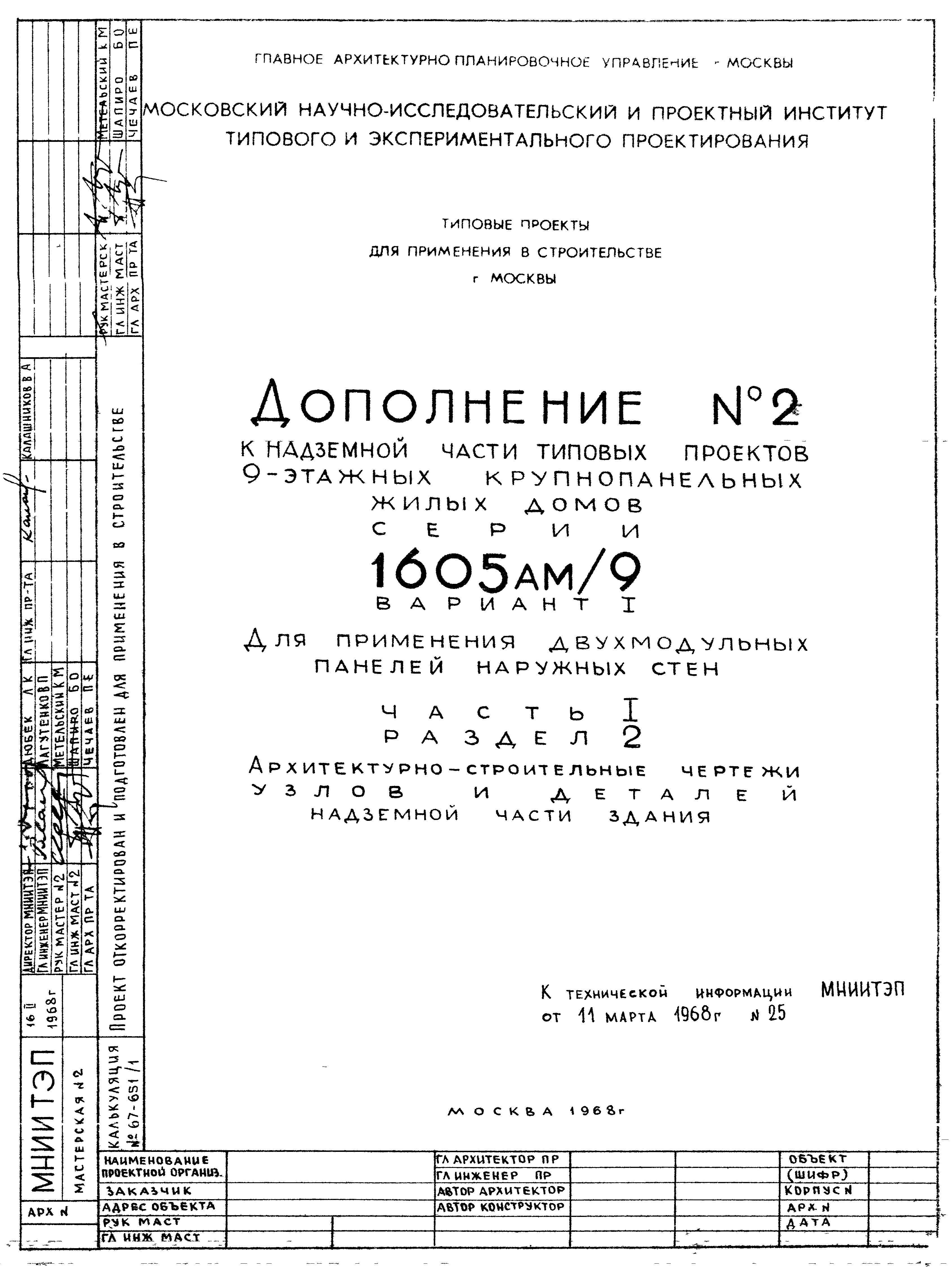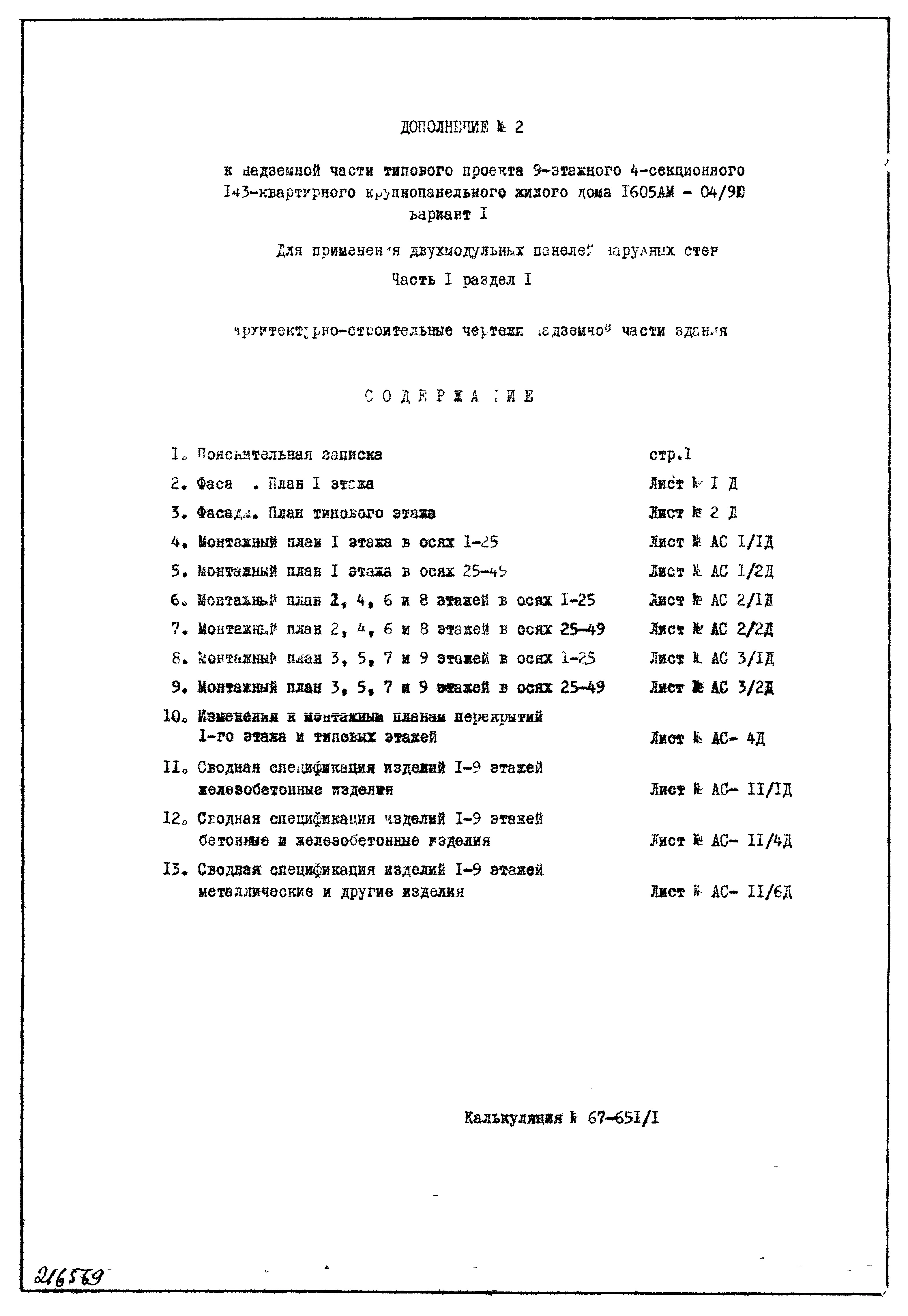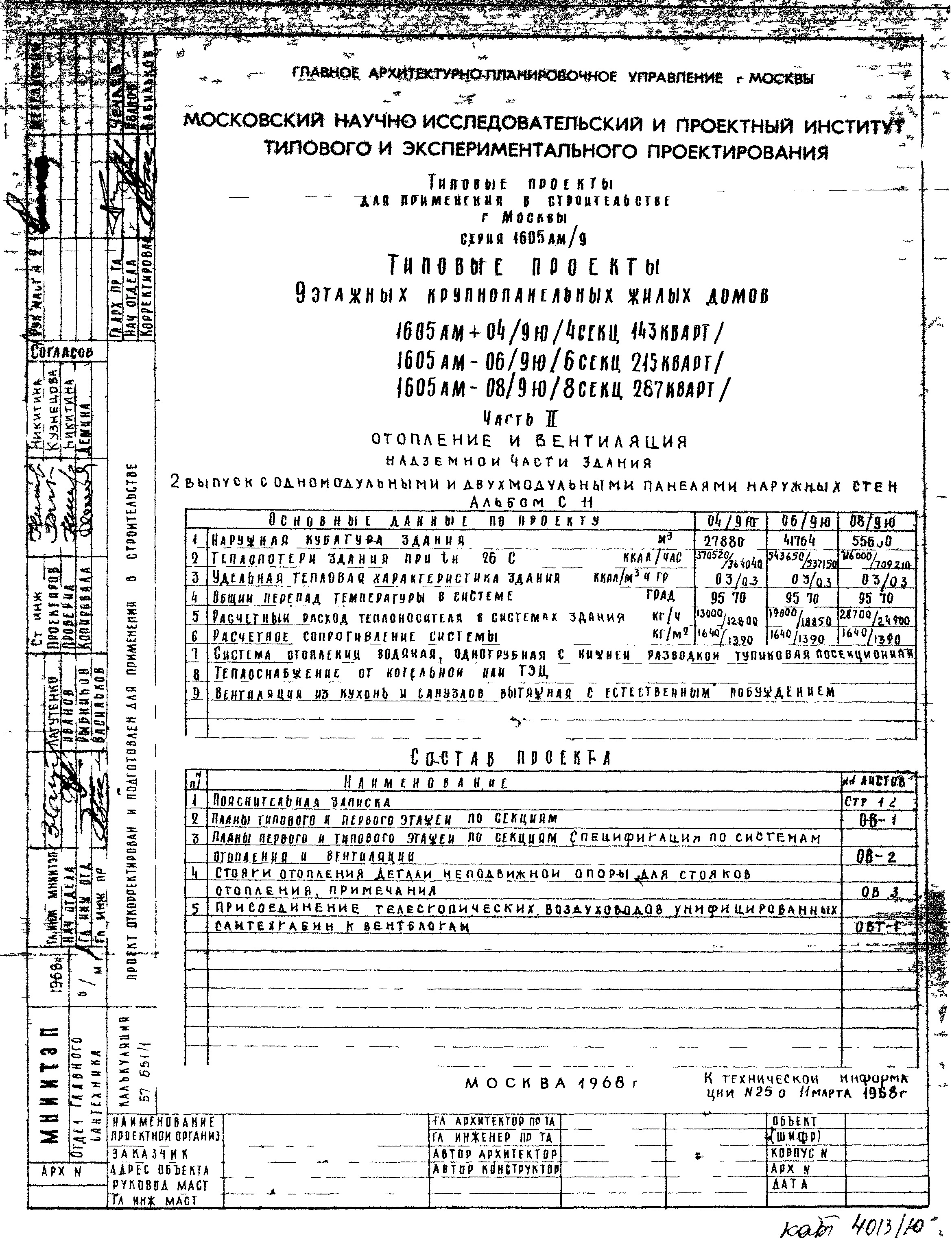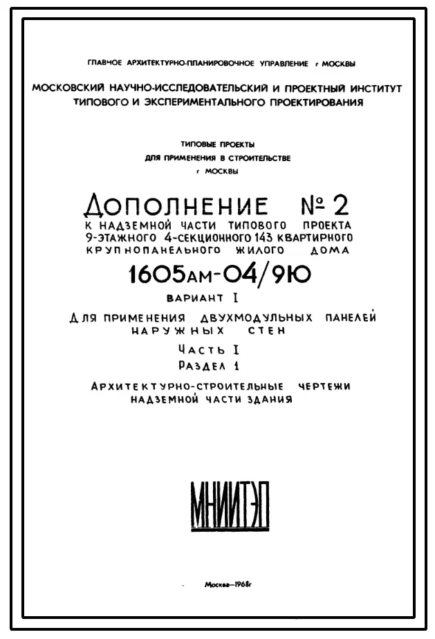 Типовой проект 1605АМ-04/9Ю Жилой 9-этажный 4-секционный дом на 143 квартиры . Ориентация-широтная.