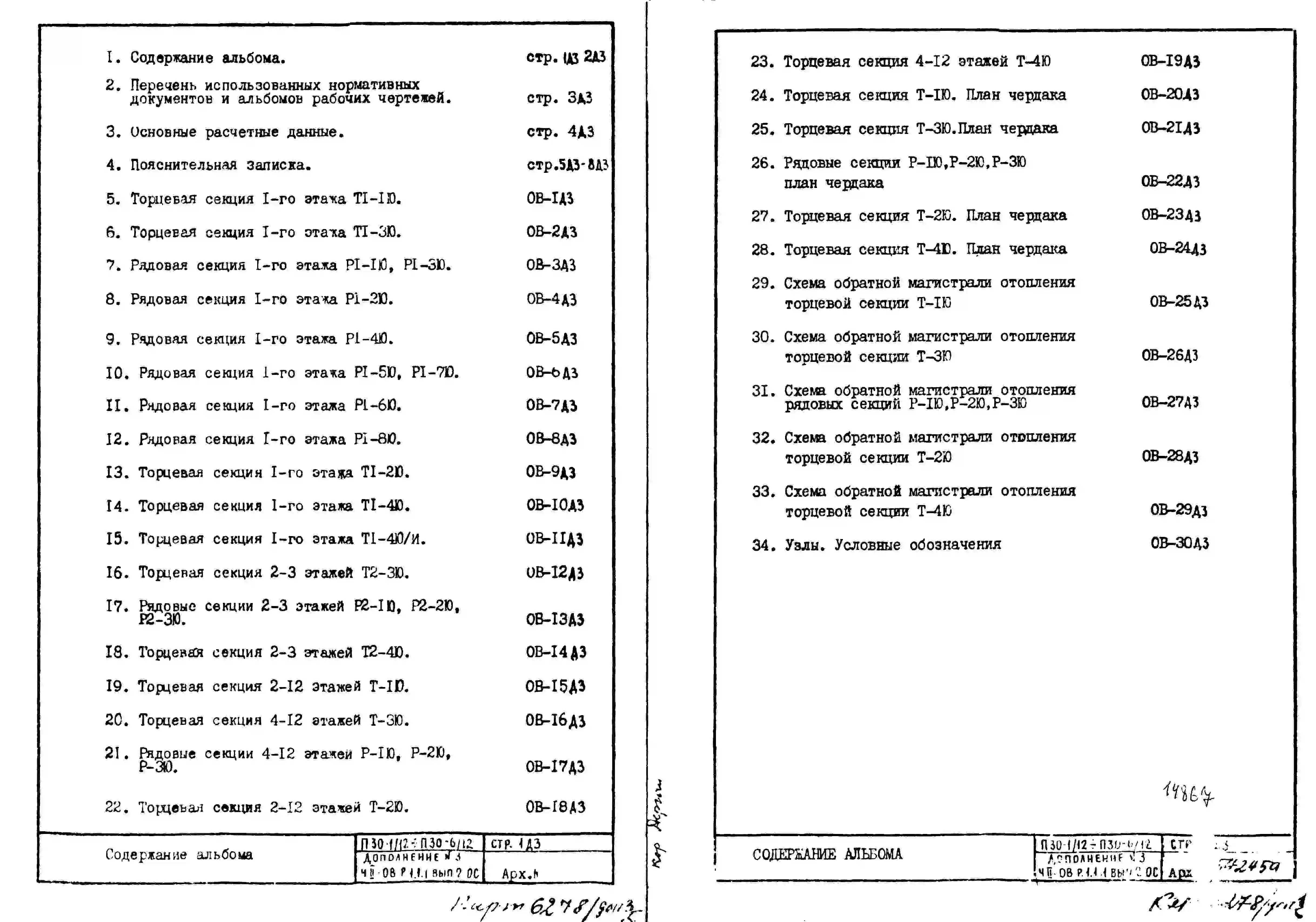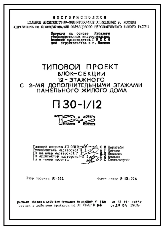 Типовой проект П30-1/12 Блок-секции 12-ти этажного панельного жилые дома с 2-умя дополнительными этажами для строительства в г. Москве