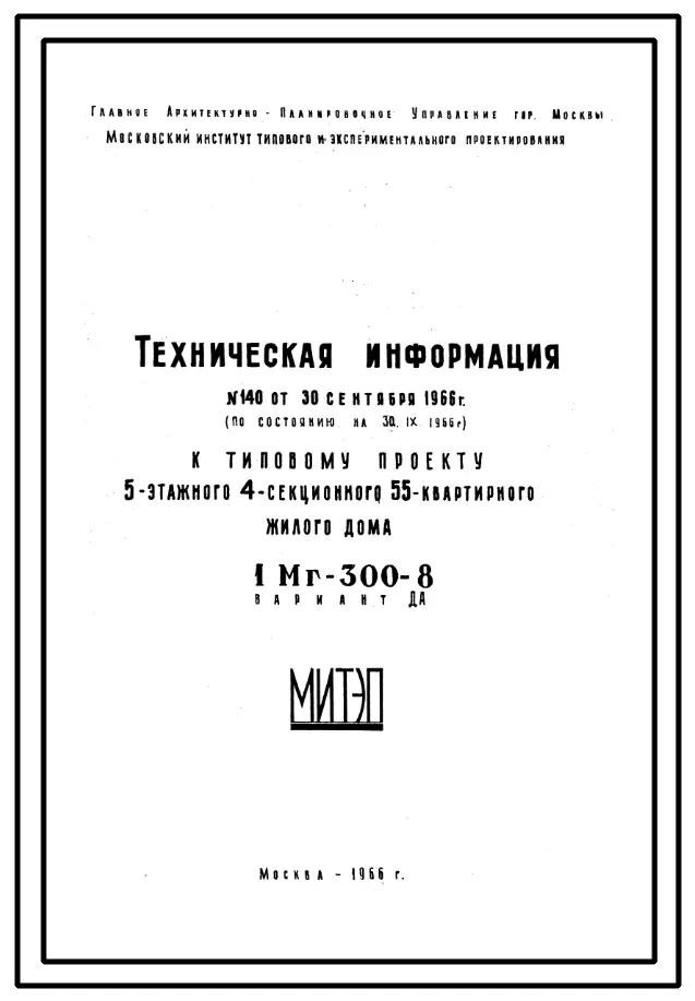 Типовой проект 1МГ-300-8 вар. «ДА» Пятиэтажный четырехсекционный крупнопанельный жилой дом на 55 квартир.