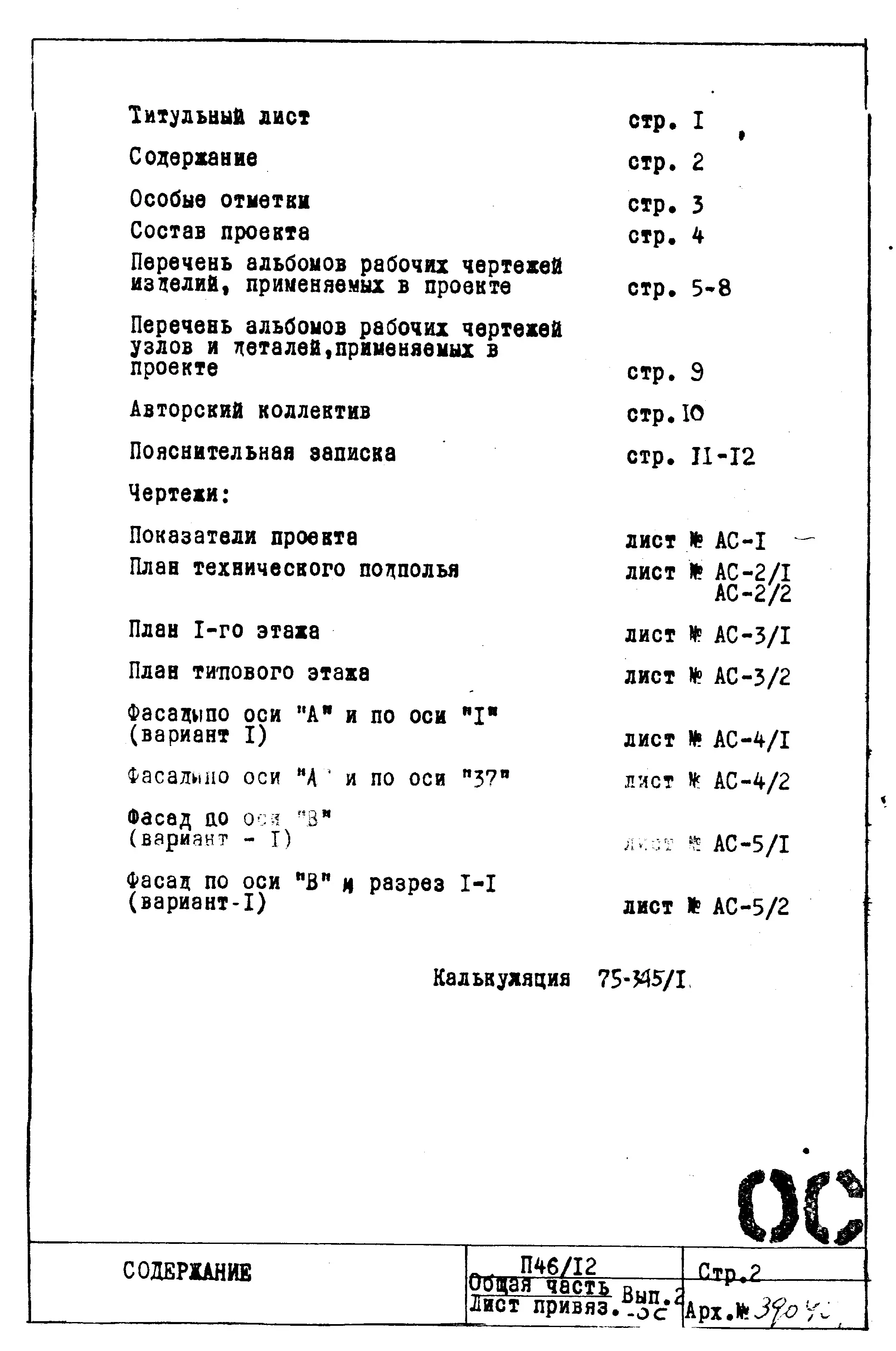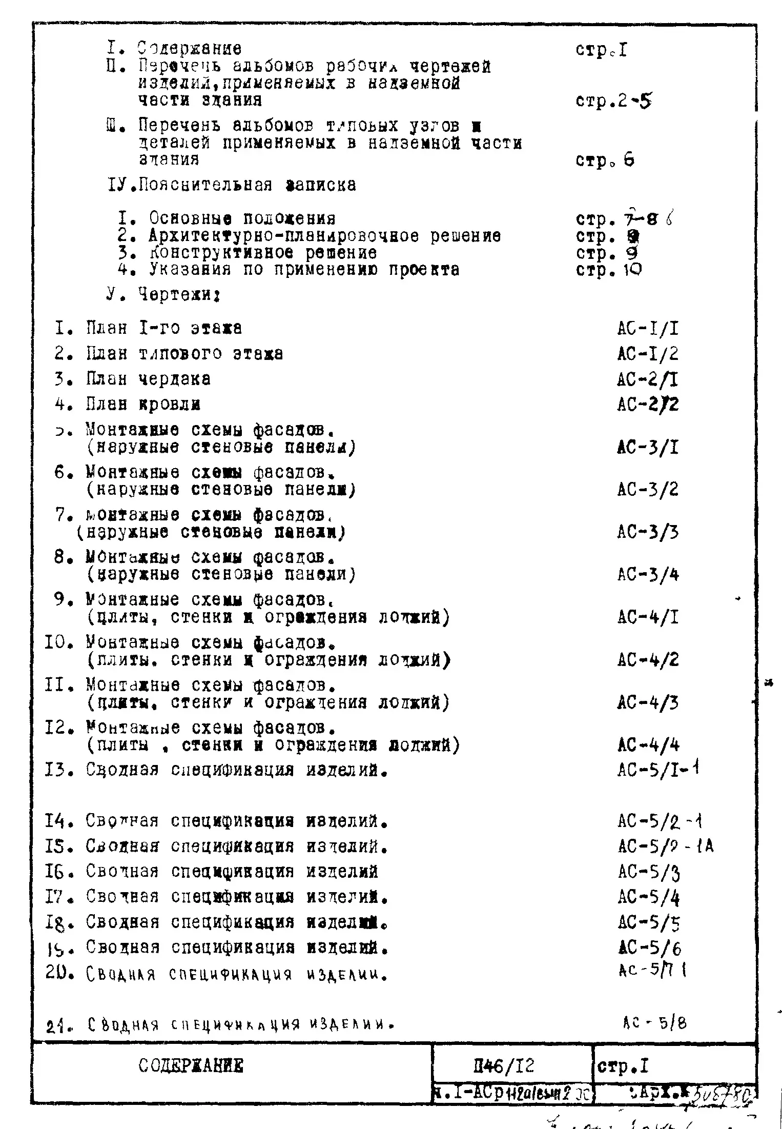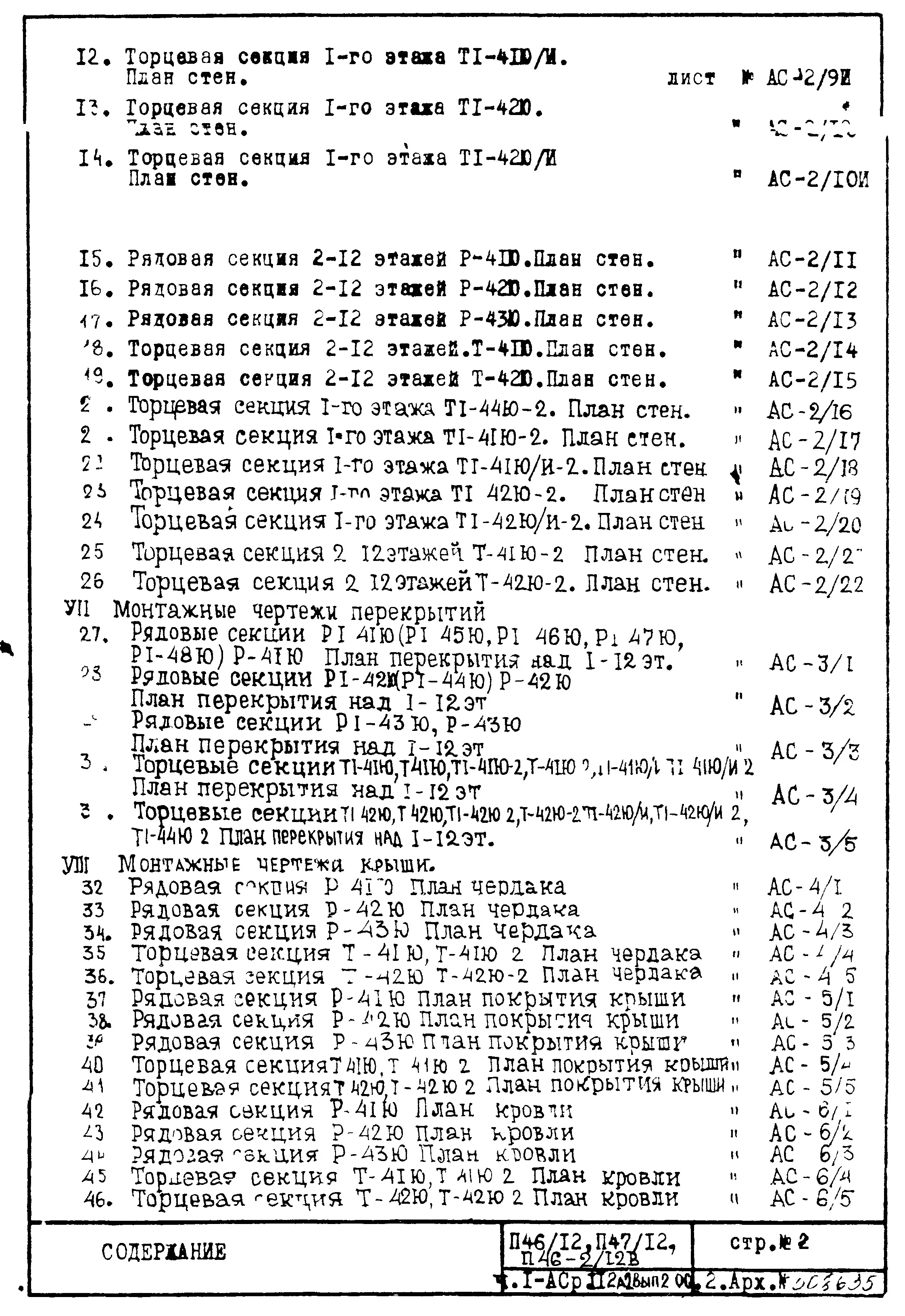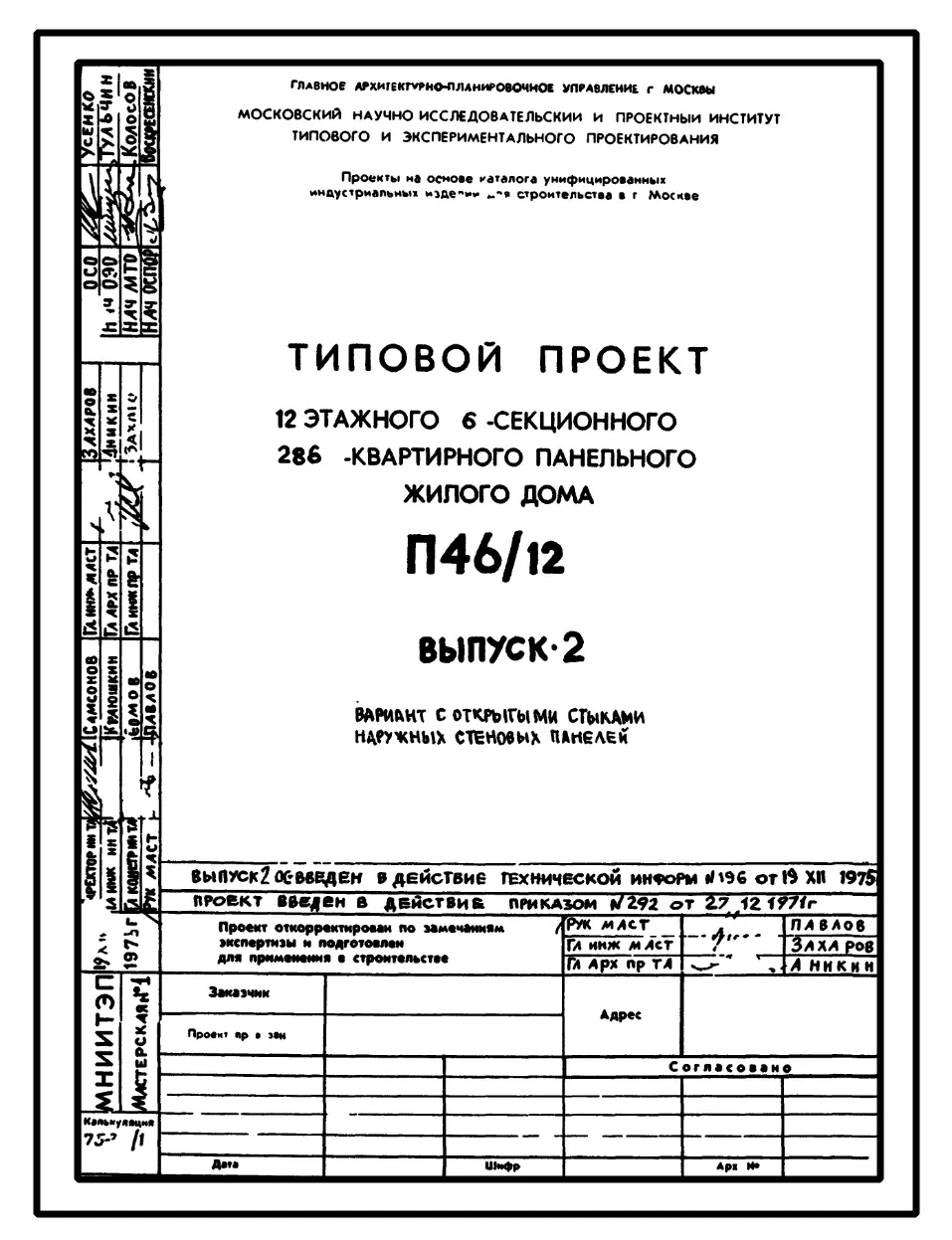 Типовой проект П46/12 12-ти этажные 6-ти секционные 286-квартирные панельные жилые дома серии П46.