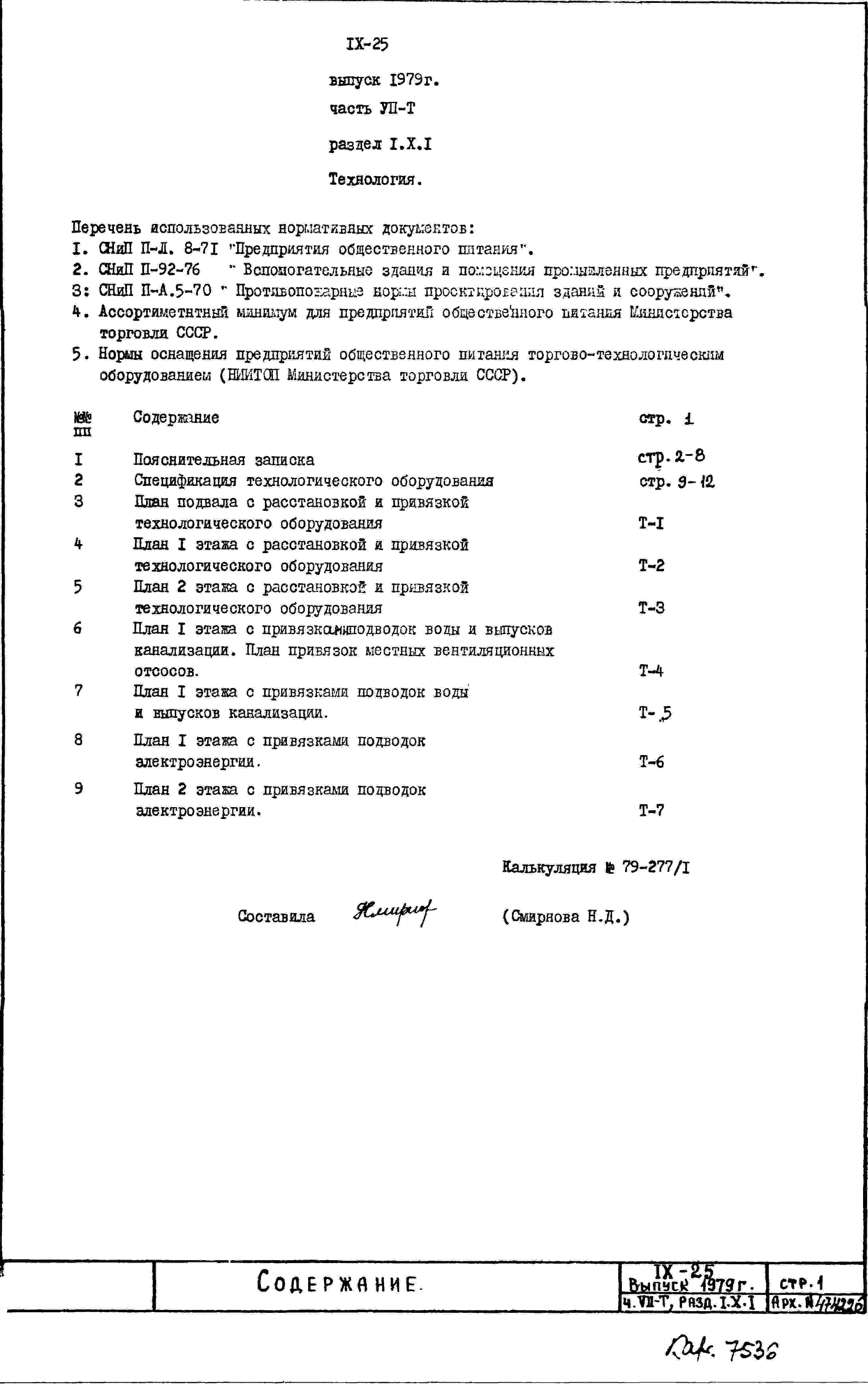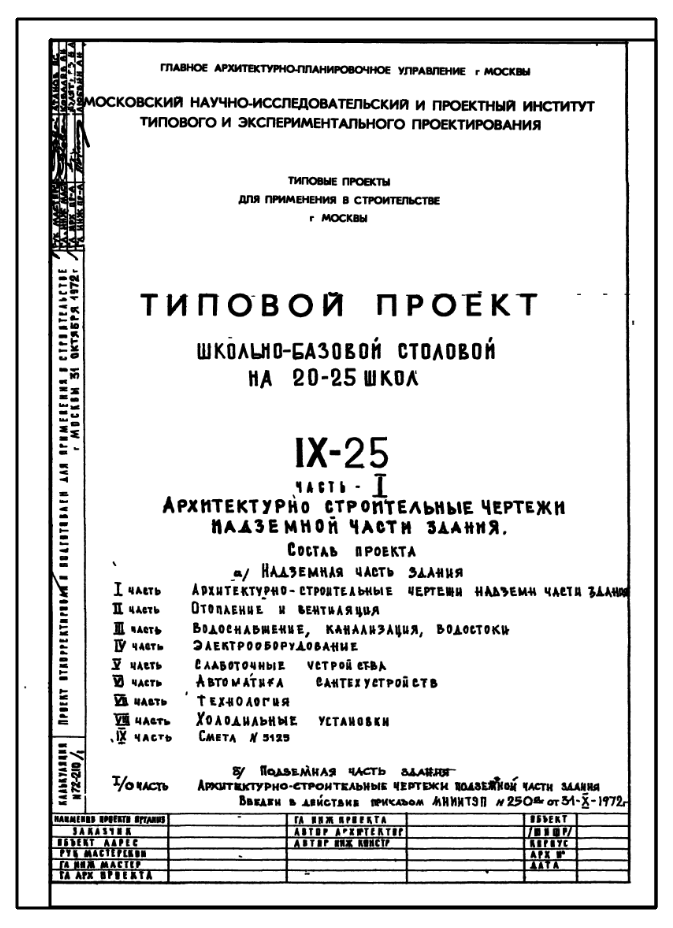 Типовой проект IX-25 Школьно-базовая столовая (на сырье) для строительства в г. Москве
