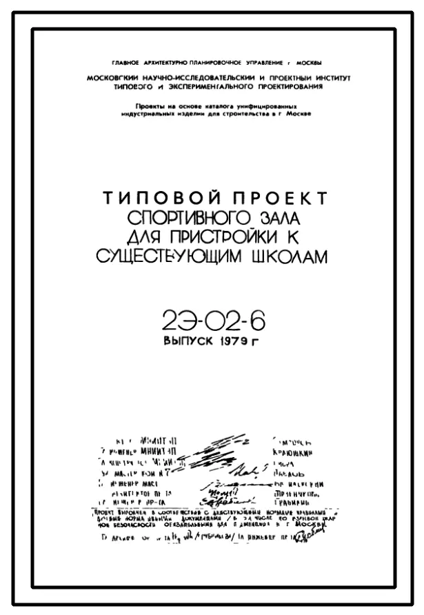 Типовой проект 2Э-02-6 Спортзал для пристройки к существующим школам. Пристройка к школам МЮ, МС и архитектора Степановой