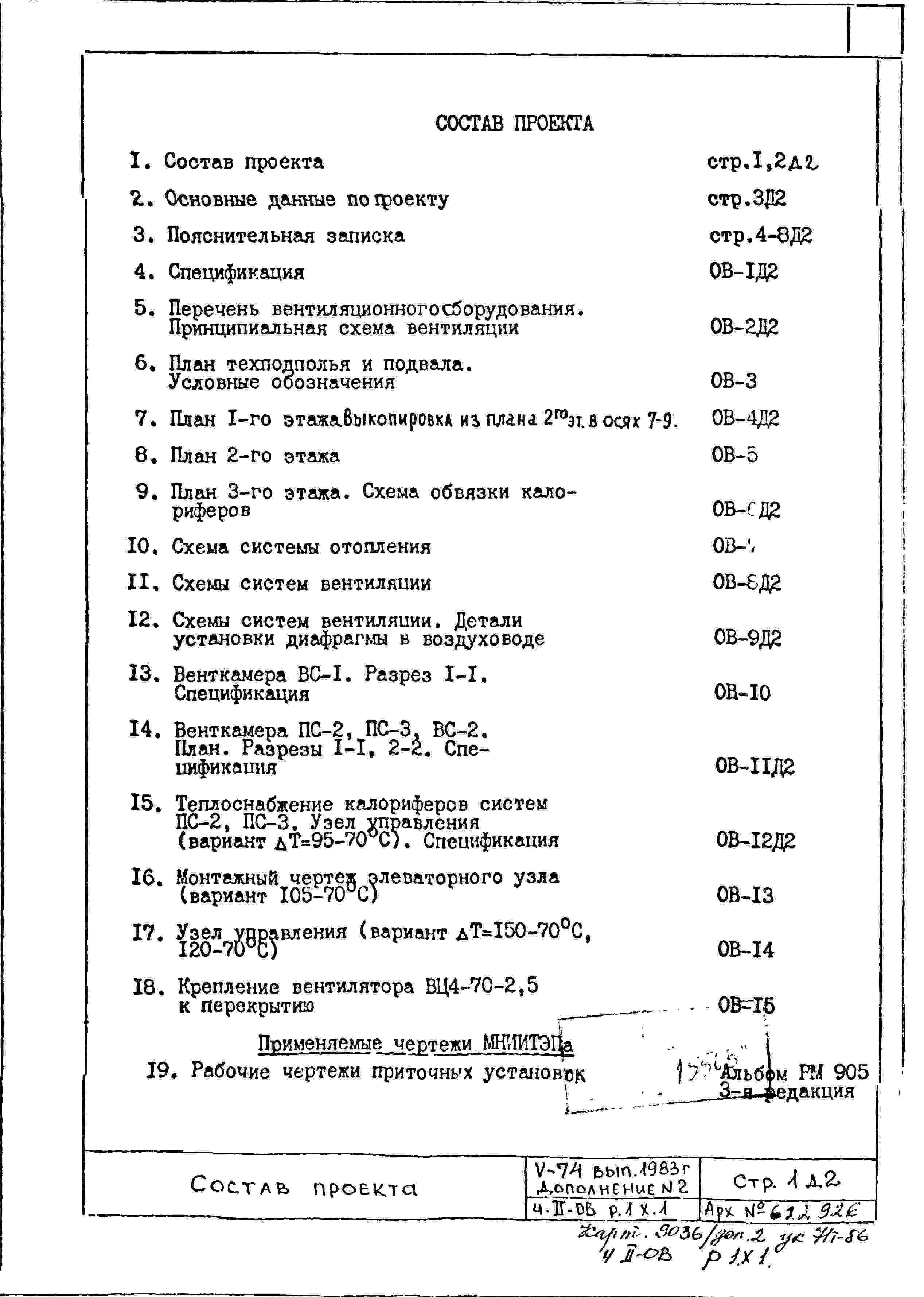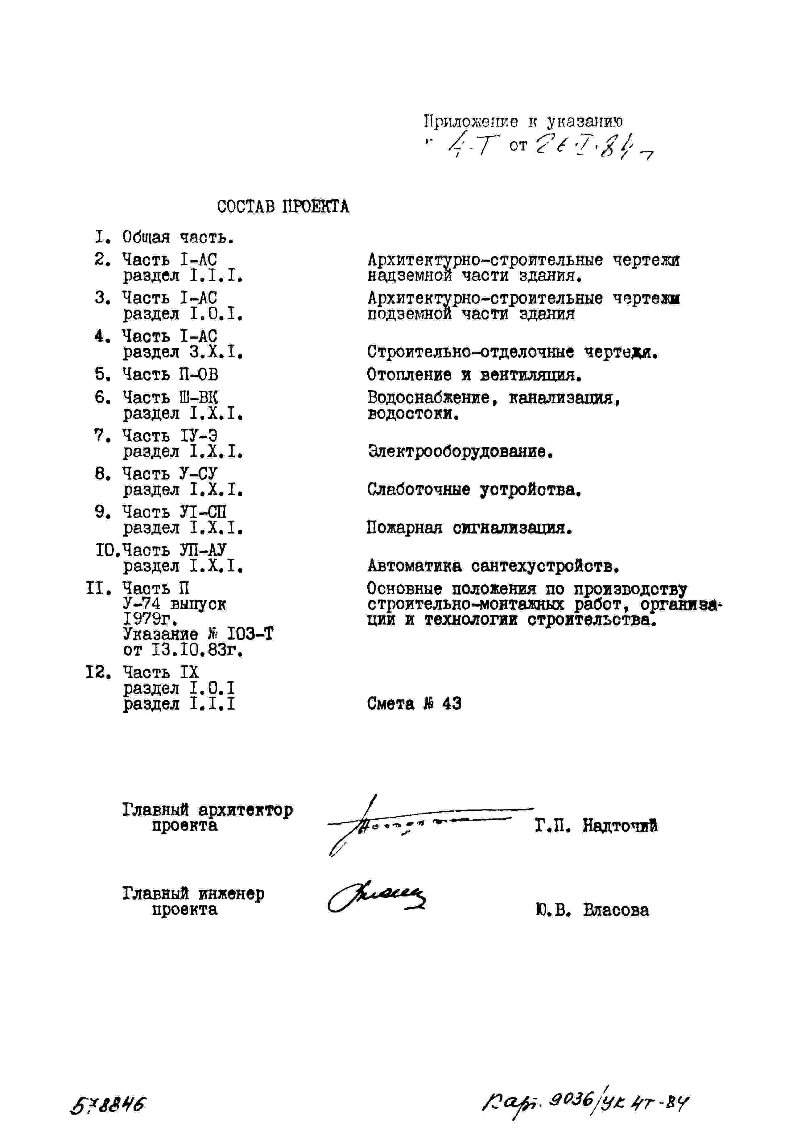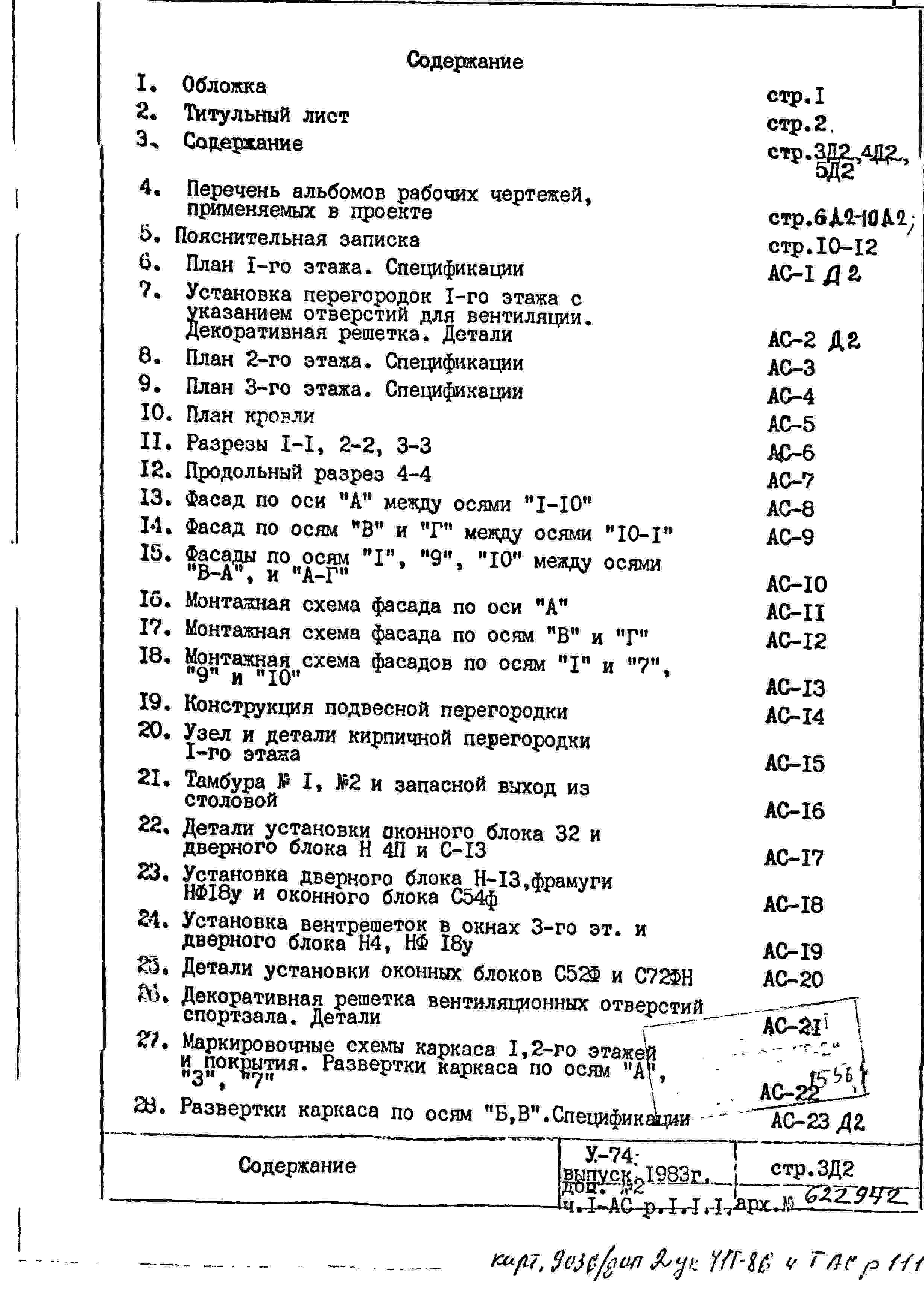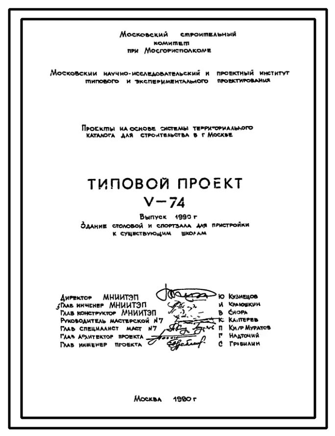 Типовой проект V-74 Столовая и спортзал для пристройки к существующим школам для строительства в г. Москве (Варианты 1979, 1983 и 1990 годов)
