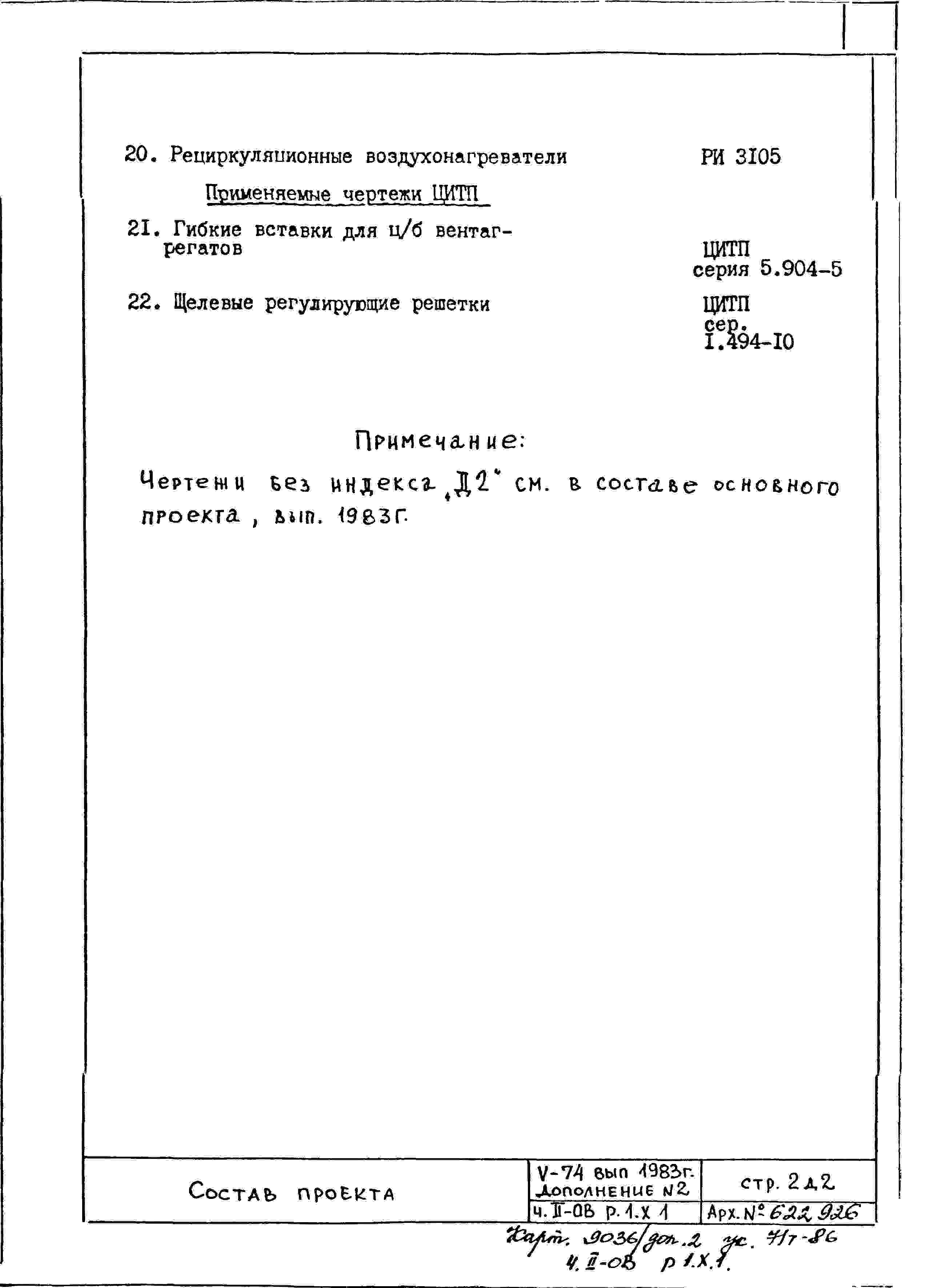 В нашем архиве более 27 тысяч проектов с документацией и более 120 тысяч паспортов проектов без типовых проектов. Паспорт проекта -это краткое описание типового проекта . Паспорт проекта всегда разрабатывался вместе с проектом и являлся кратким его описанием. Обычно объем паспорта- 1-3 листа, но в каждом конкретном случае размер и содержание паспорта определял разработчик проекта.