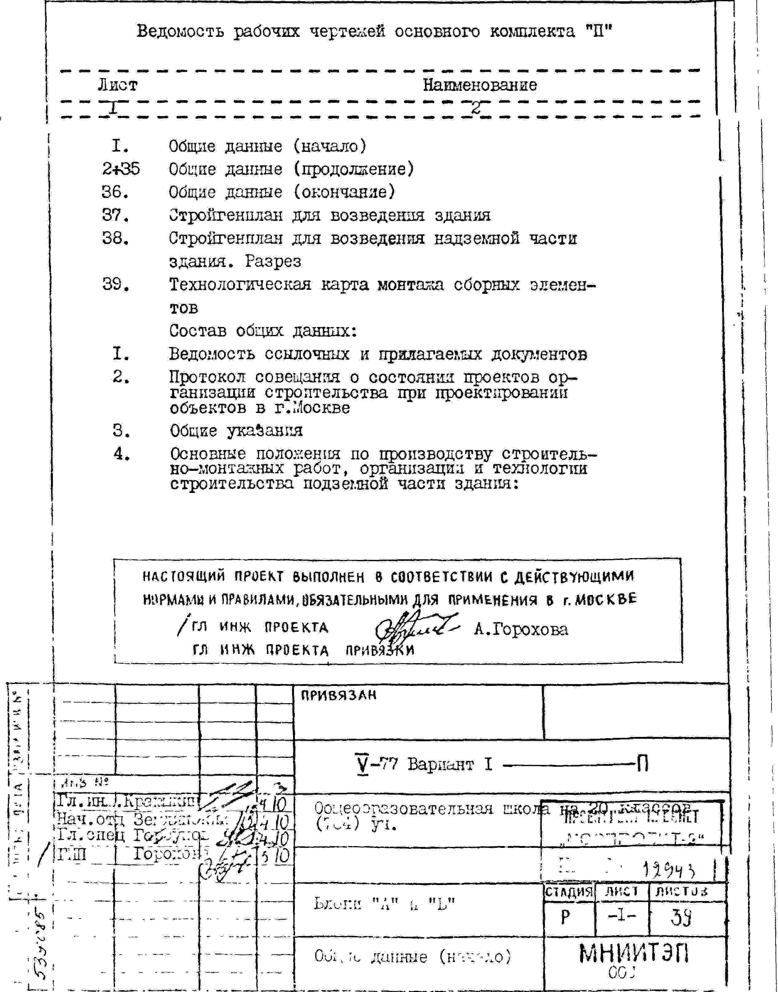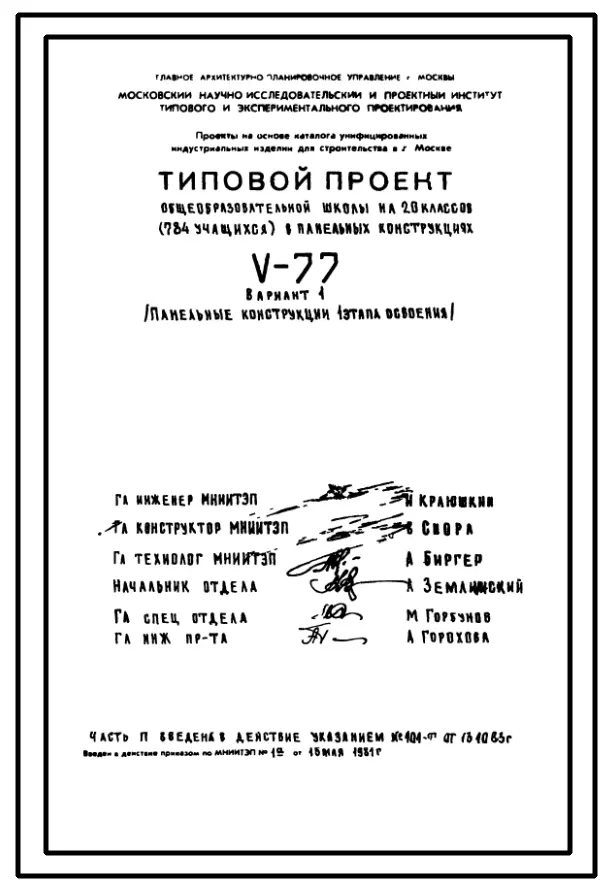 Типовой проект V-77 вариант 1 Общеобразовательная школа на 20 классов (784 уч.)