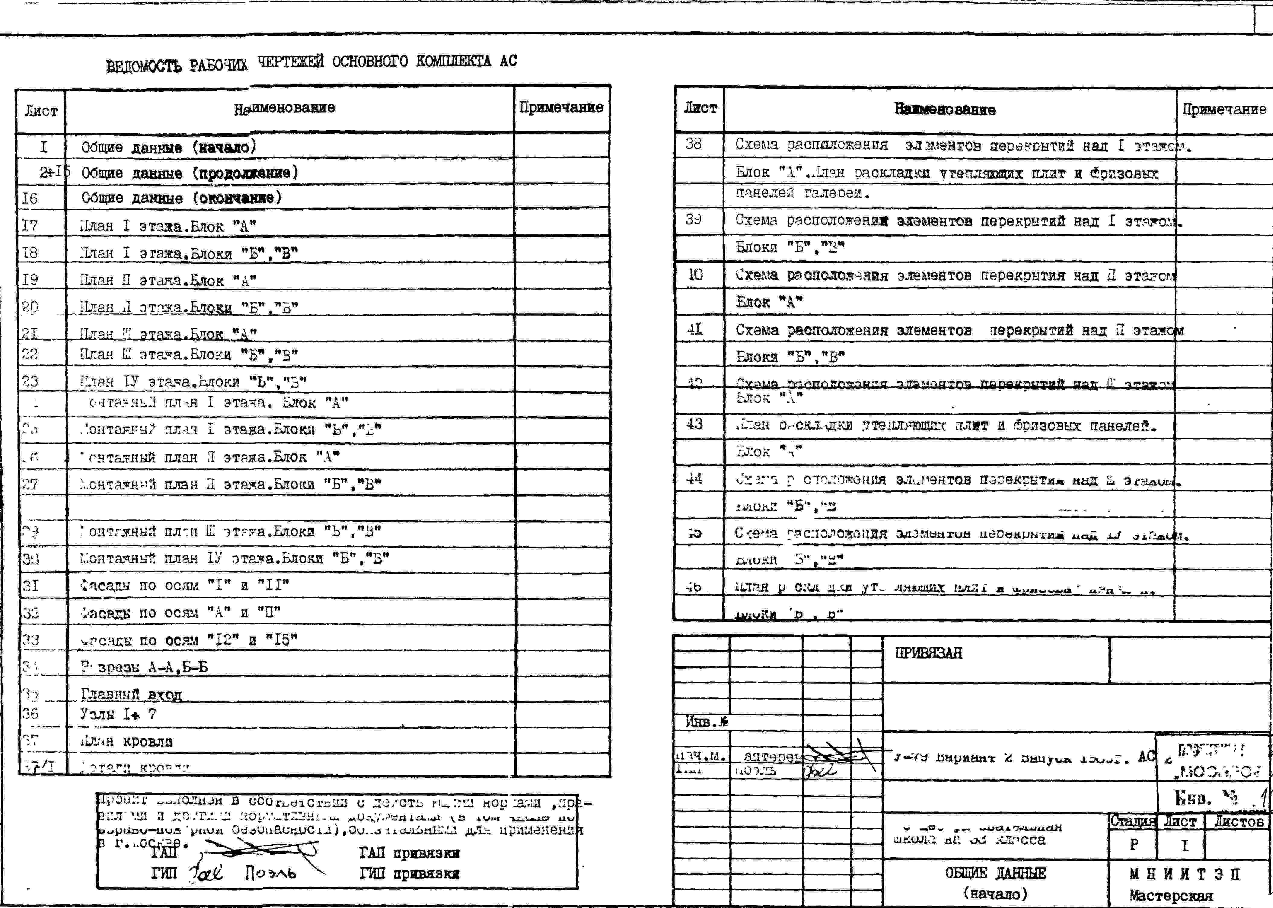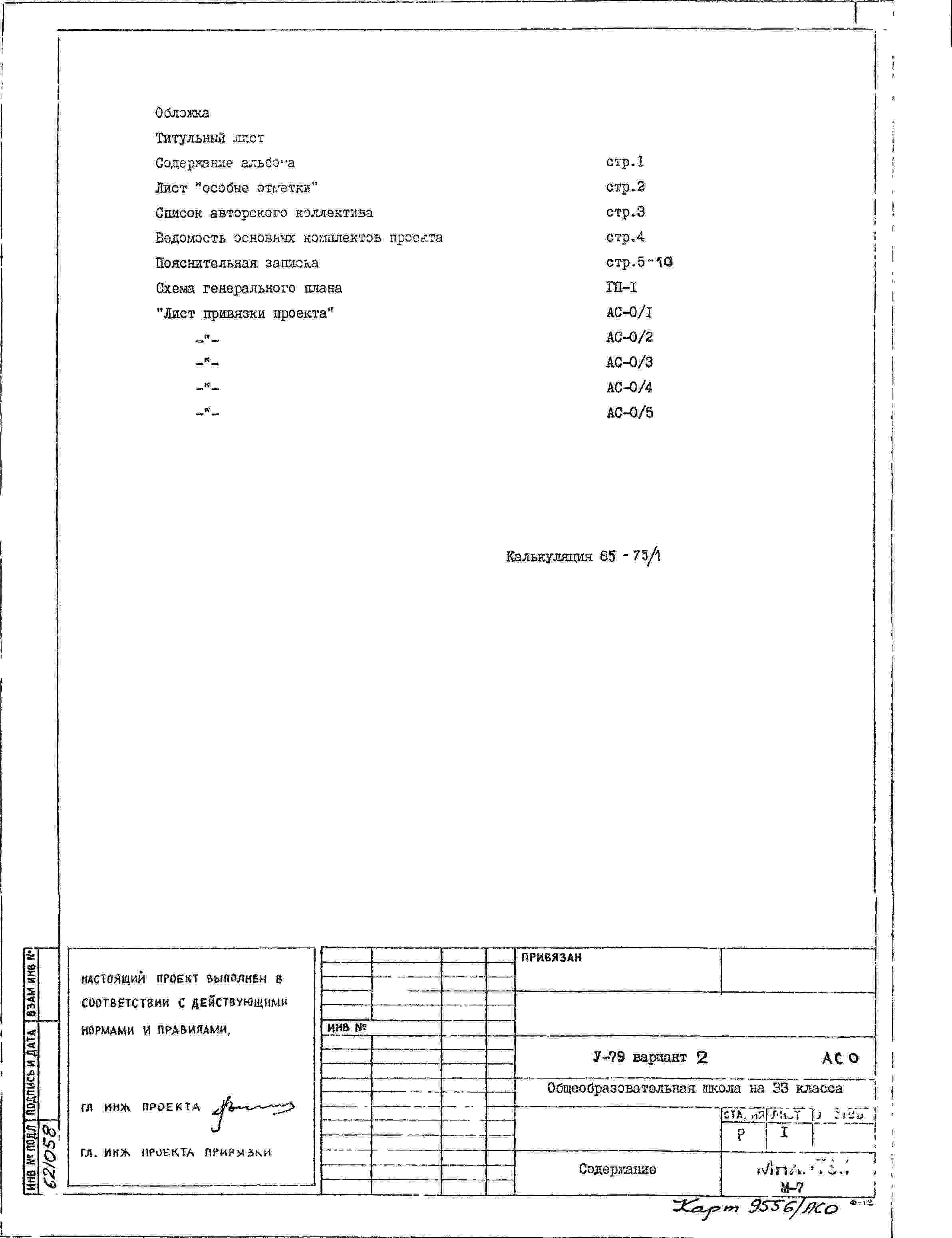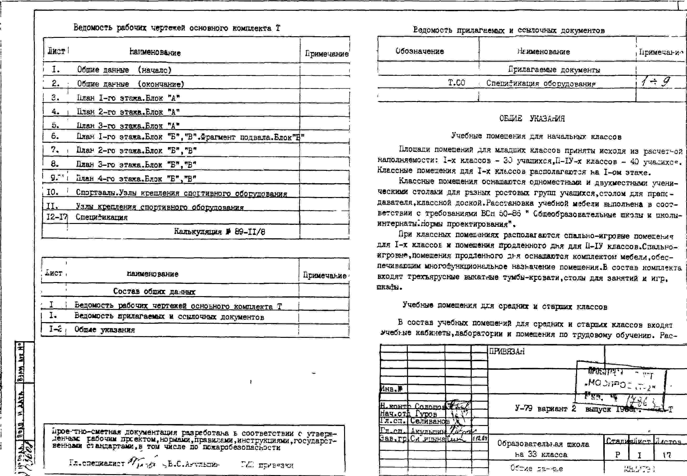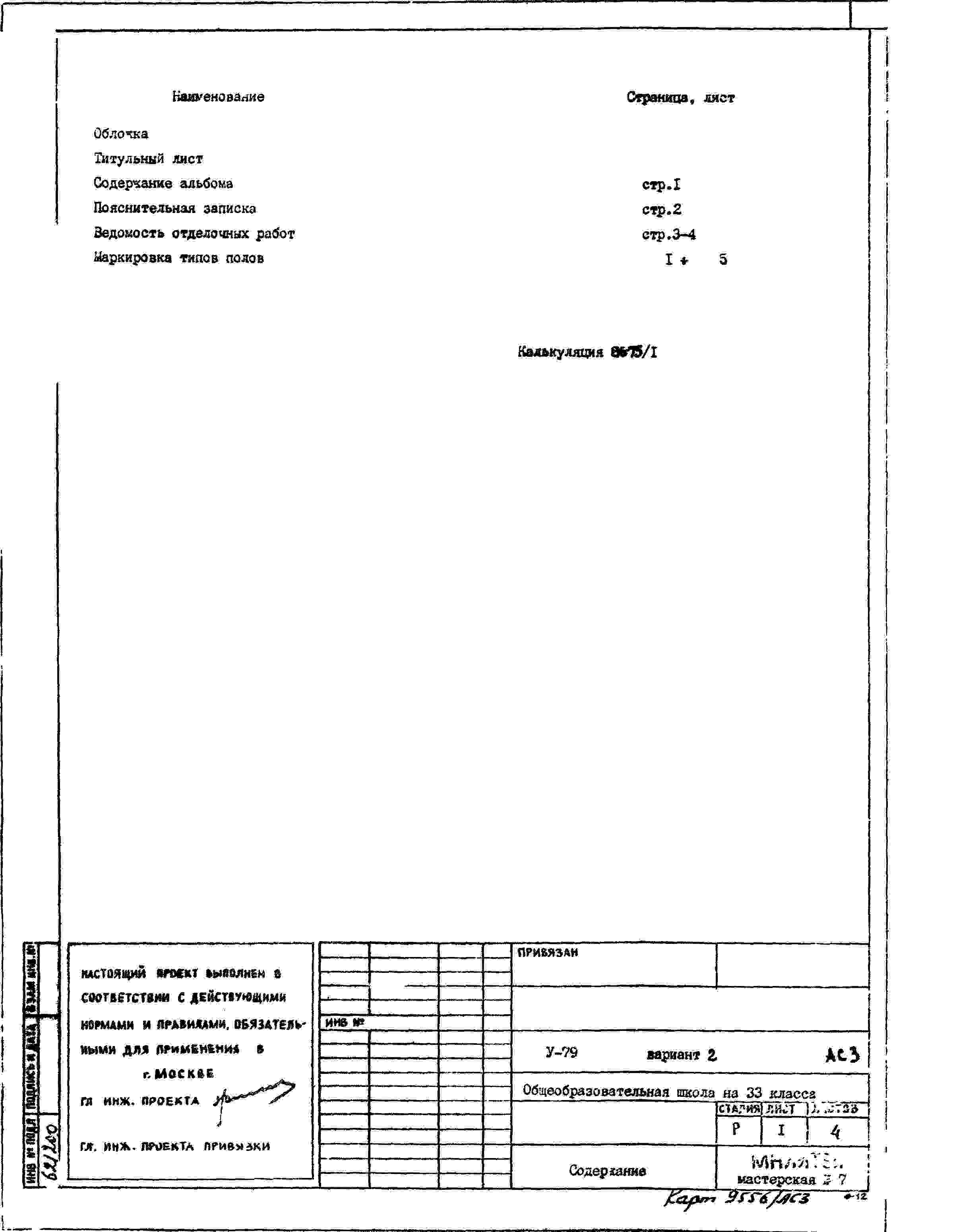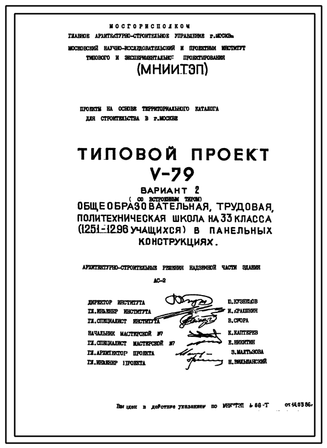 Типовой проект V-79 Общеобразовательная школа на 33 класса (1251/1296 уч.) Проект И-1605А. Исходный проект.