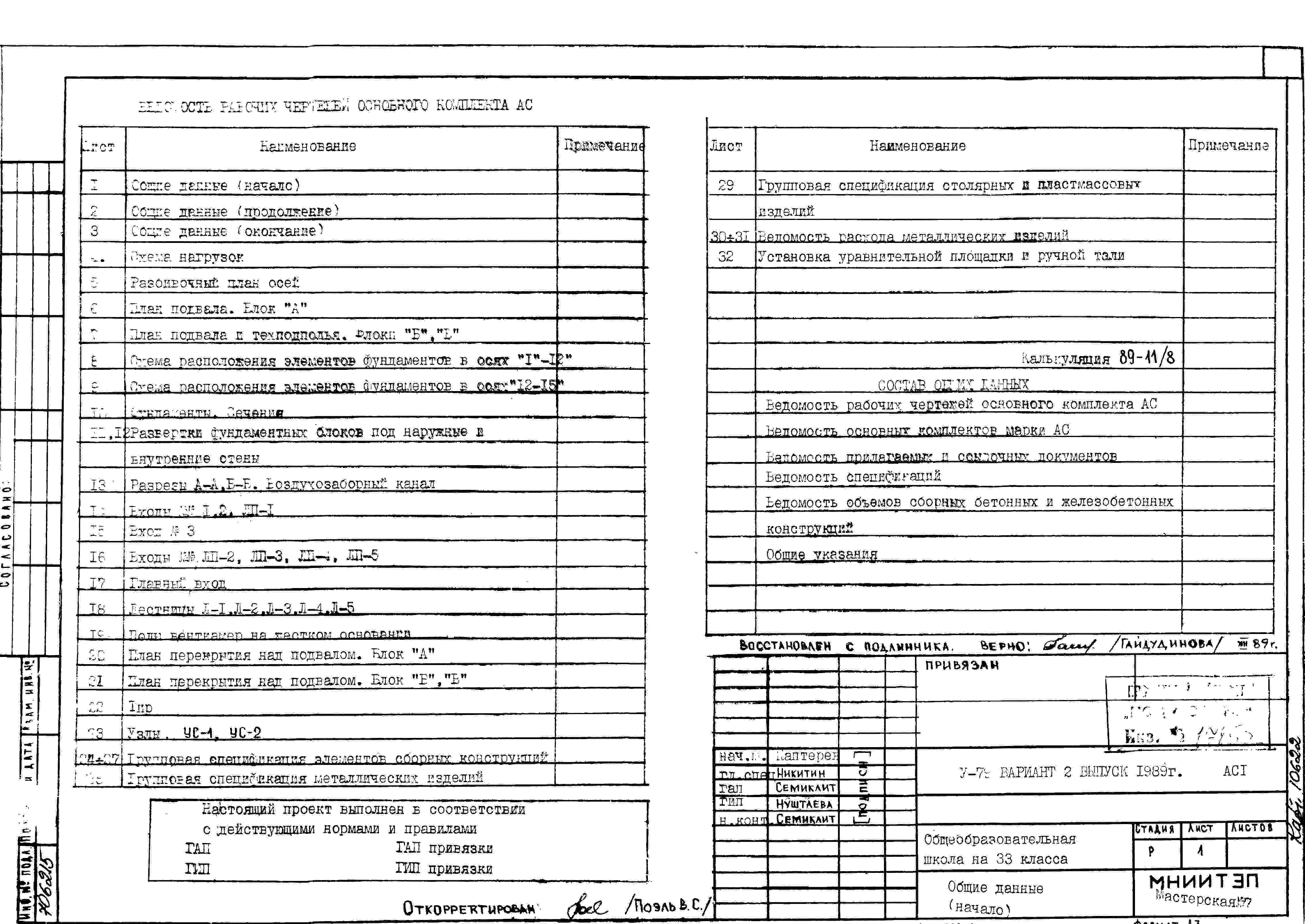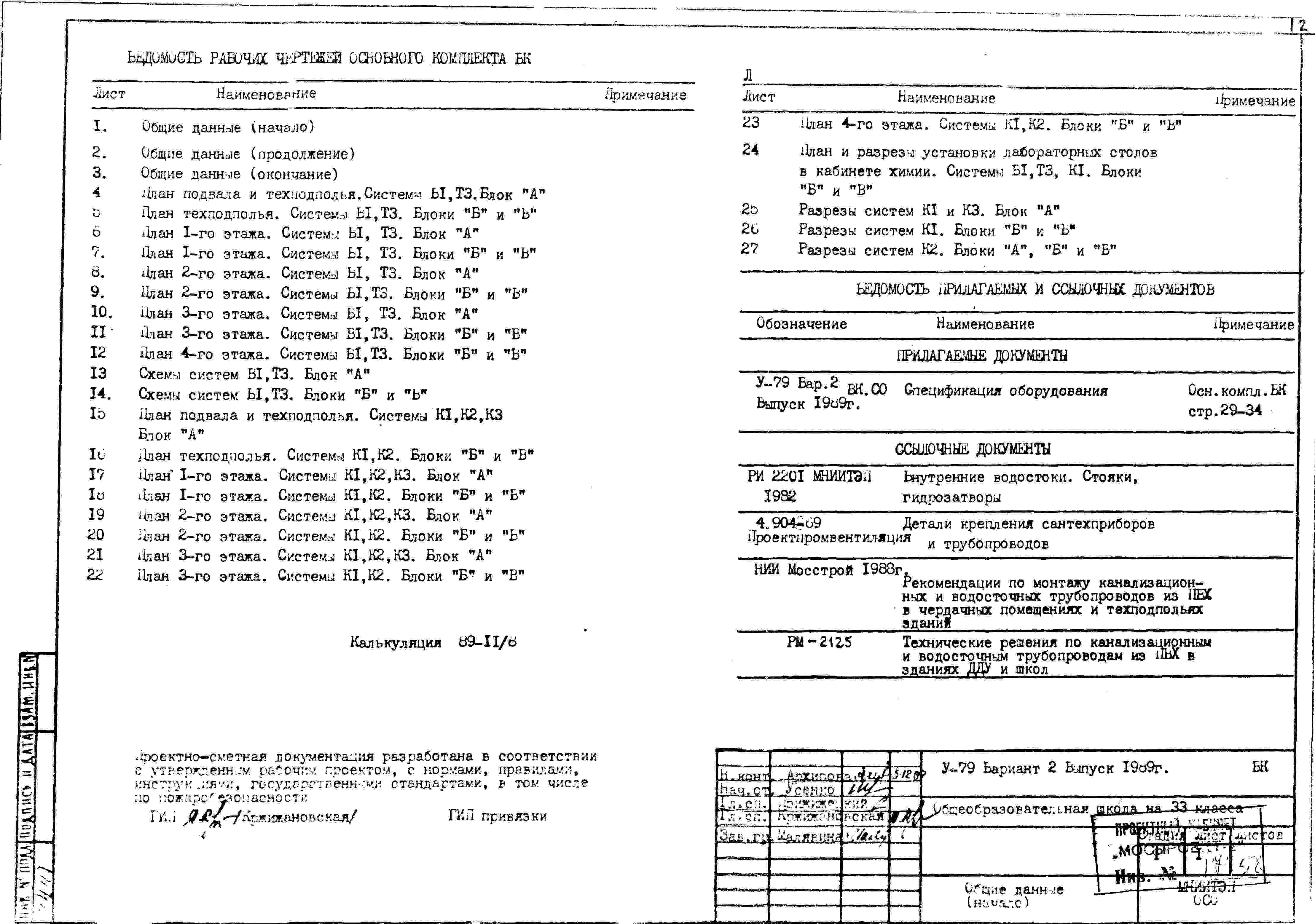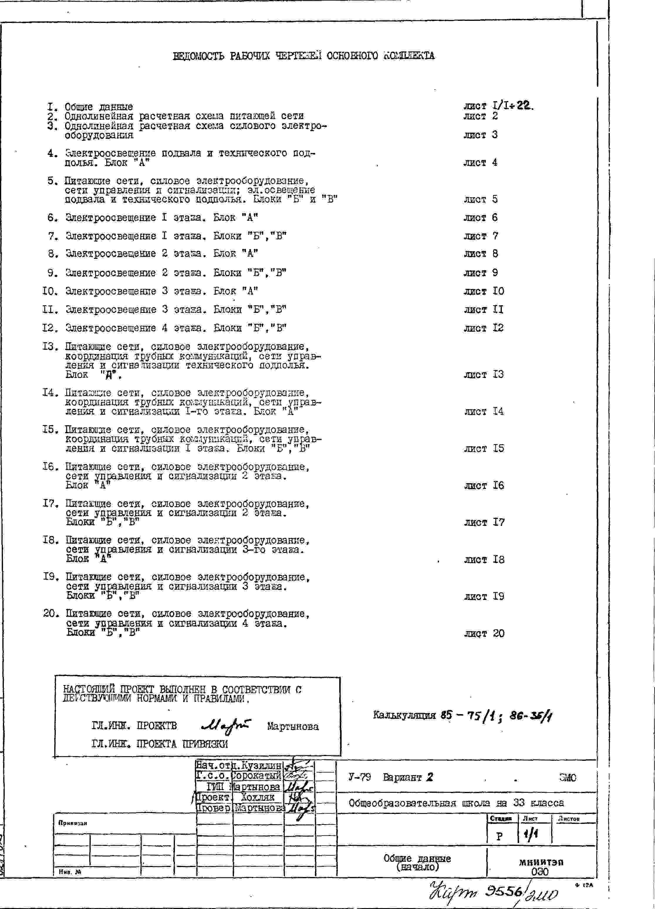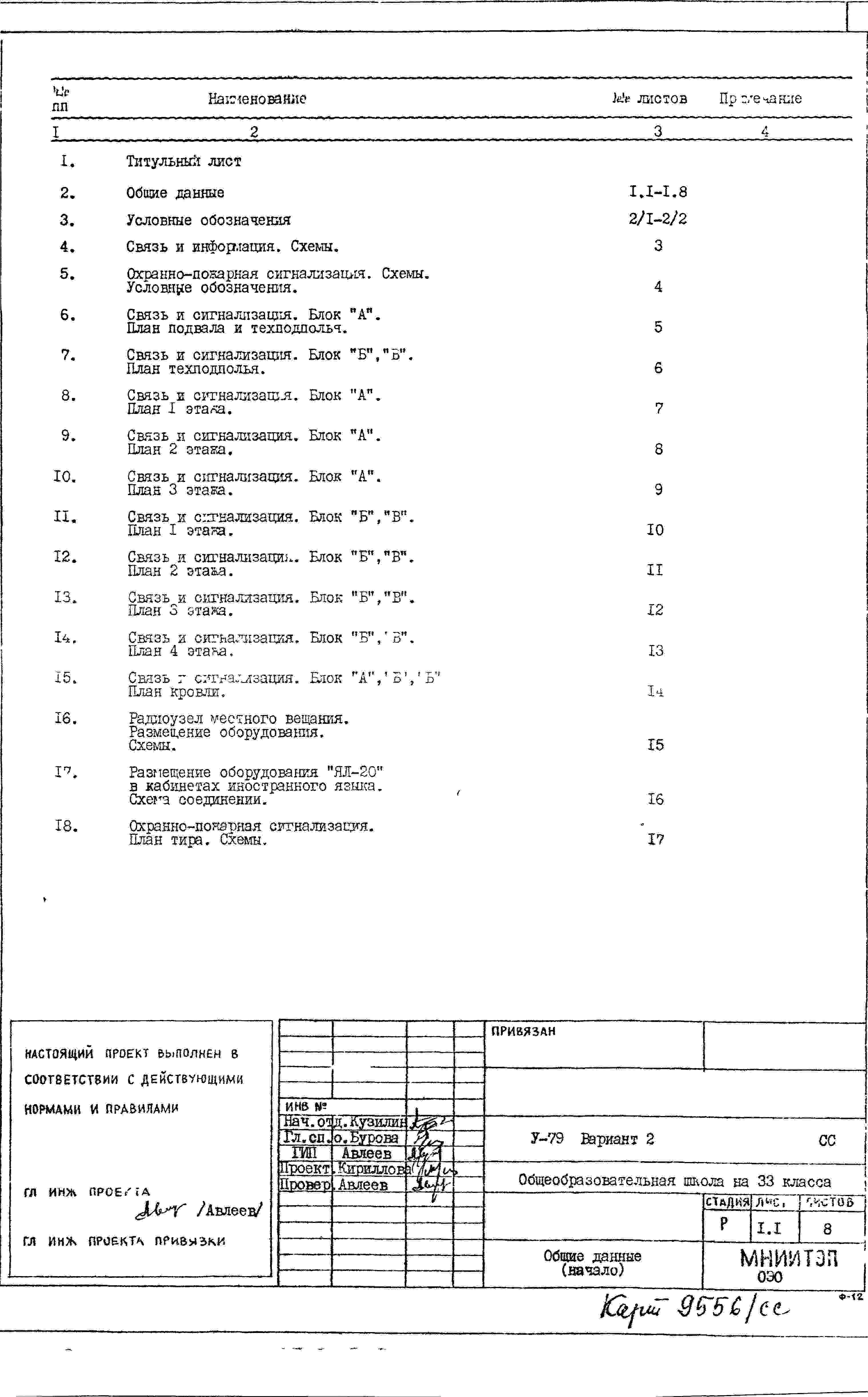 Типовой проект V-79 Общеобразовательная школа на 33 класса (1251/1296 уч.) Проект И-1605А. Исходный проект.