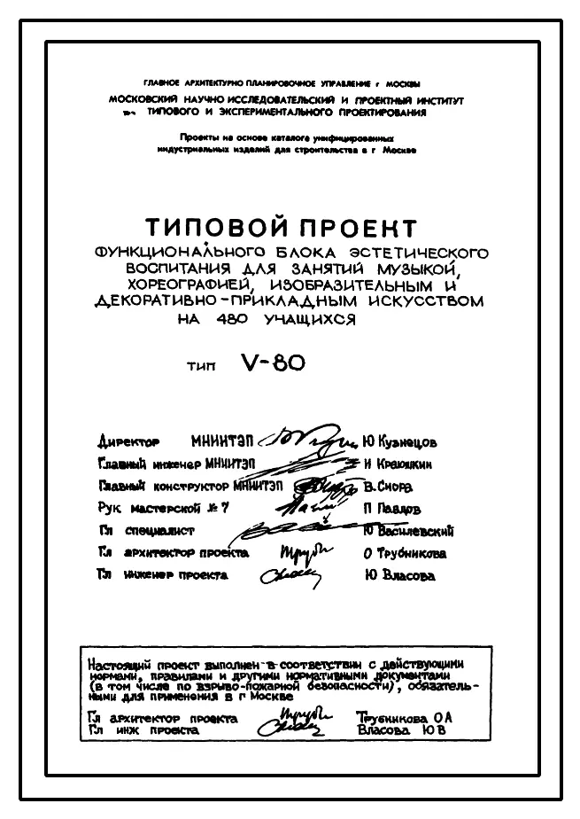 Типовой проект V-80 Функциональный блок эстетического воспитания на 480 учащихся для пристройки к существующим школам
