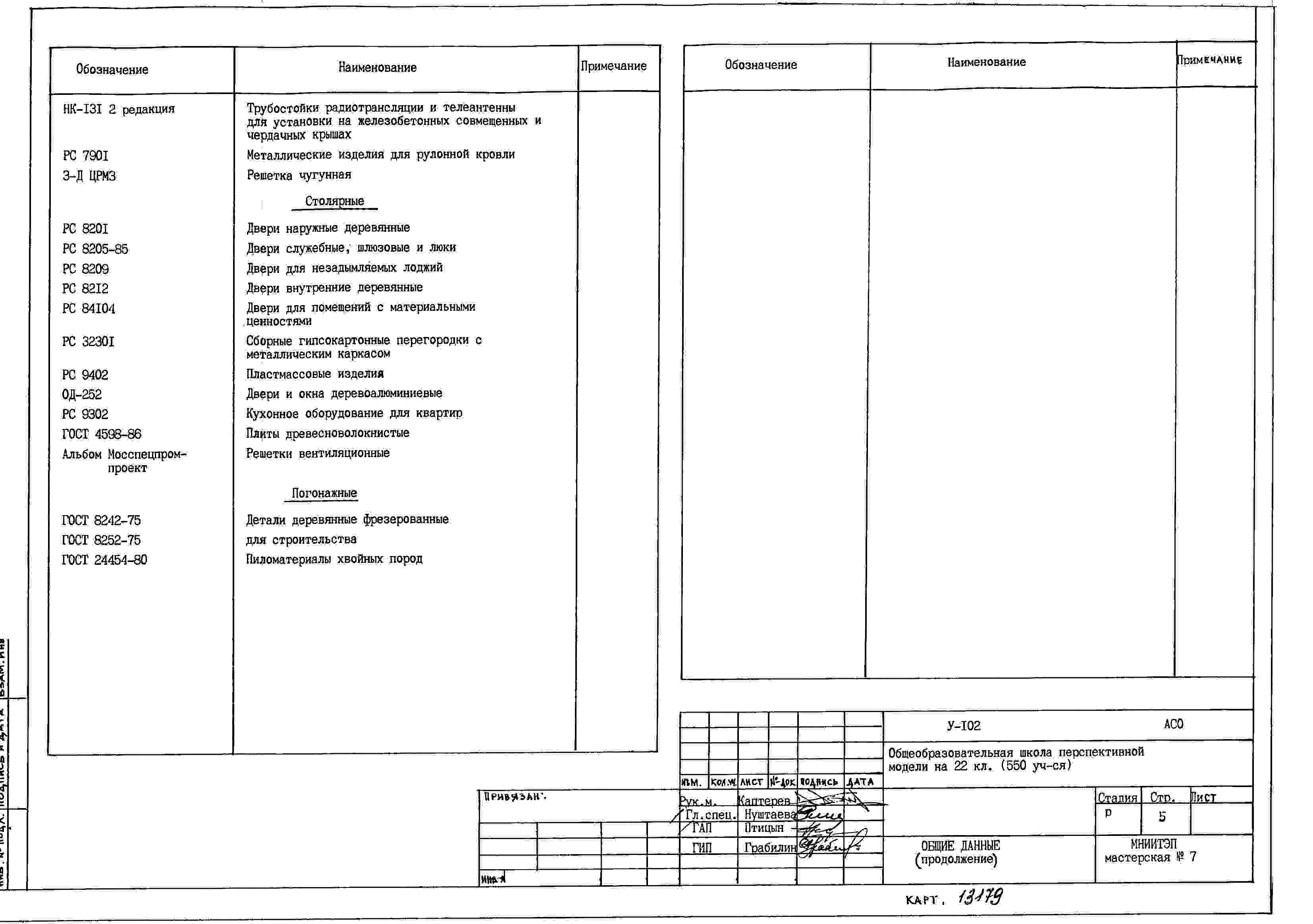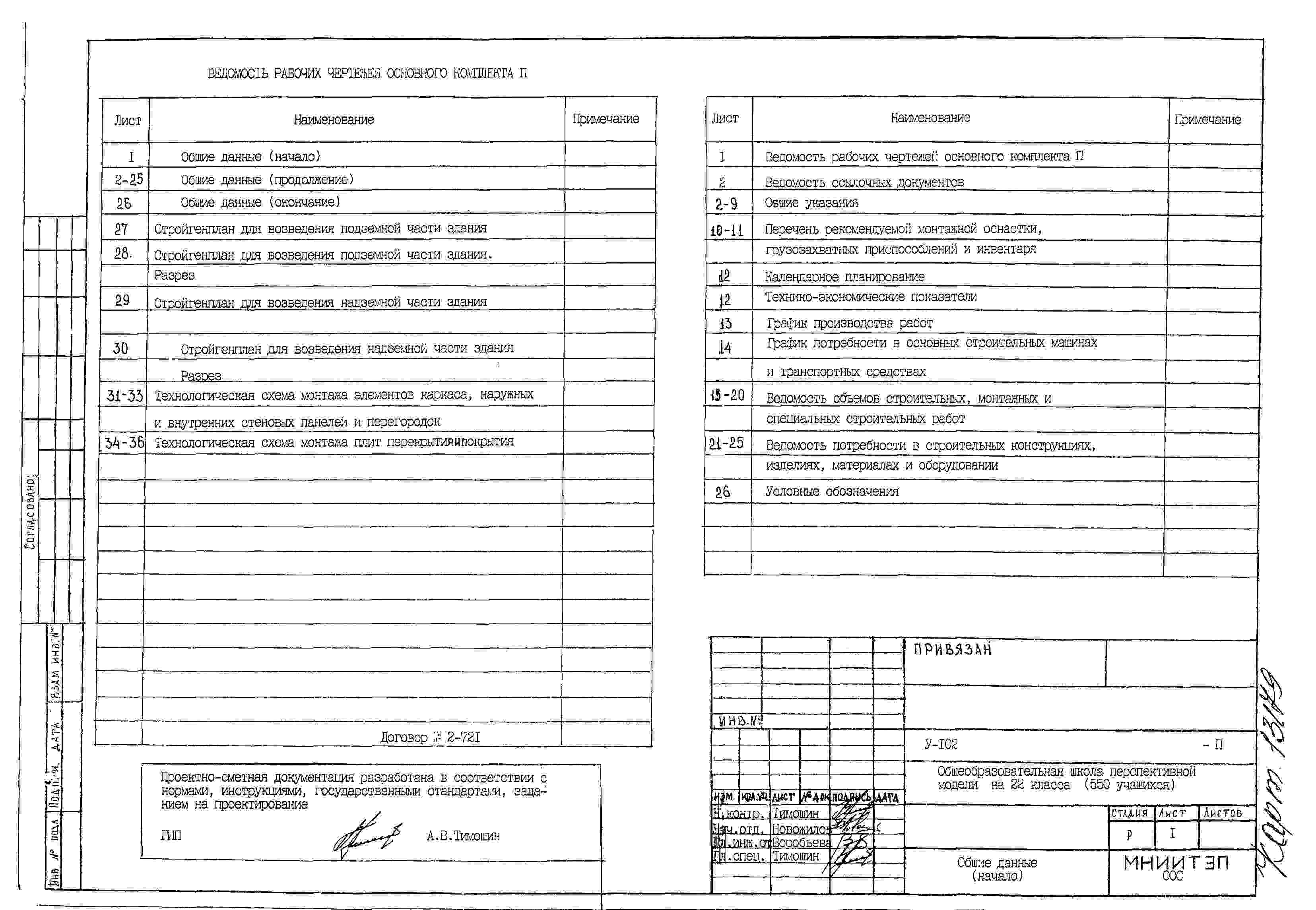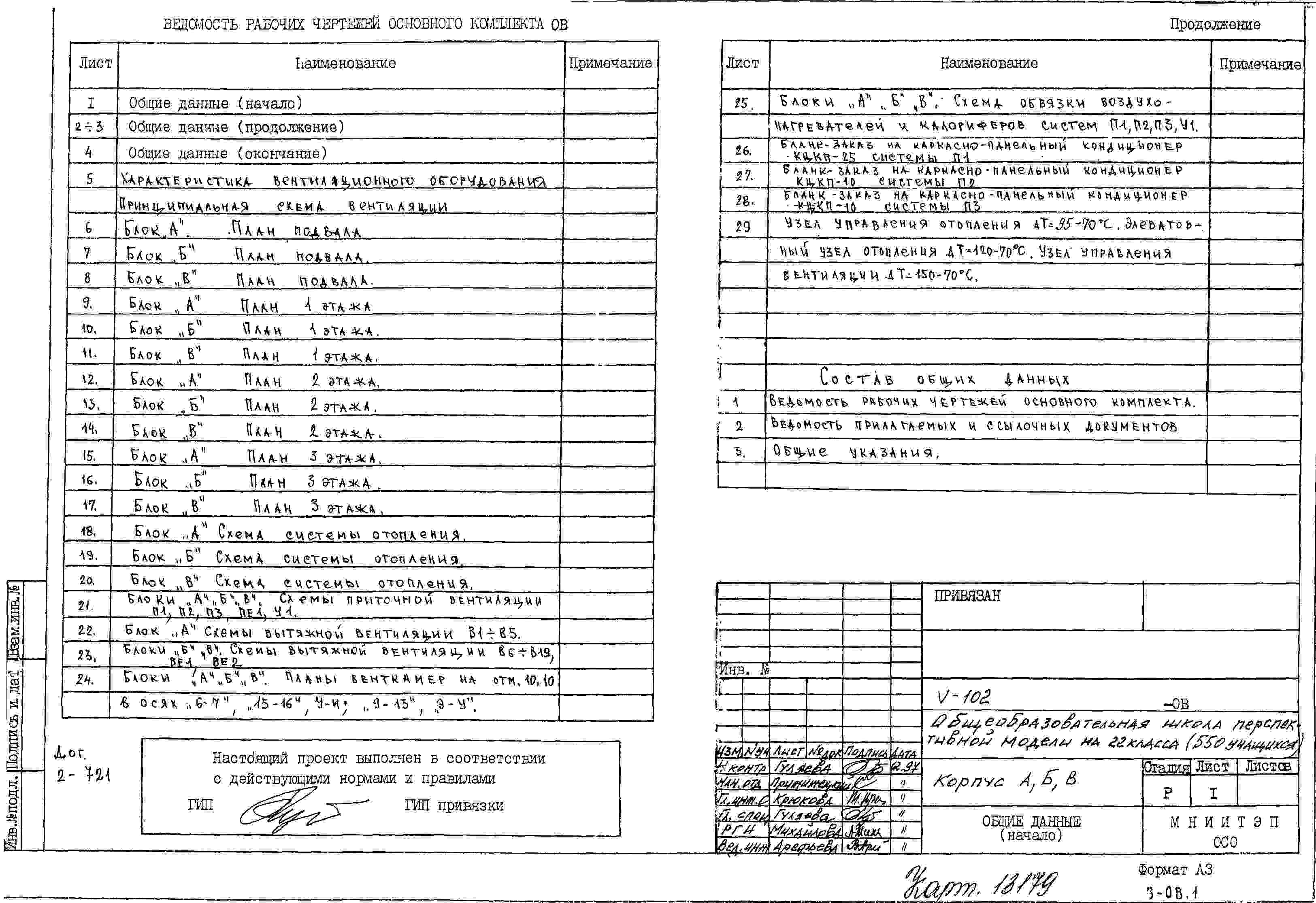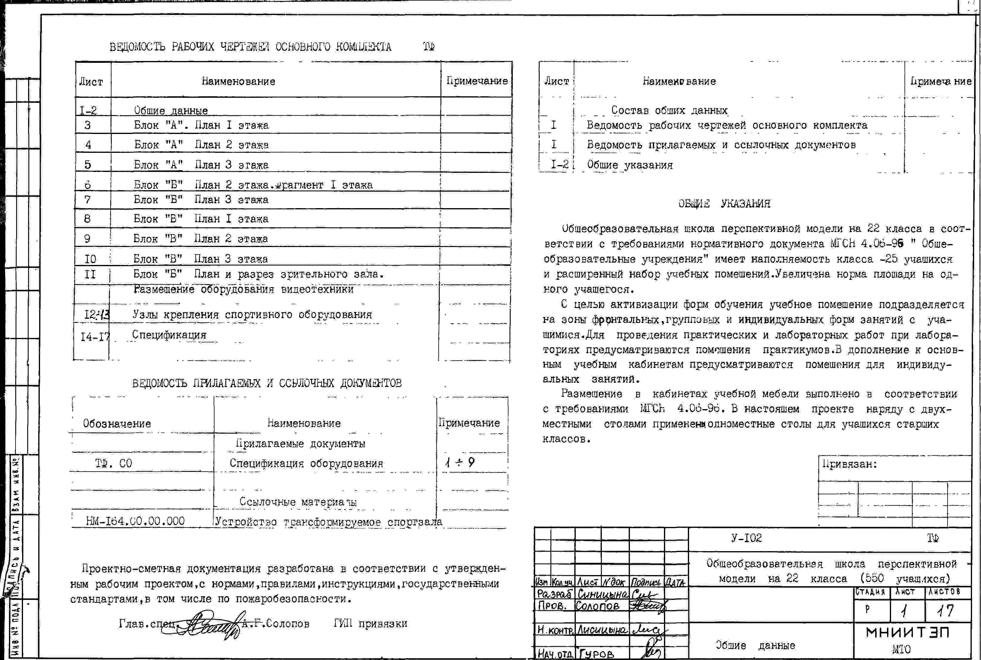 Типовой проект V-102 Общеобразовательная школа на 22 класса (550 учащихся).