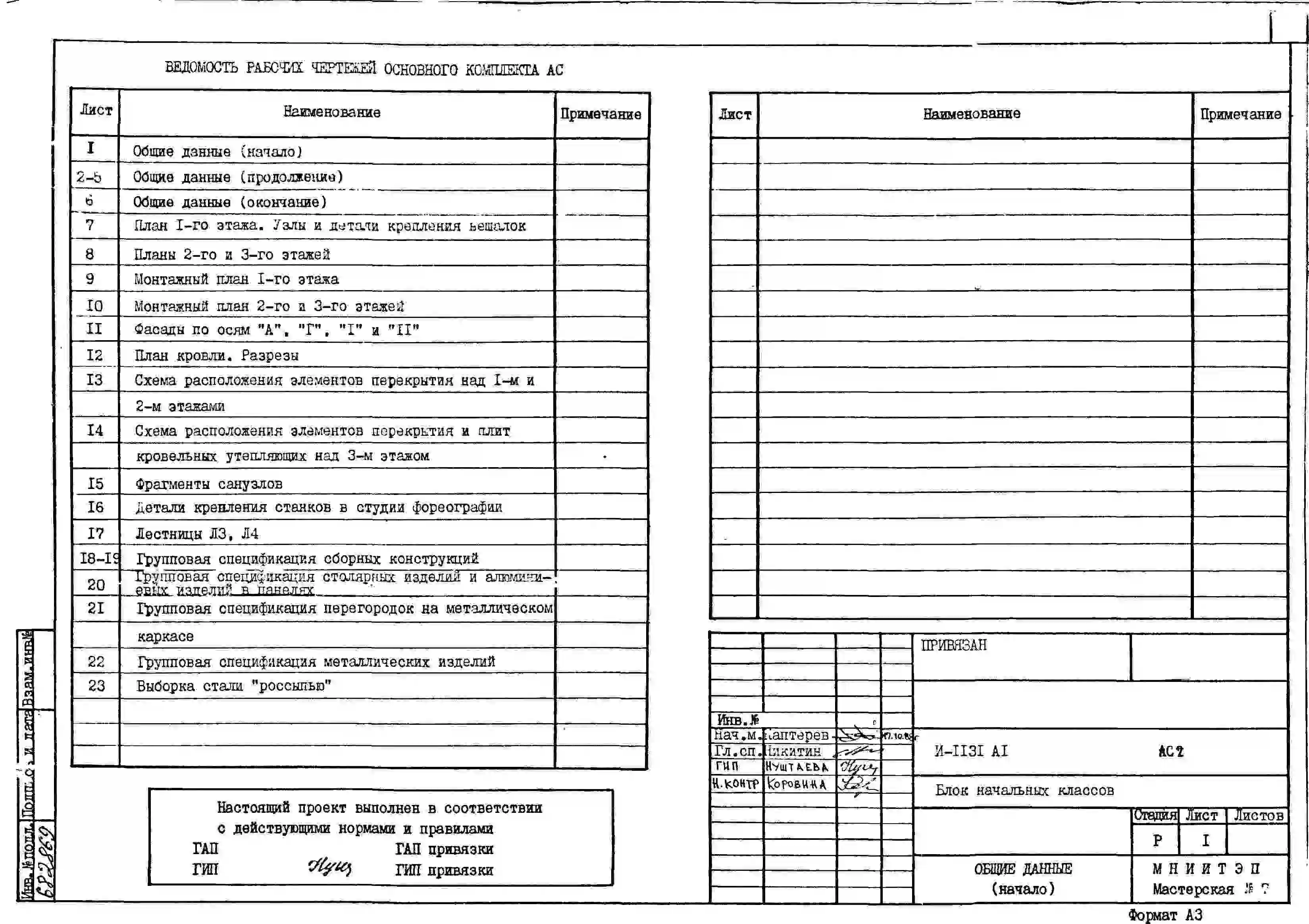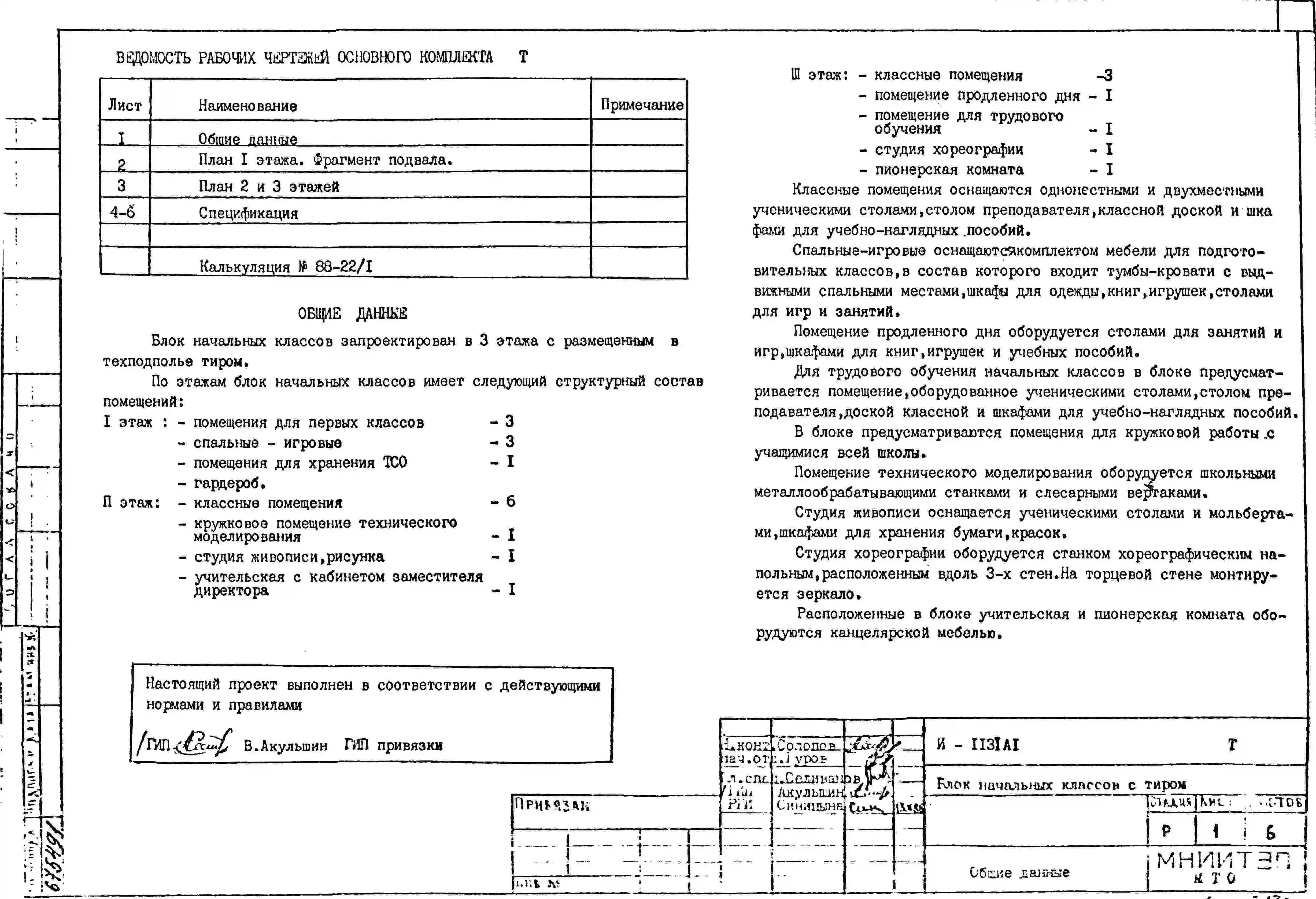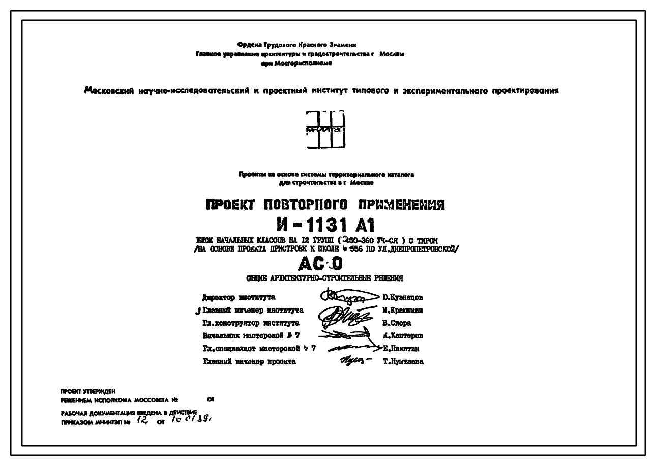 Типовой проект И-1131 А1 Блок начальных классов на 12 групп (450-360 учащихся) для пристройке к школам с тиром для строительства в г.Москве