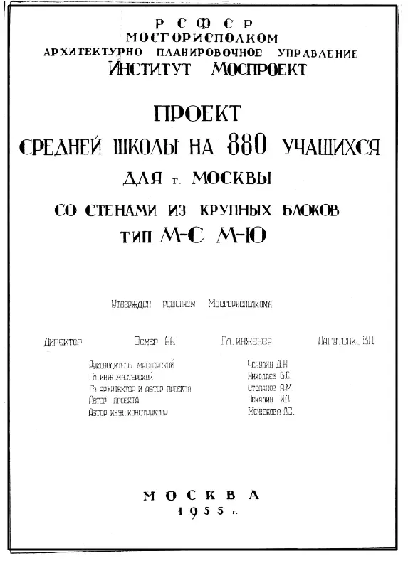 Типовой проект МЮ на 880 учащихся со стенами из крупных блоков