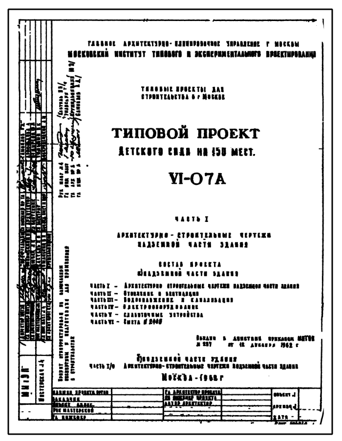 Типовой проект VI-07А Детские ясли-сад на 150 мест (проект переведен в формат DWG)