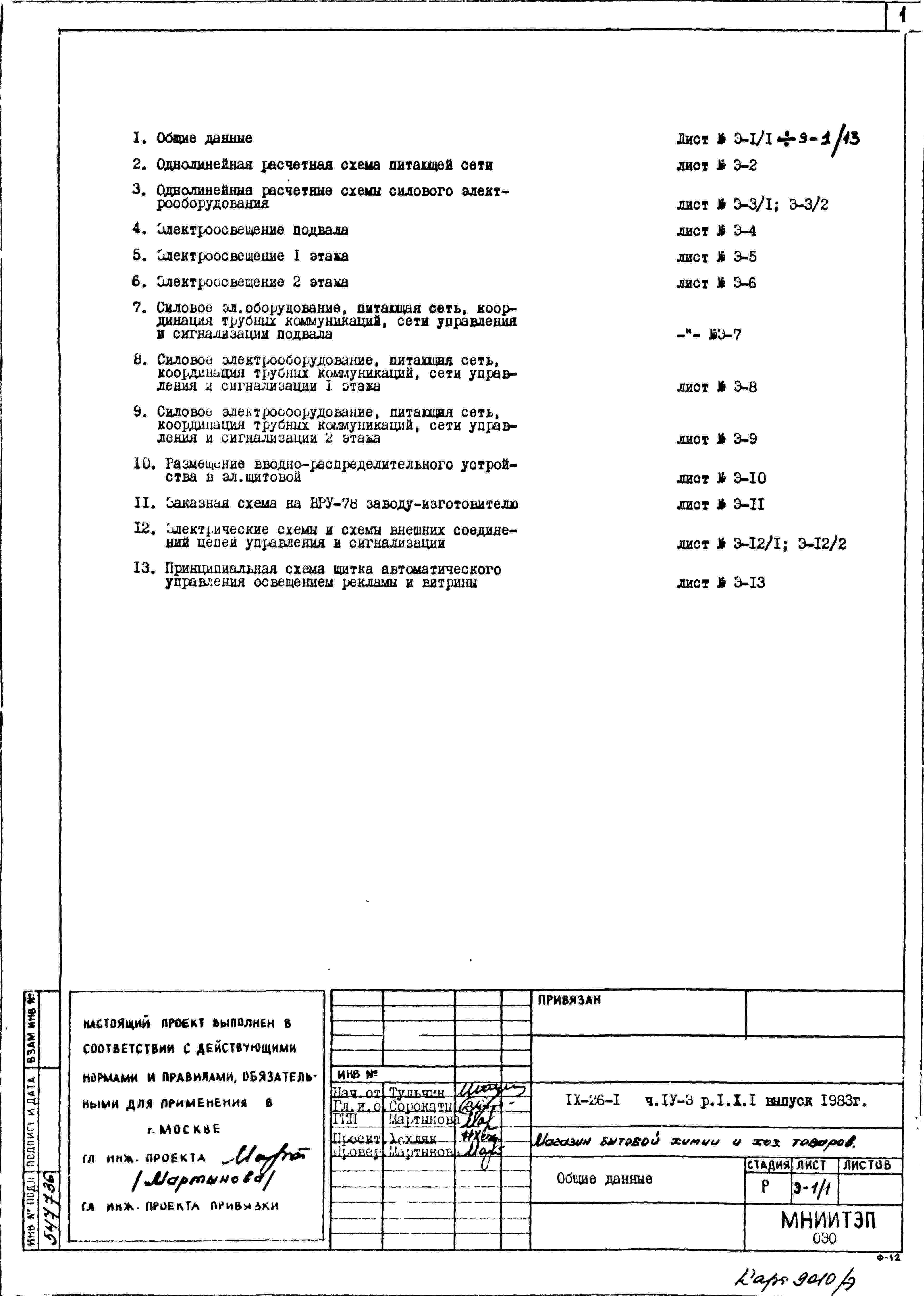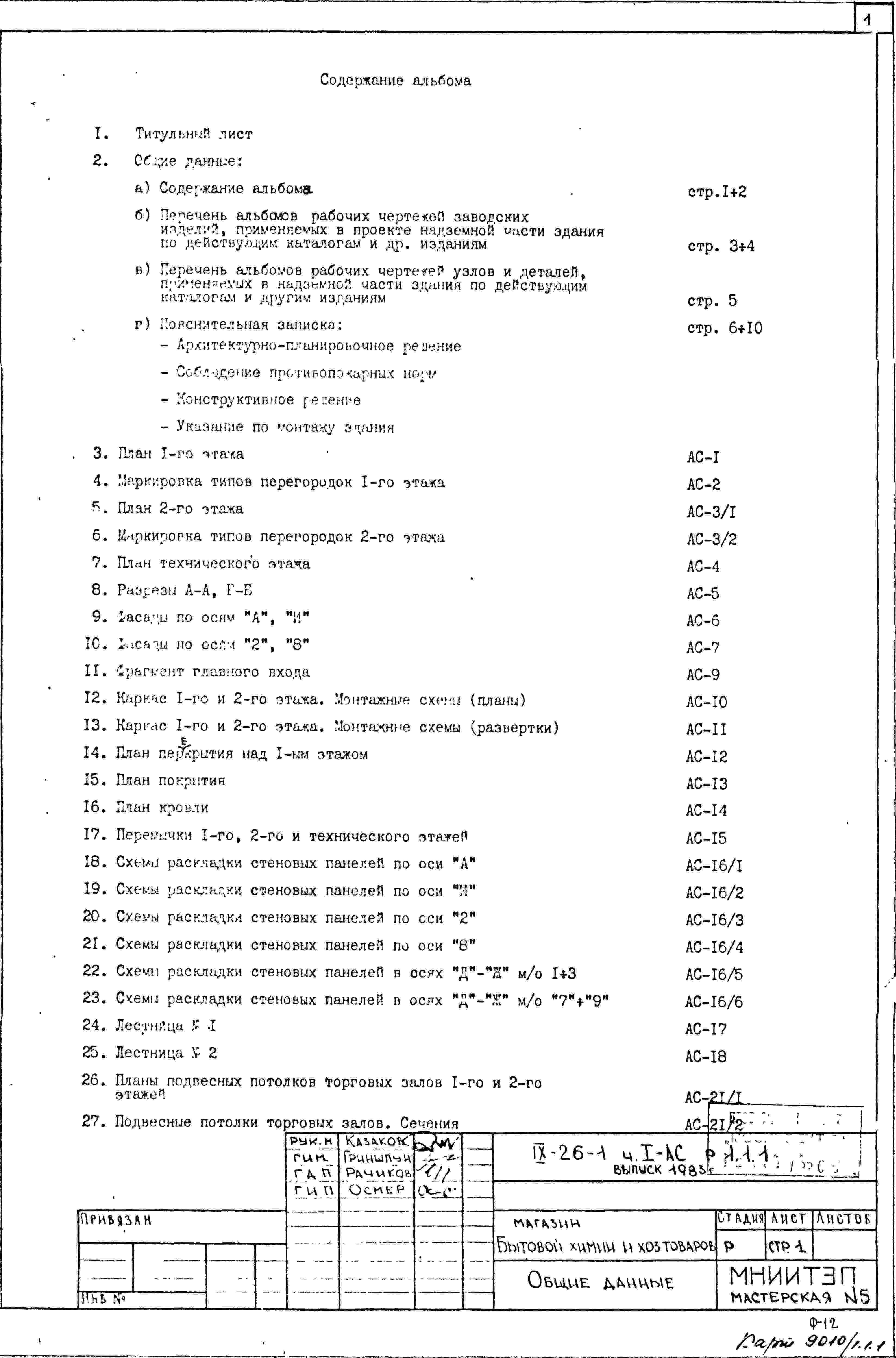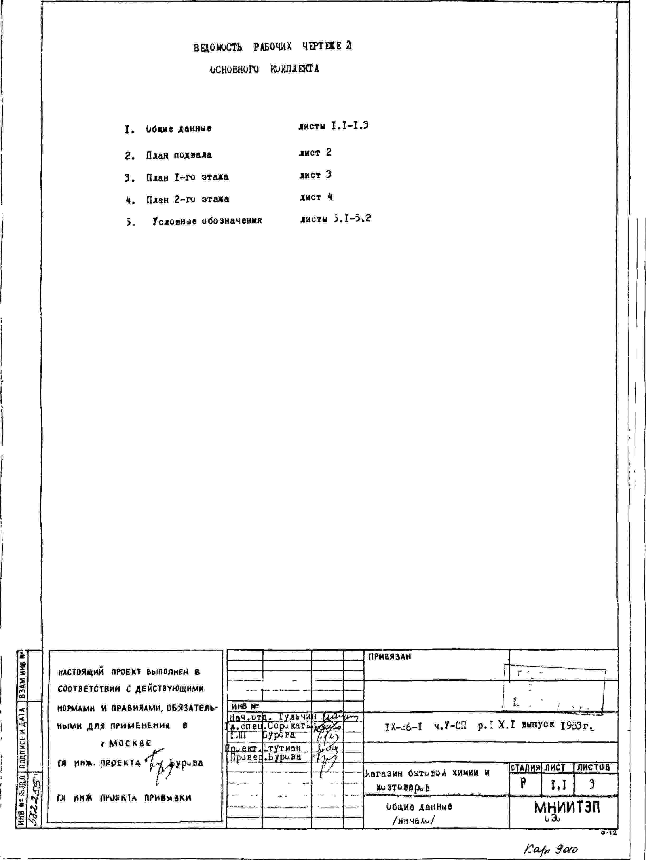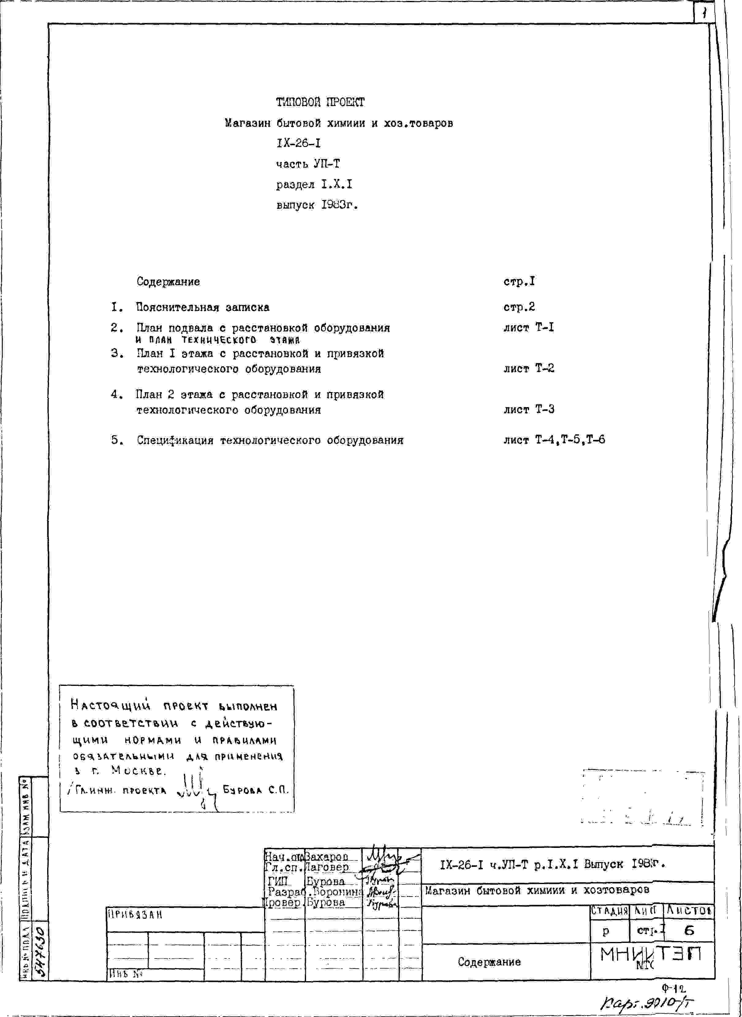 Типовой проект IX-26-1 Магазин бытовой химии и хоз.товаров торговой площадью 1200 м2. для строительства в г. Москве. Варианты проекта 1979 и 1983 годов разработки.