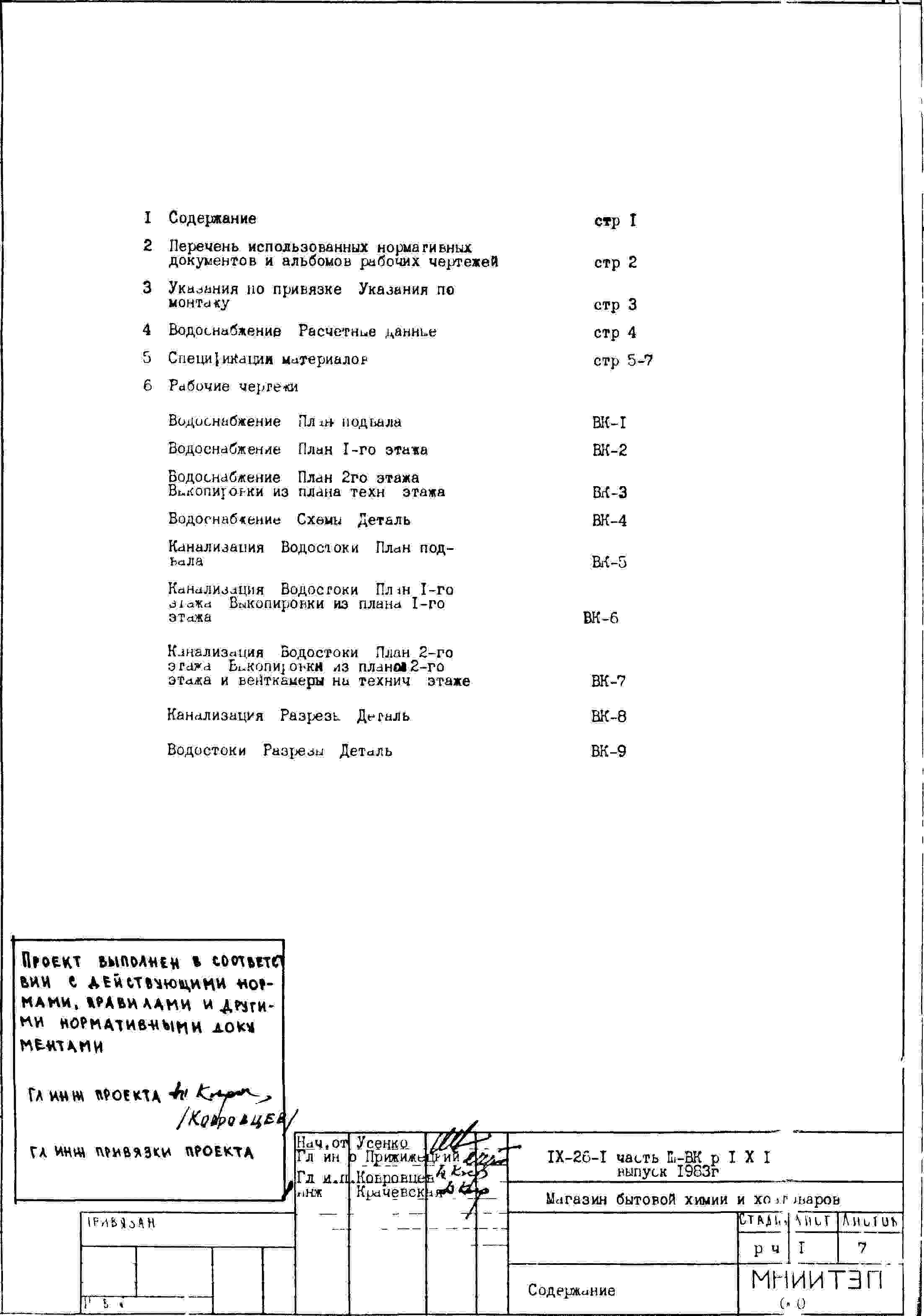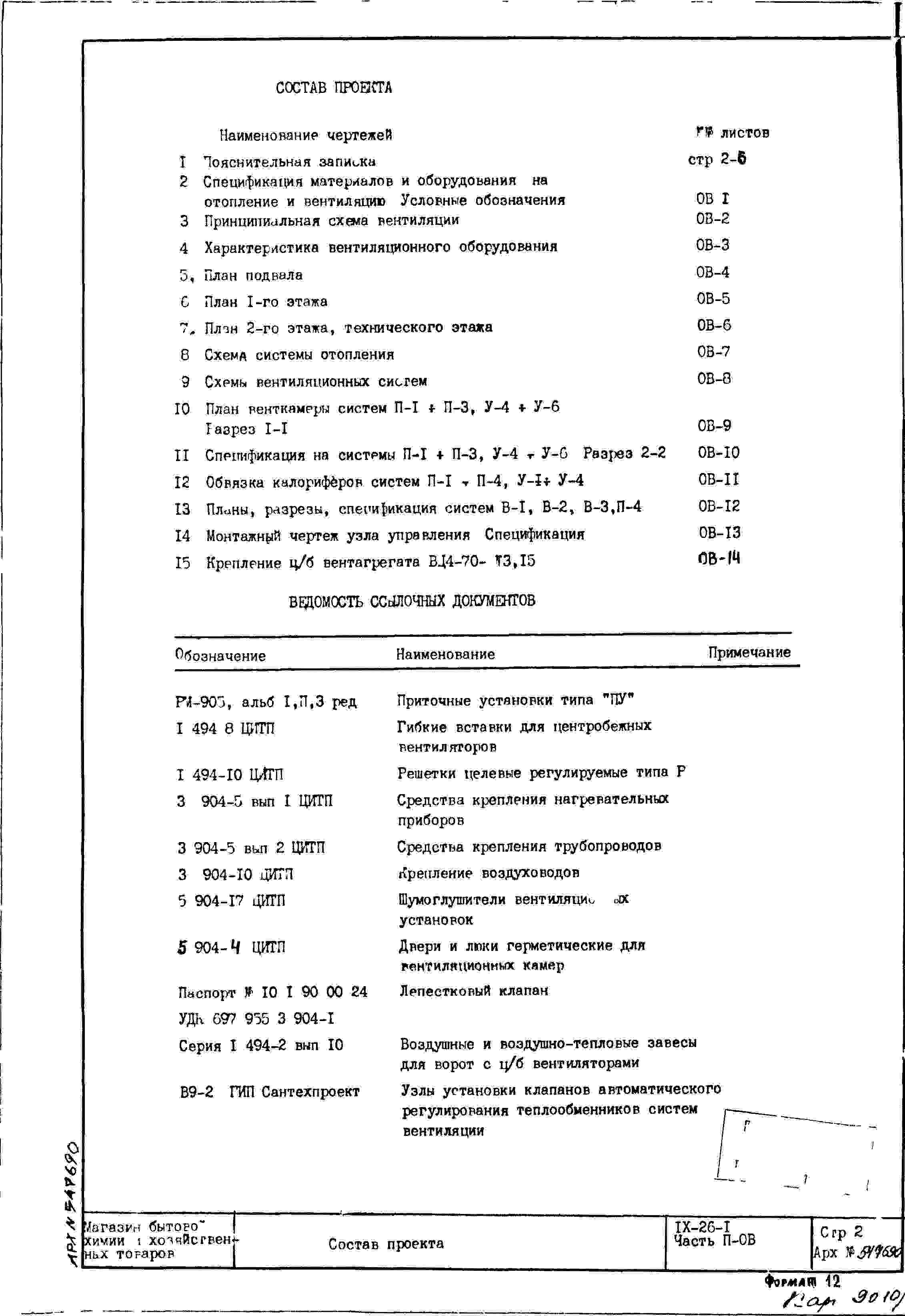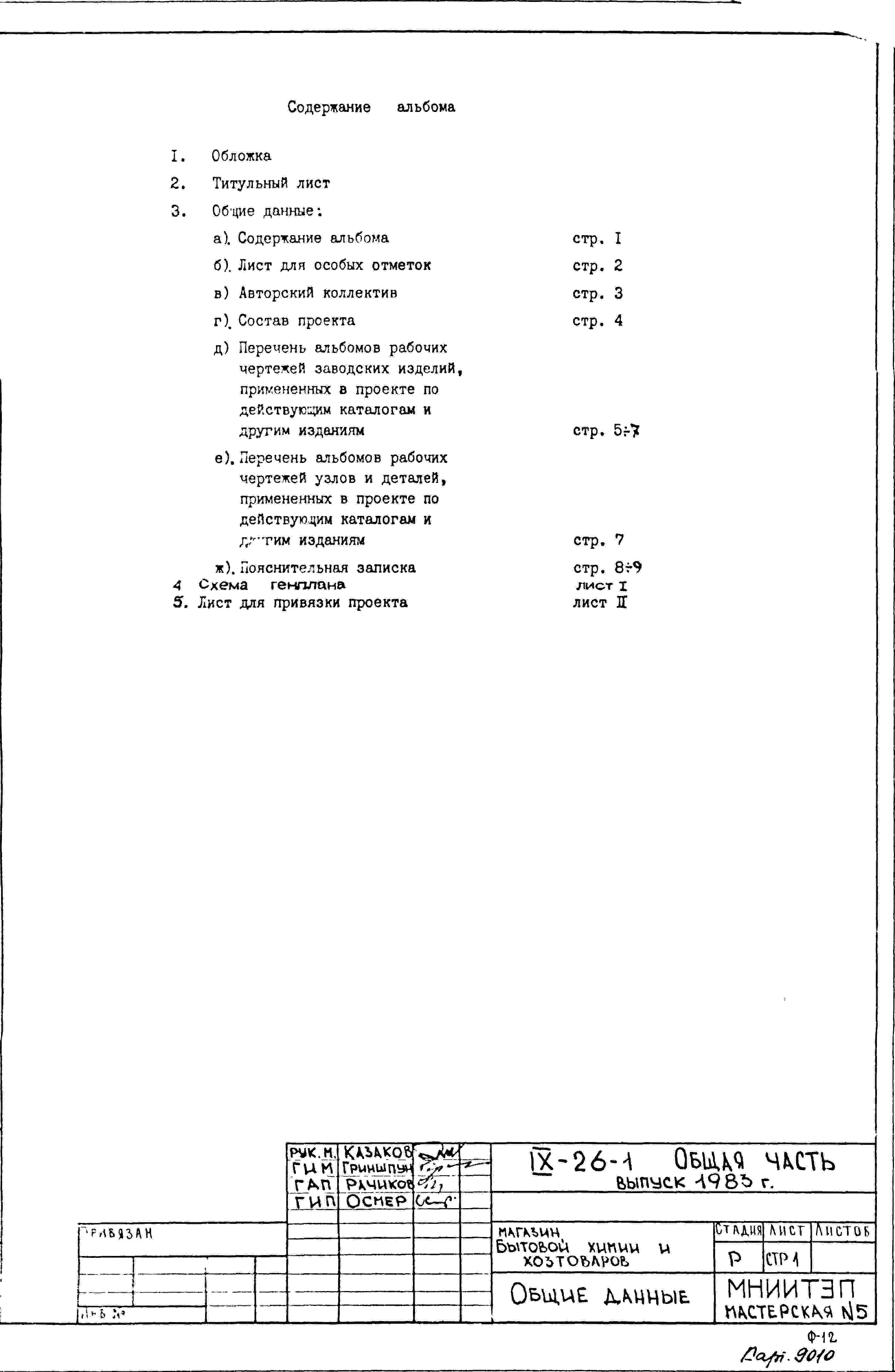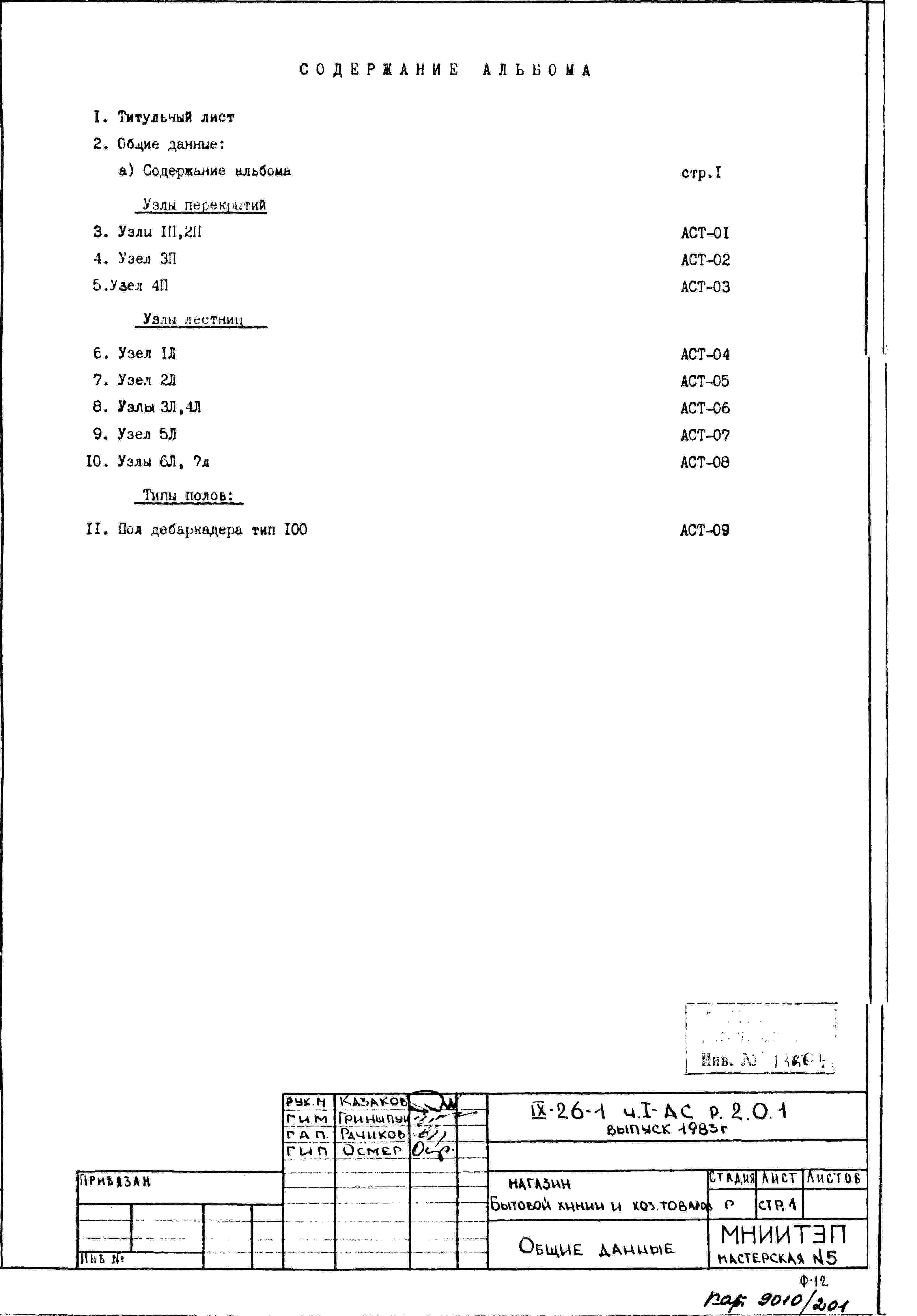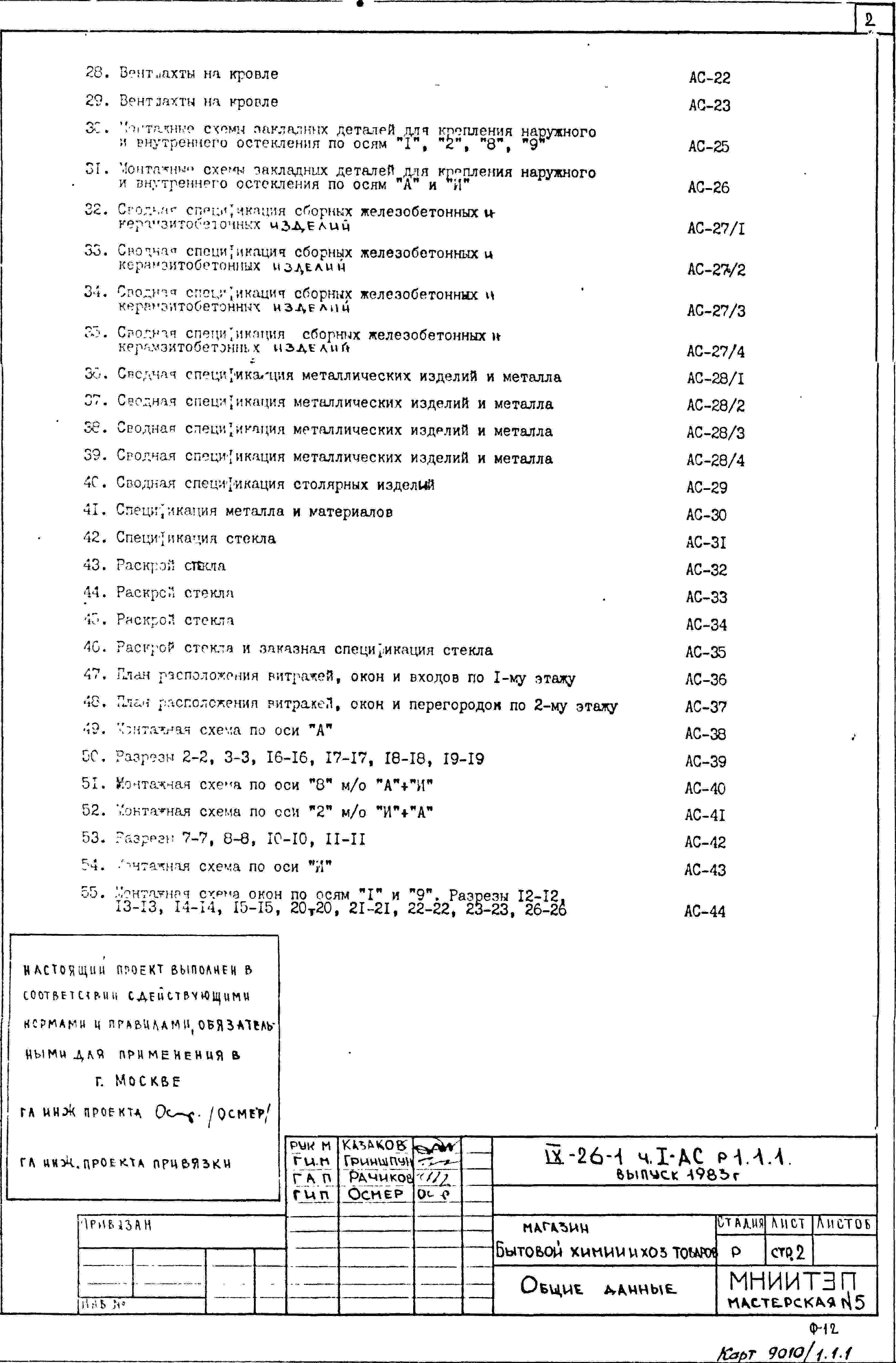 Типовой проект IX-26-1 Магазин бытовой химии и хоз.товаров торговой площадью 1200 м2. для строительства в г. Москве. Варианты проекта 1979 и 1983 годов разработки.