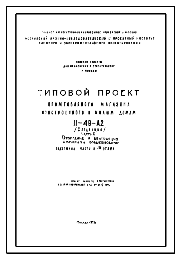 Типовой проект II-49-А2 Промтоварный магазин пристроенного к жилым домам II-49
