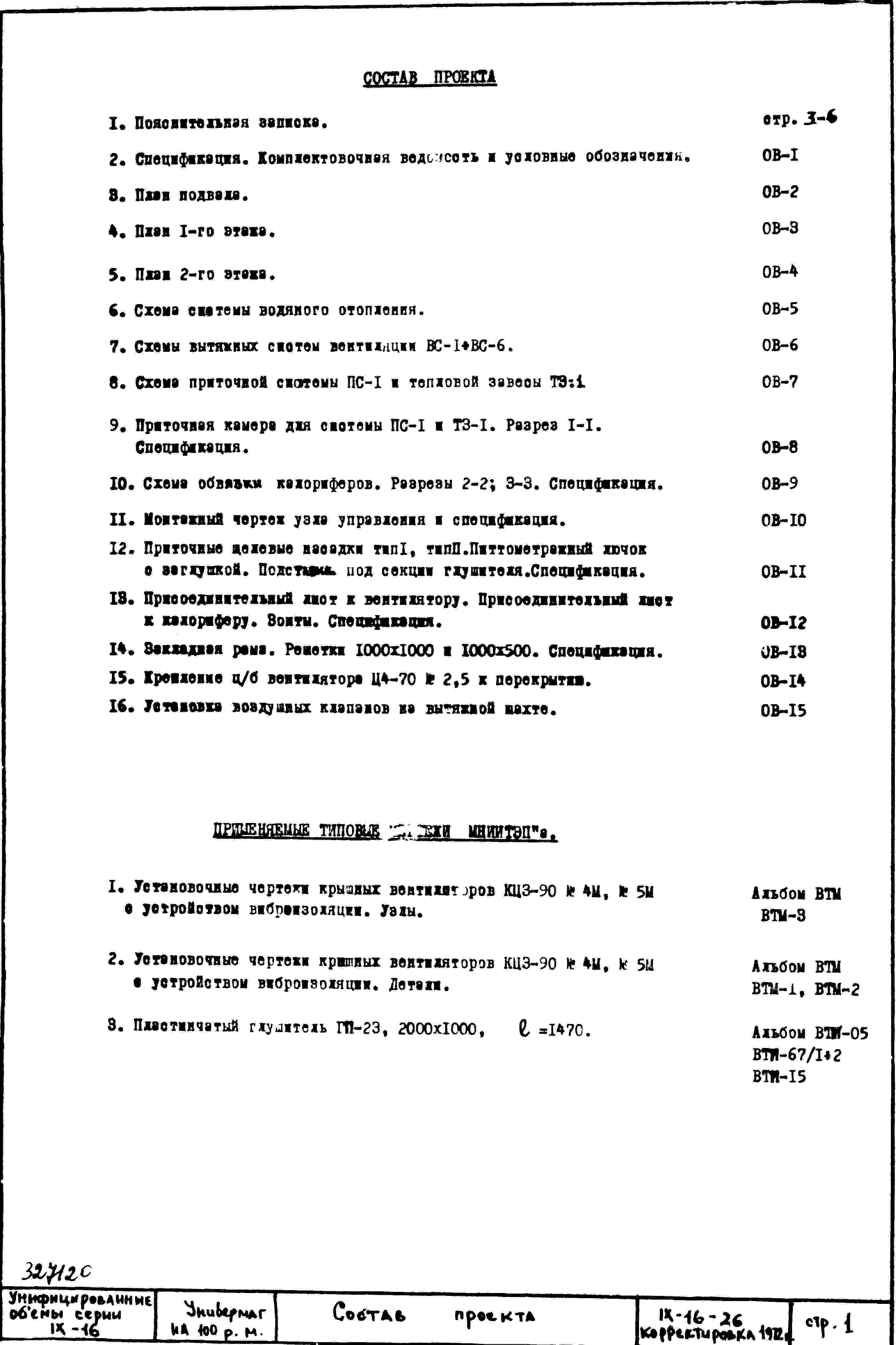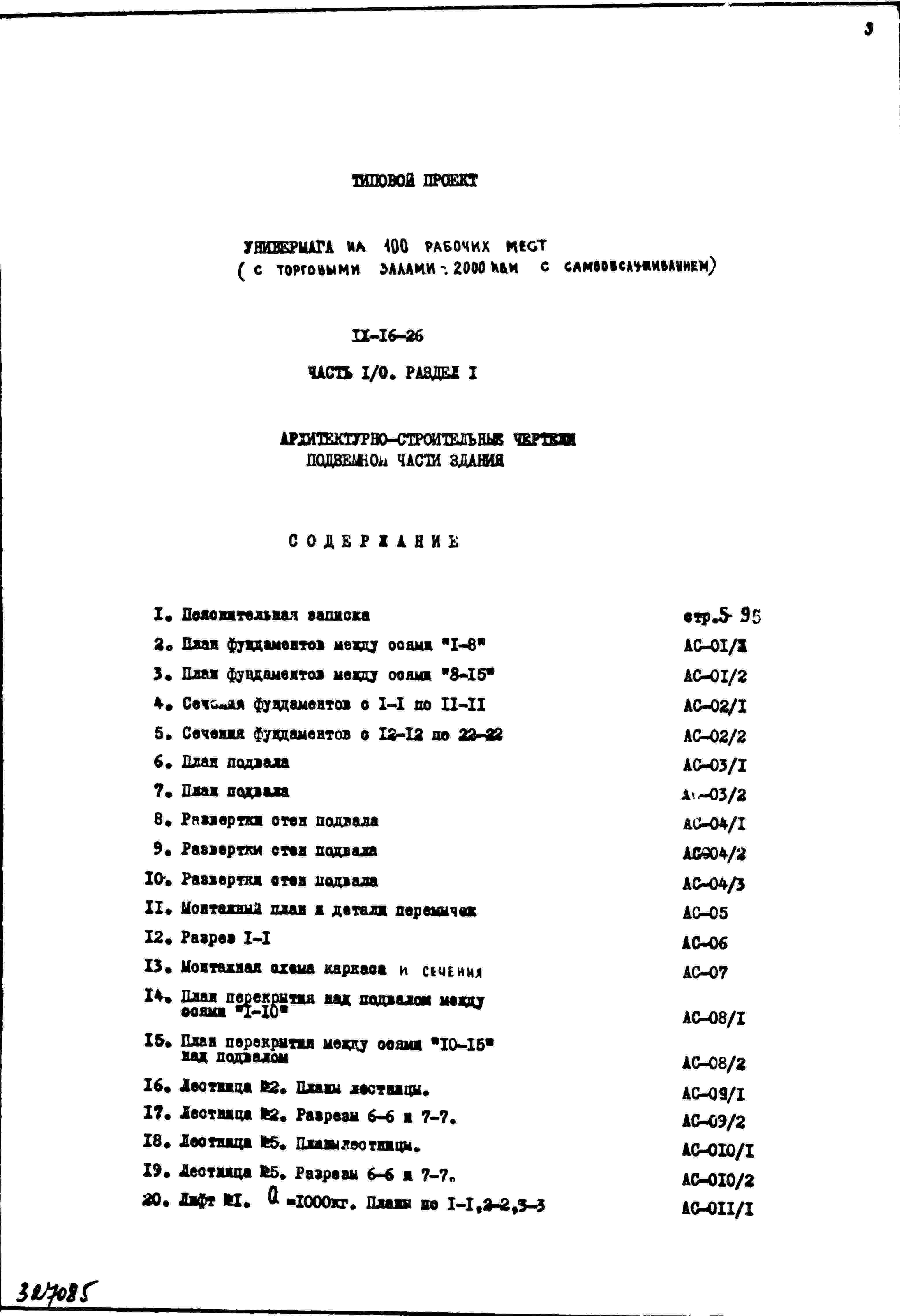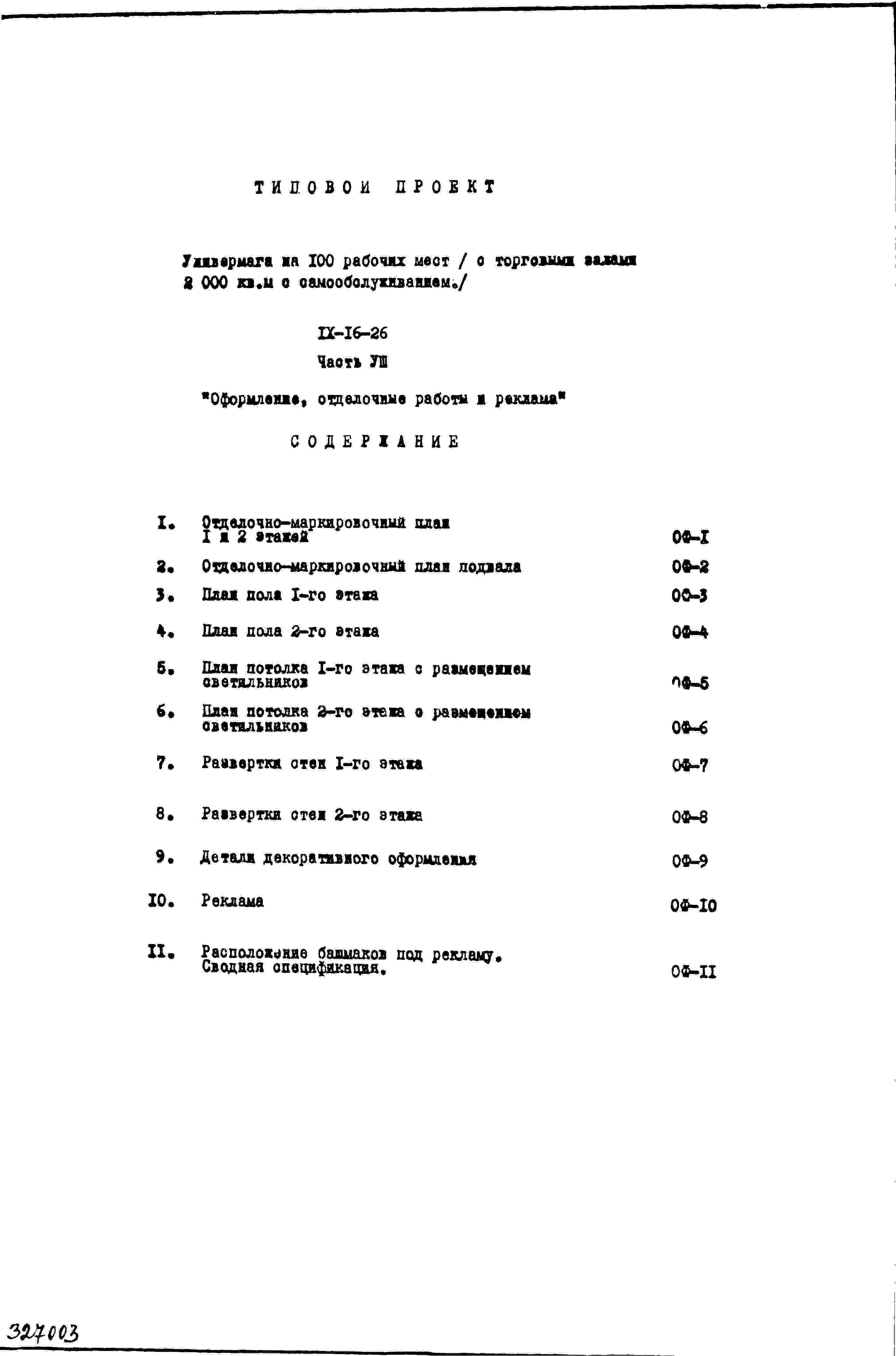 Типовой проект IX-16-26 Универмаг на 100 рабочих мест продовольственного магазина на 45 условных рабочих мест и промтоварного магазина на 50 рабочих мест для строительства в г. Москве