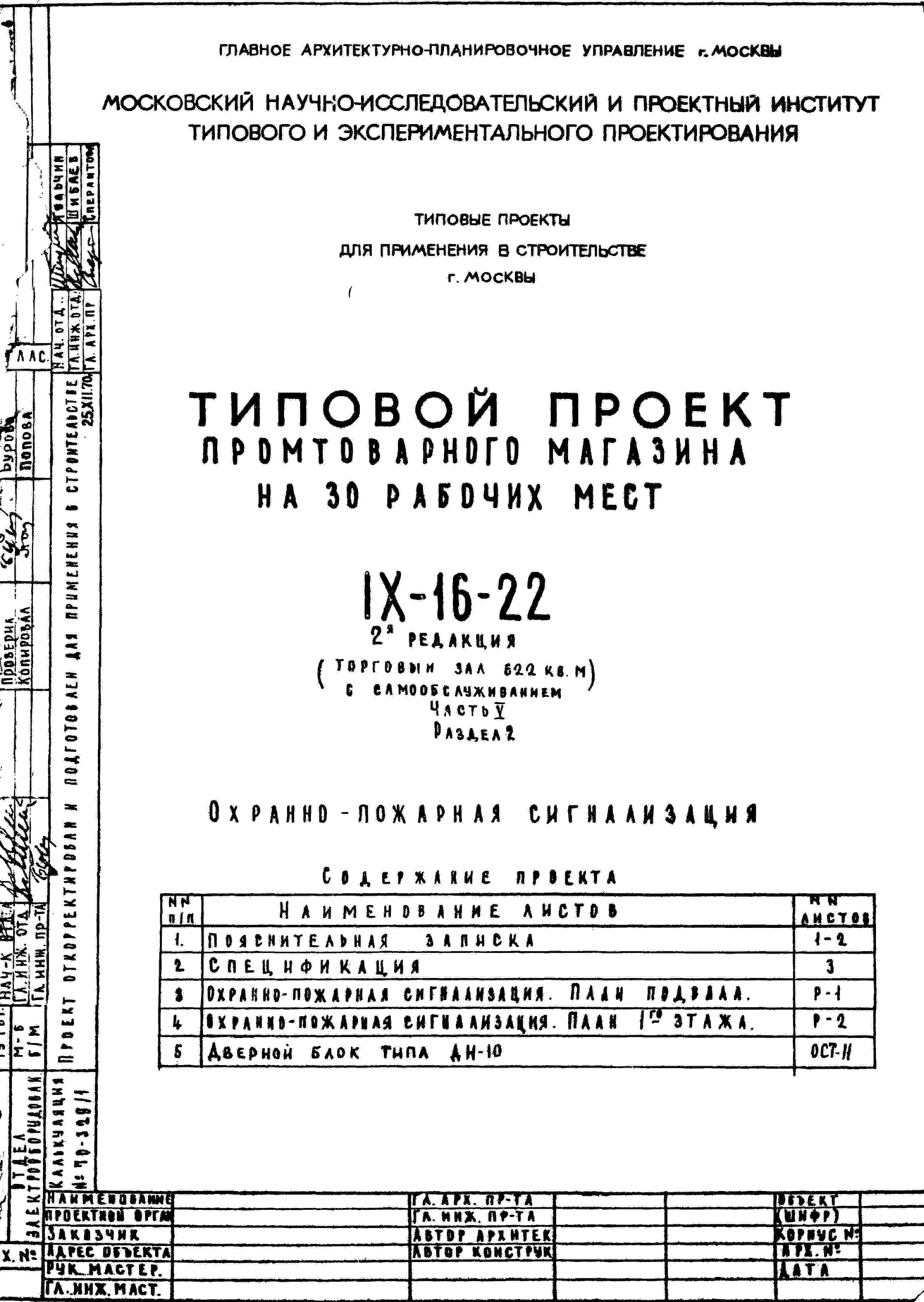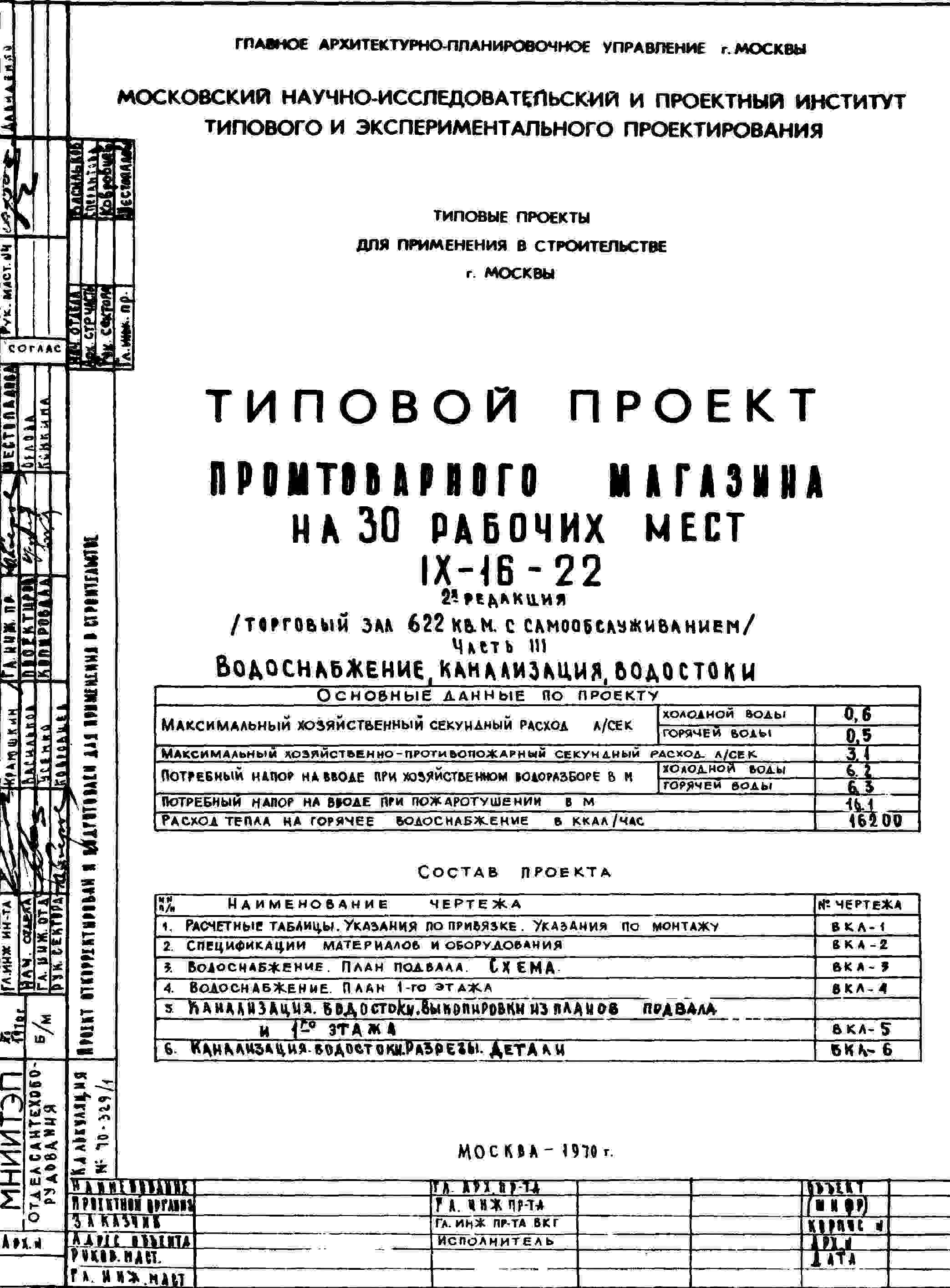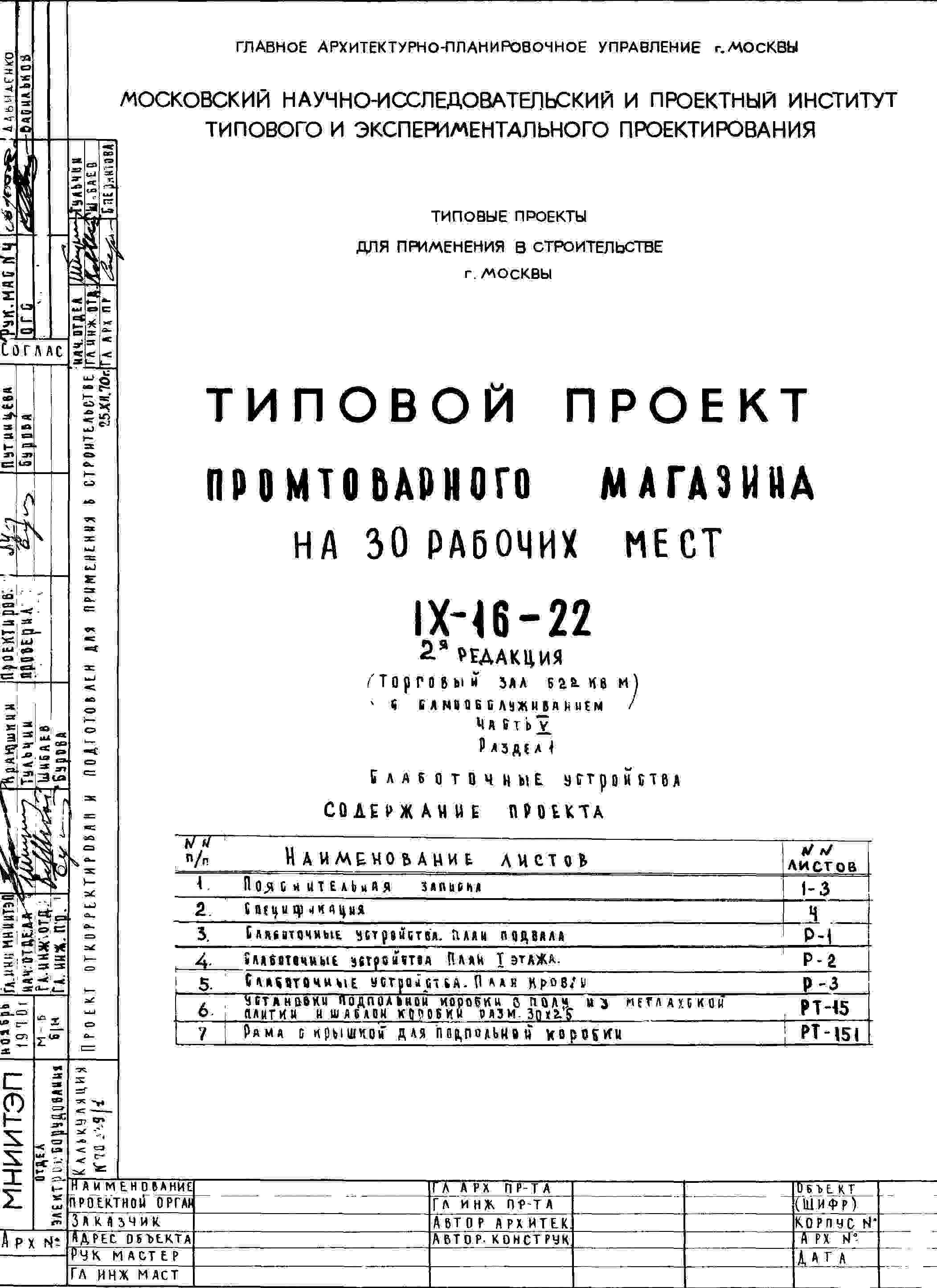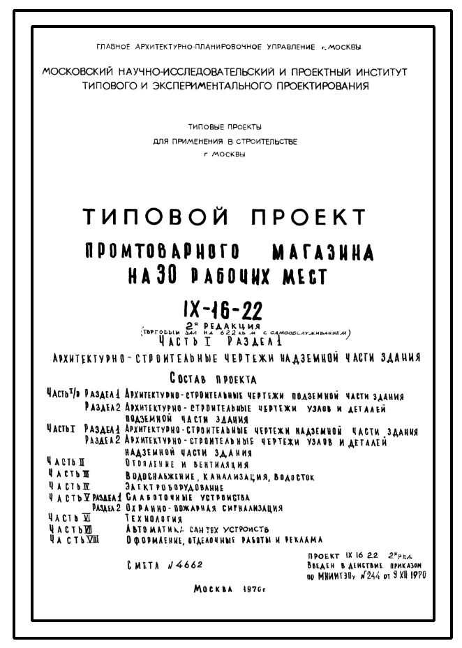 Типовой проект IX-16-22 Промтоварный магазин на 30 рабочих мест для строительства в г. Москве