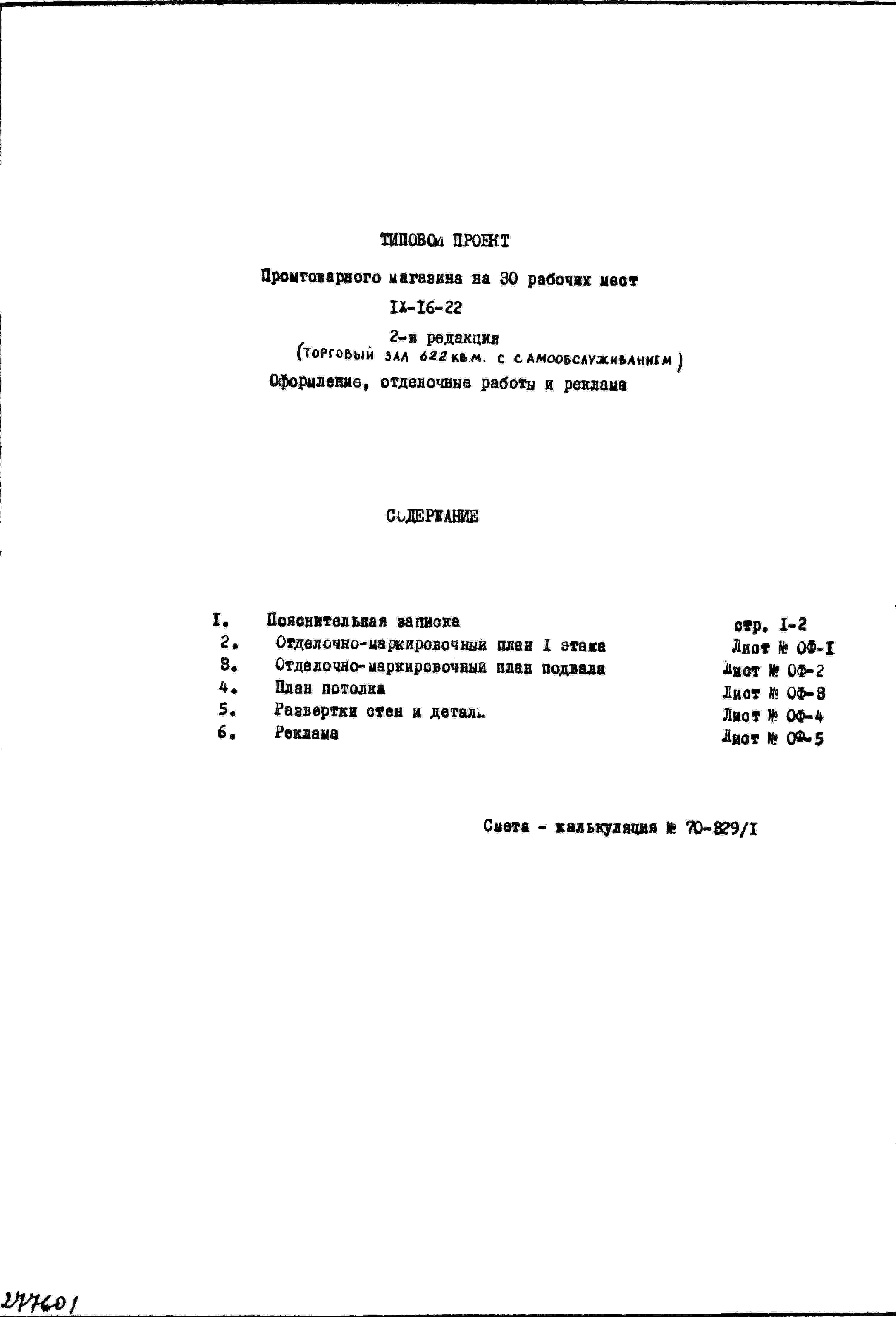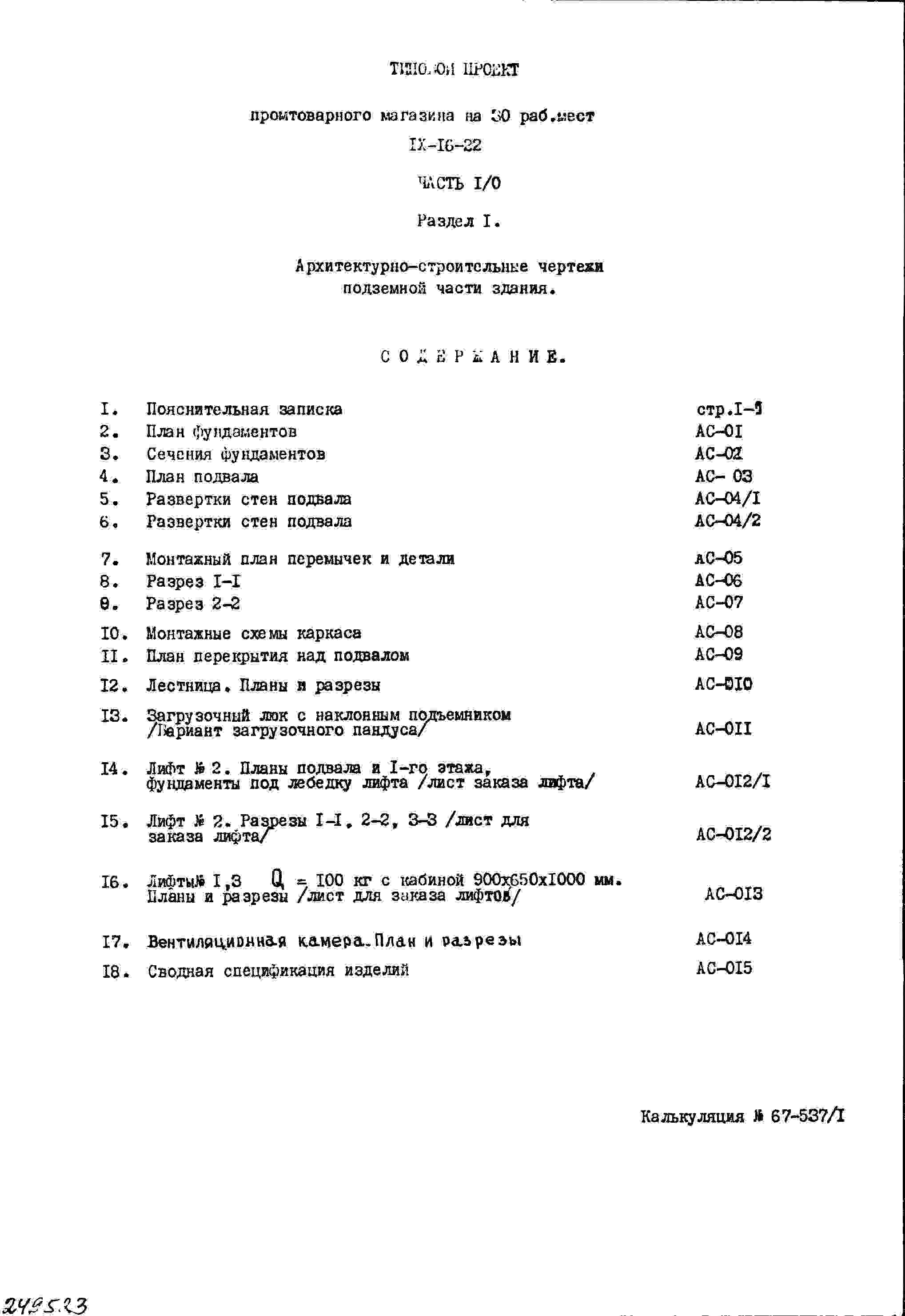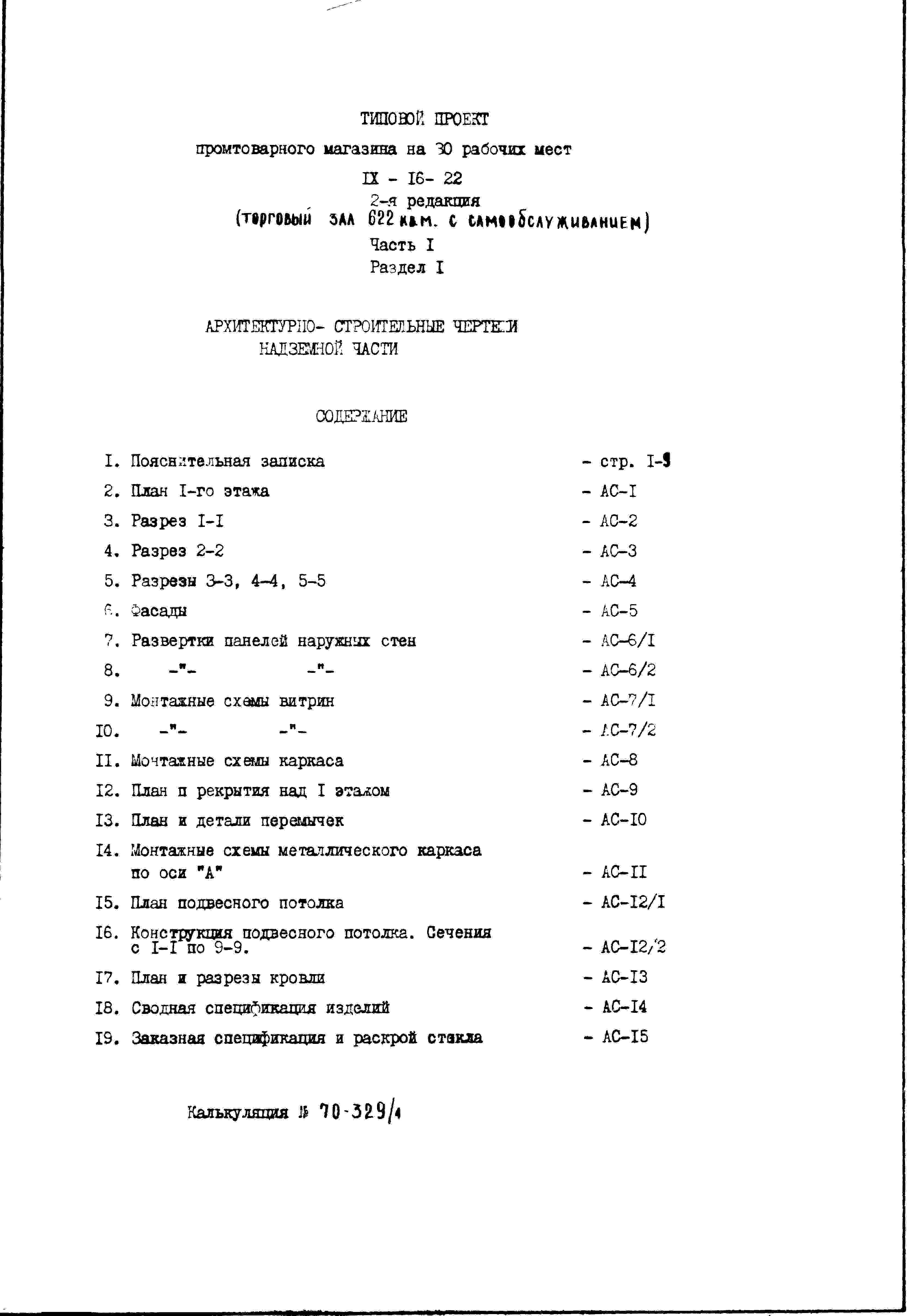 Типовой проект IX-16-22 Промтоварный магазин на 30 рабочих мест для строительства в г. Москве