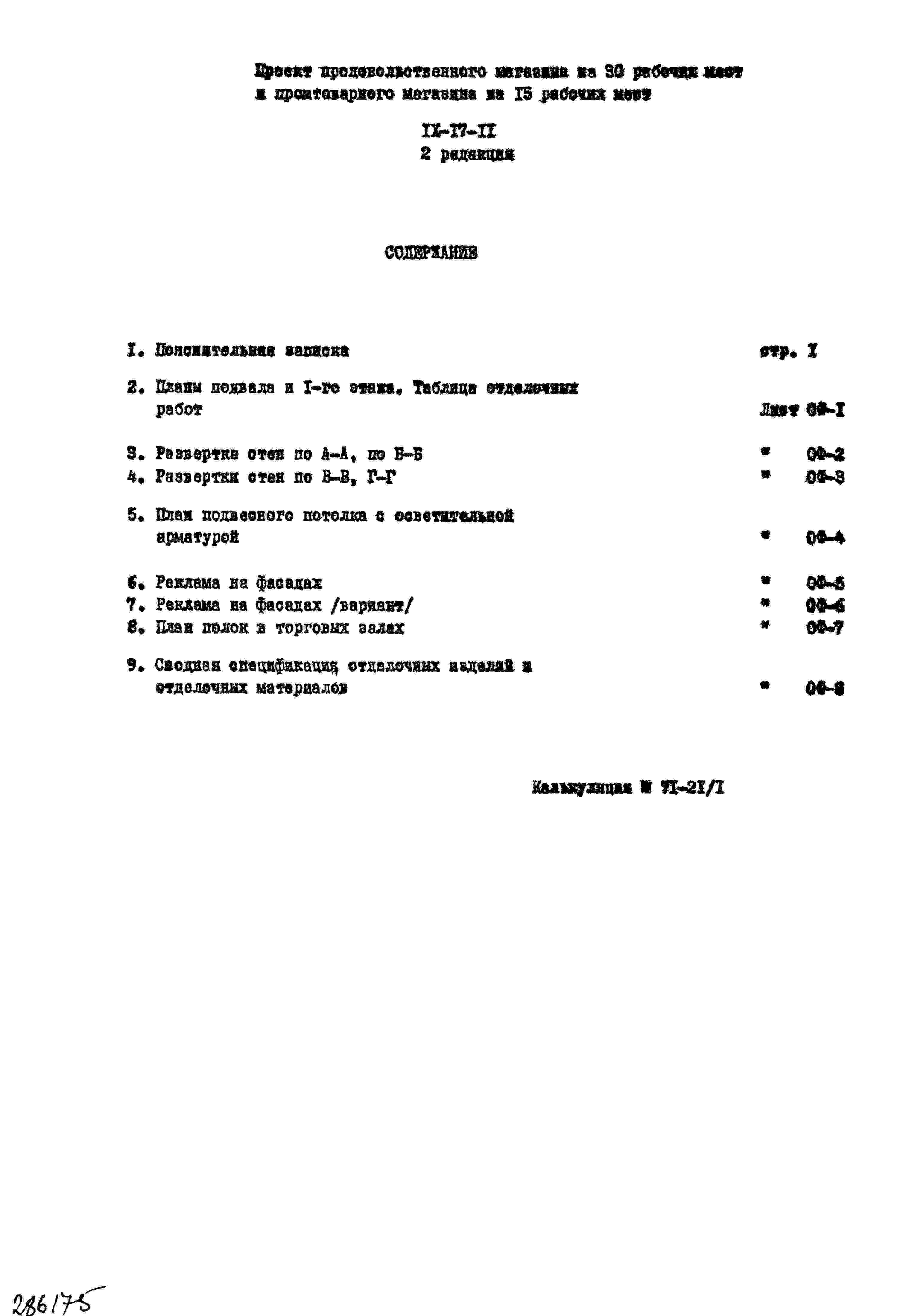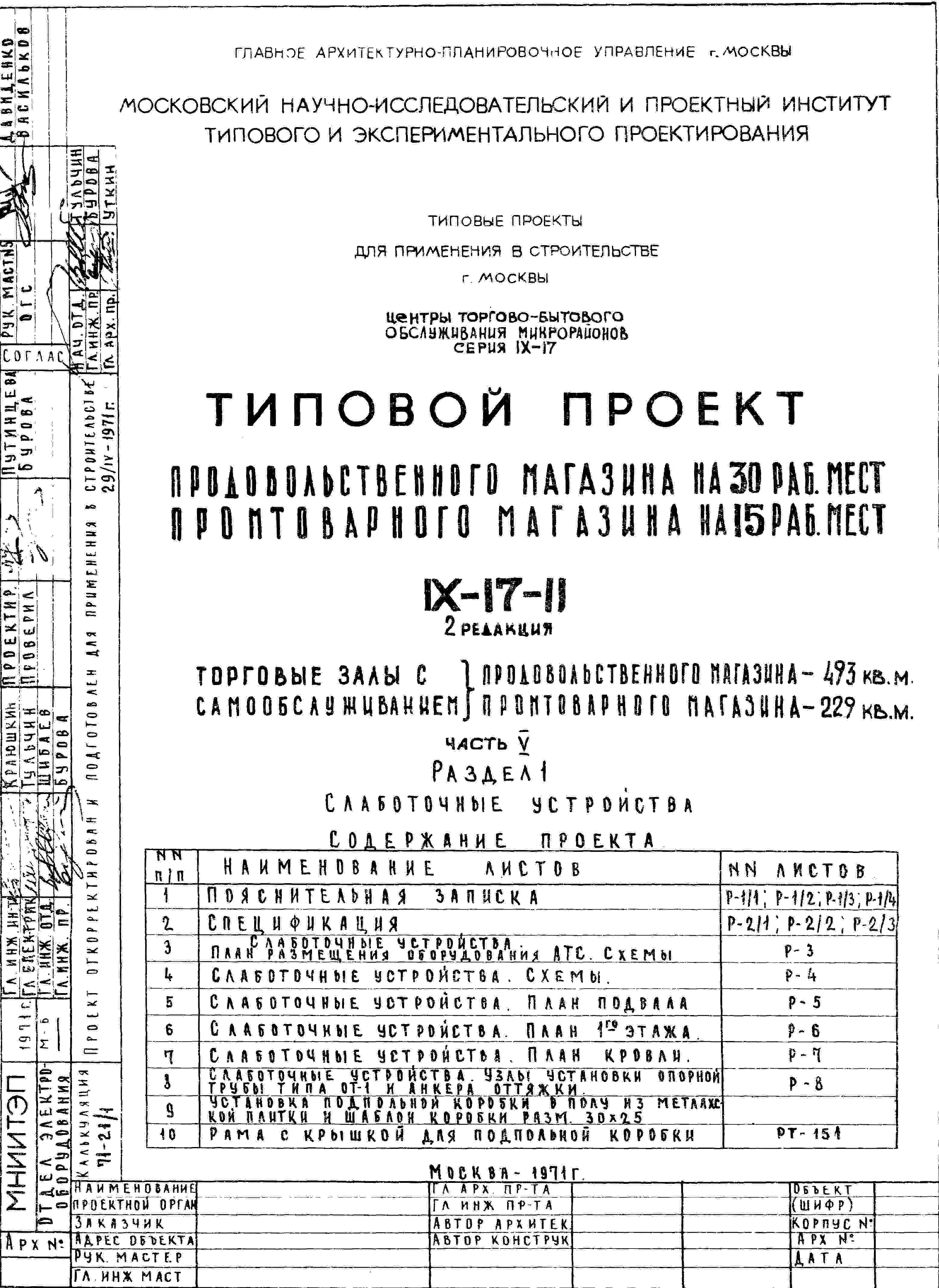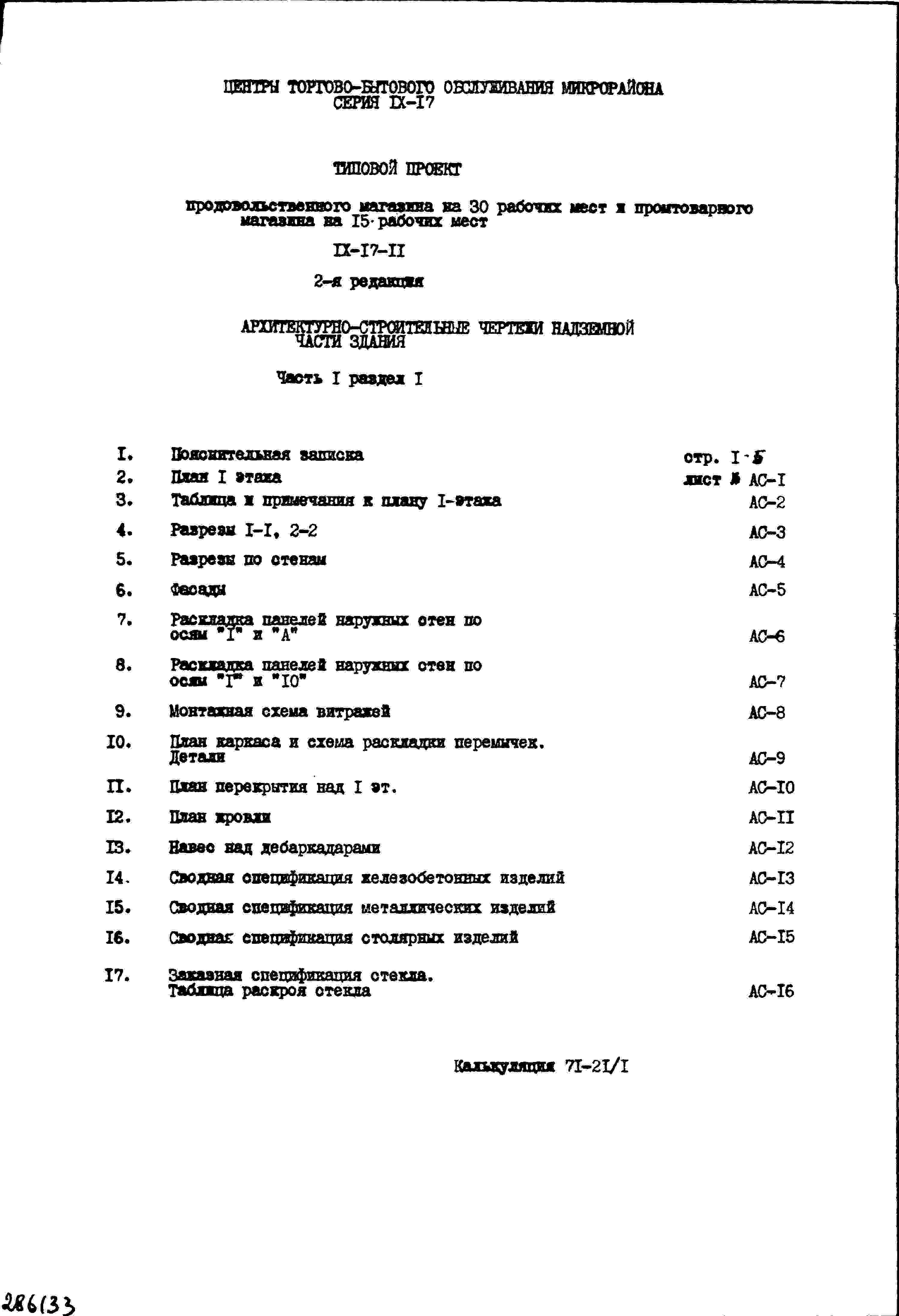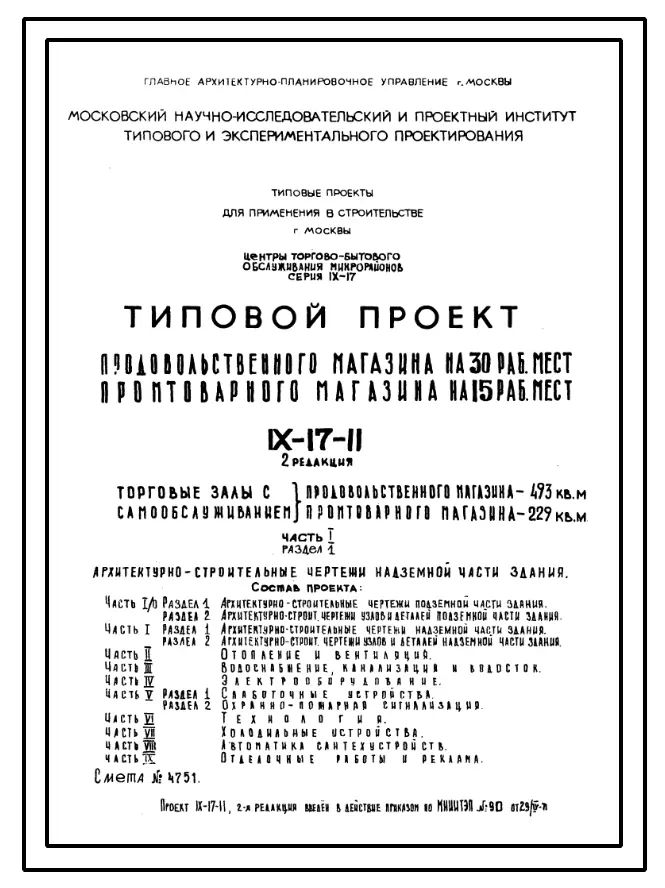 Типовой проект IX-17-11 Продовольственный магазин на 30 рабочих мест. Промтоварный магазин на 15 рабочих мест для строительства в г. Москве