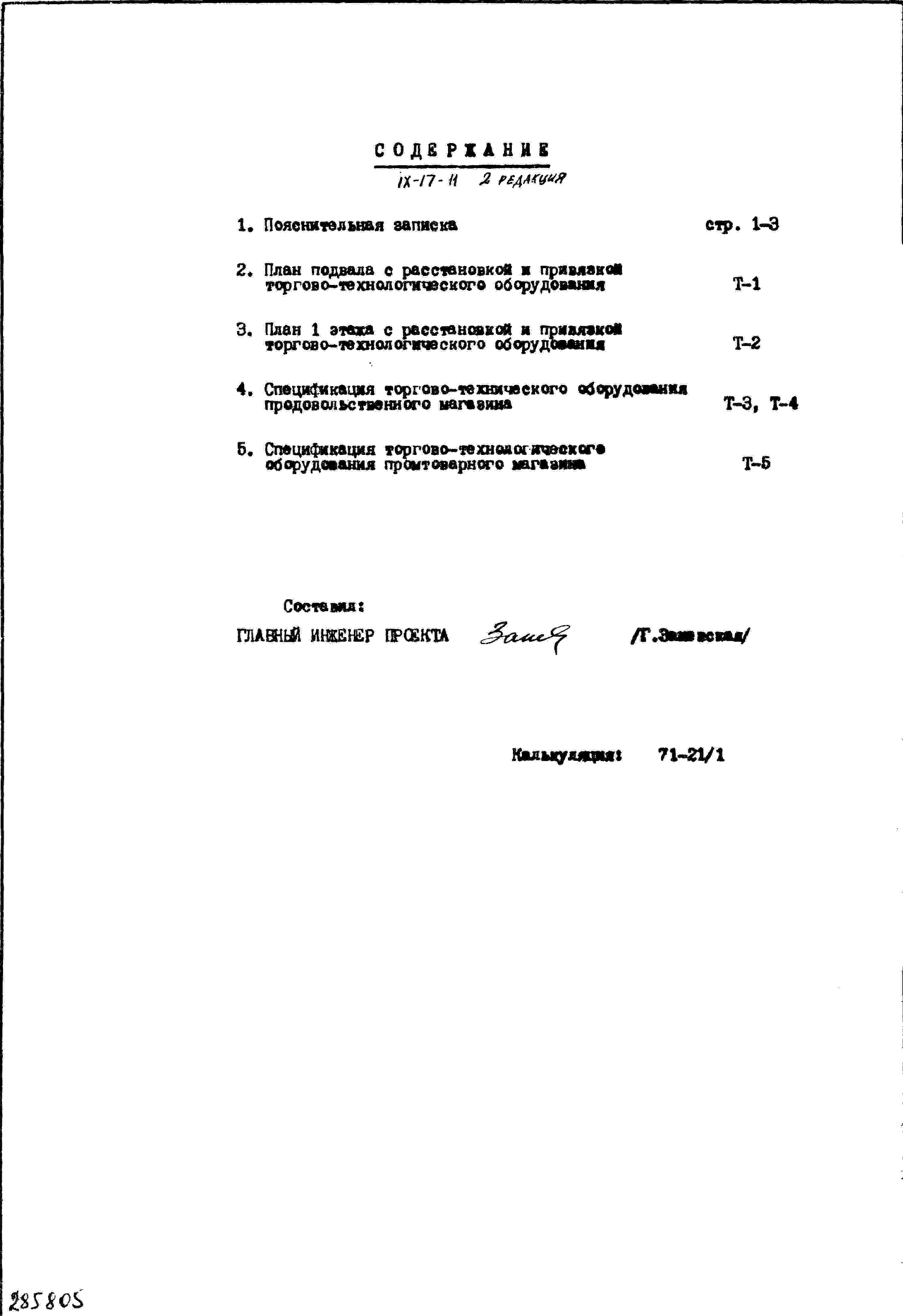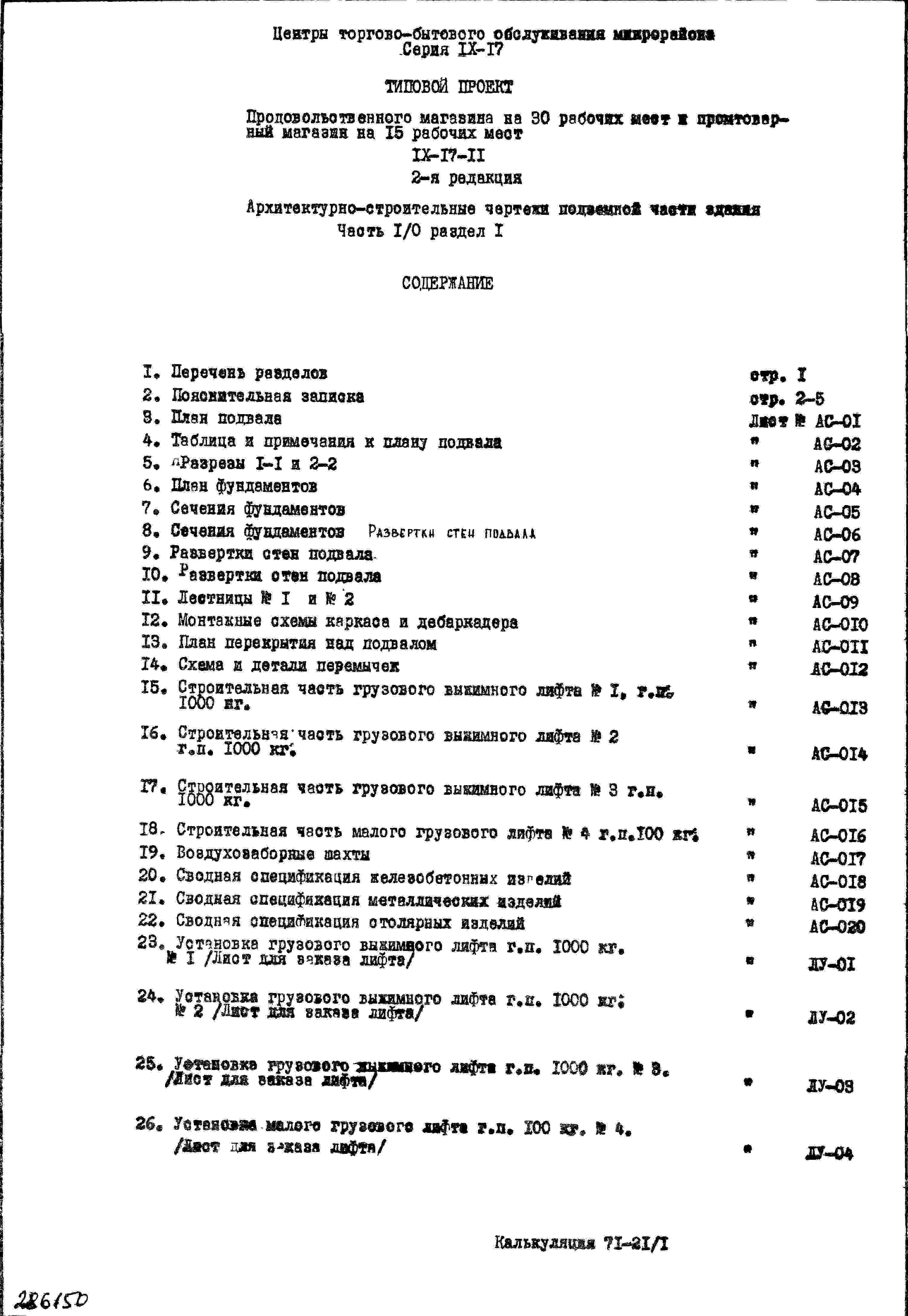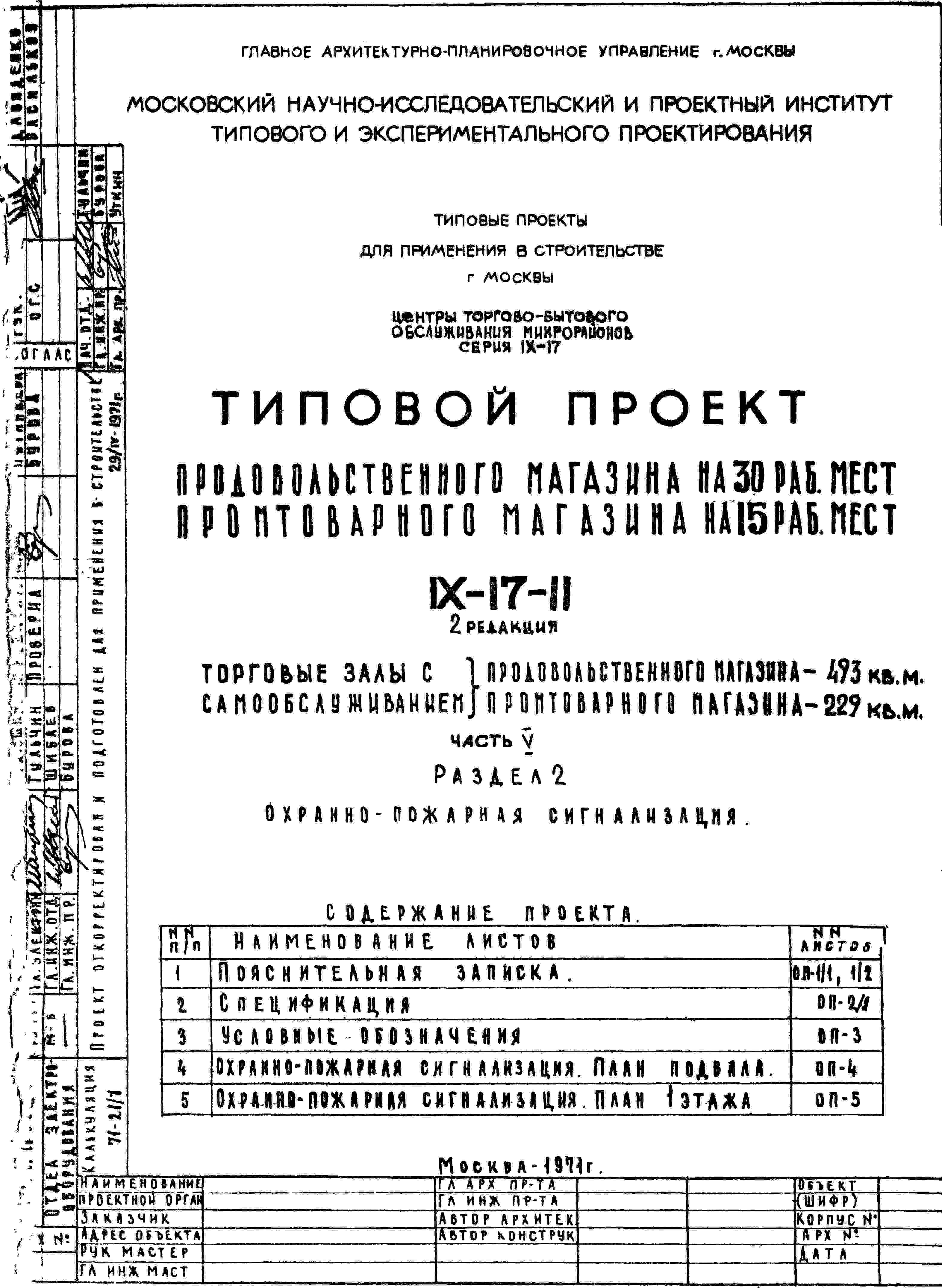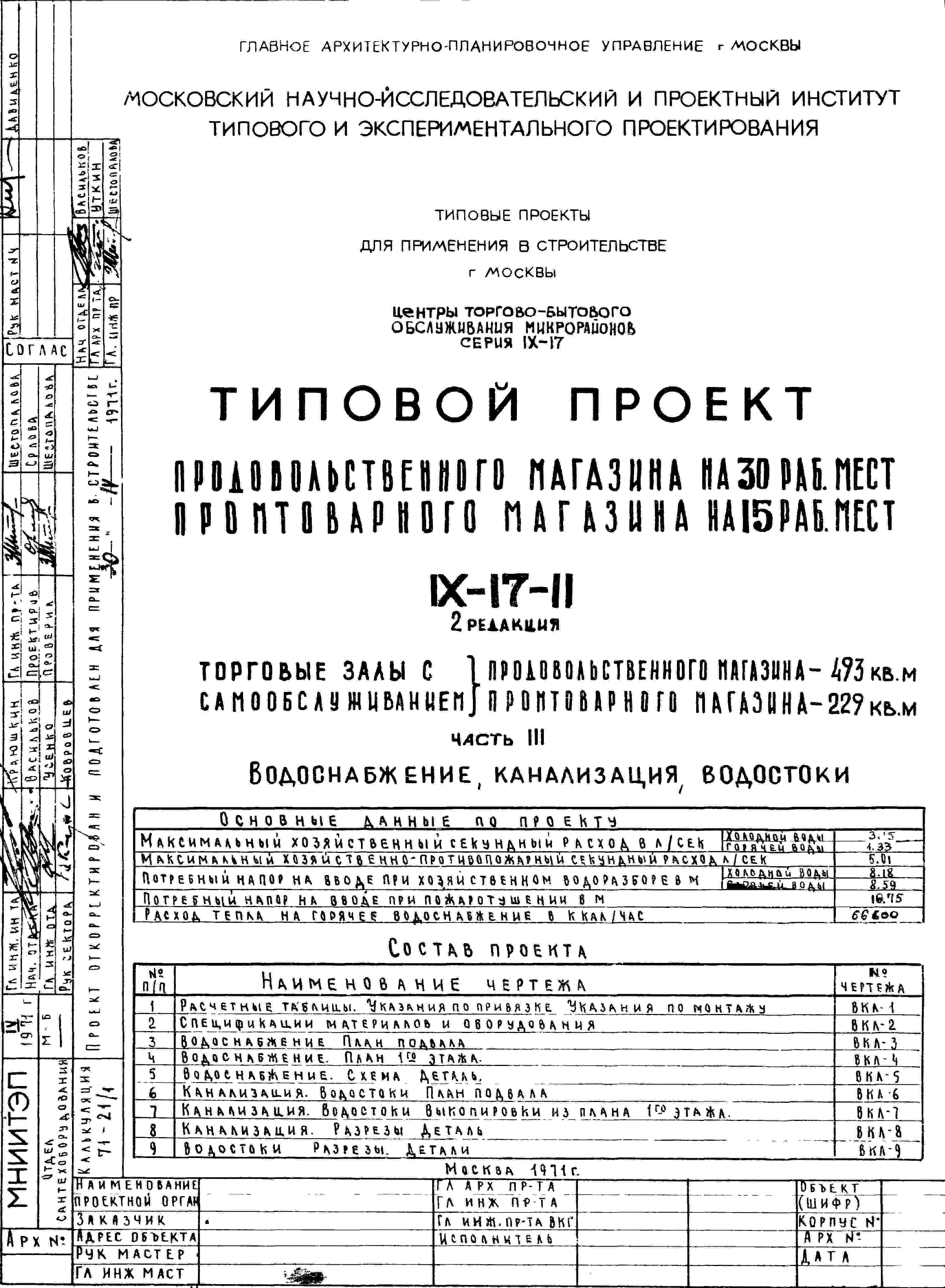 Типовой проект IX-17-11 Продовольственный магазин на 30 рабочих мест. Промтоварный магазин на 15 рабочих мест для строительства в г. Москве