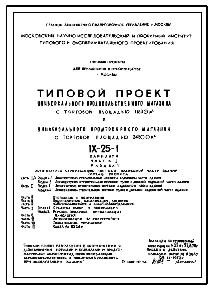 Типовой проект IX-25-1 Универсальный продовольственный магазин с торговой площадью 11830 .кв. и универсальный промтоварный магазин с торговой площадью 24500 м.кв.