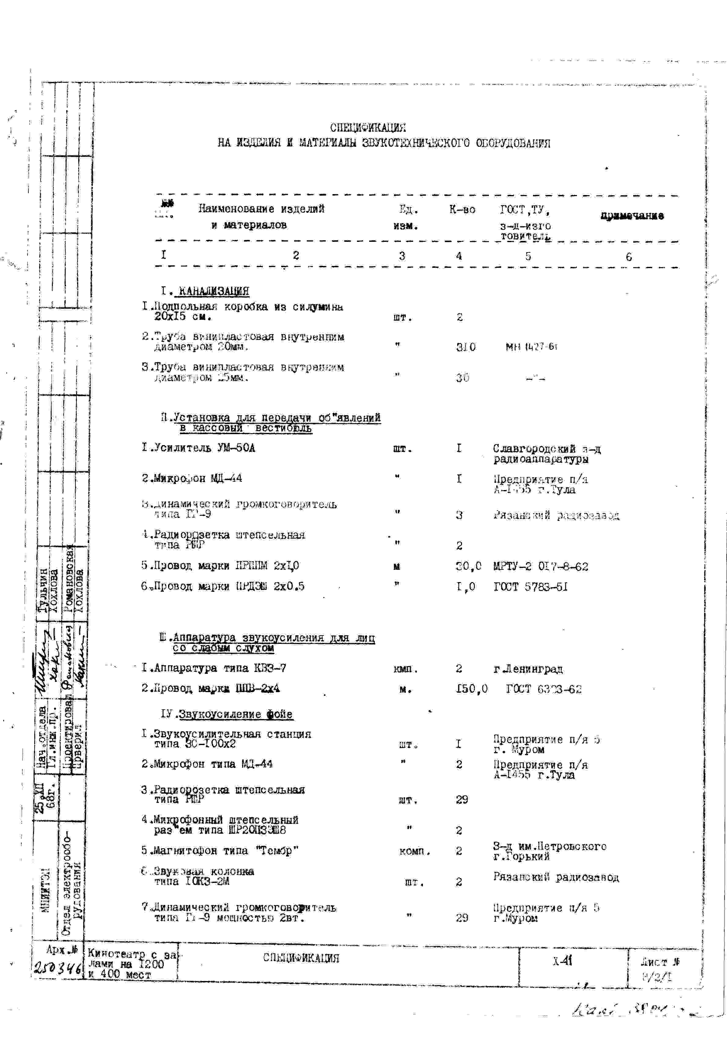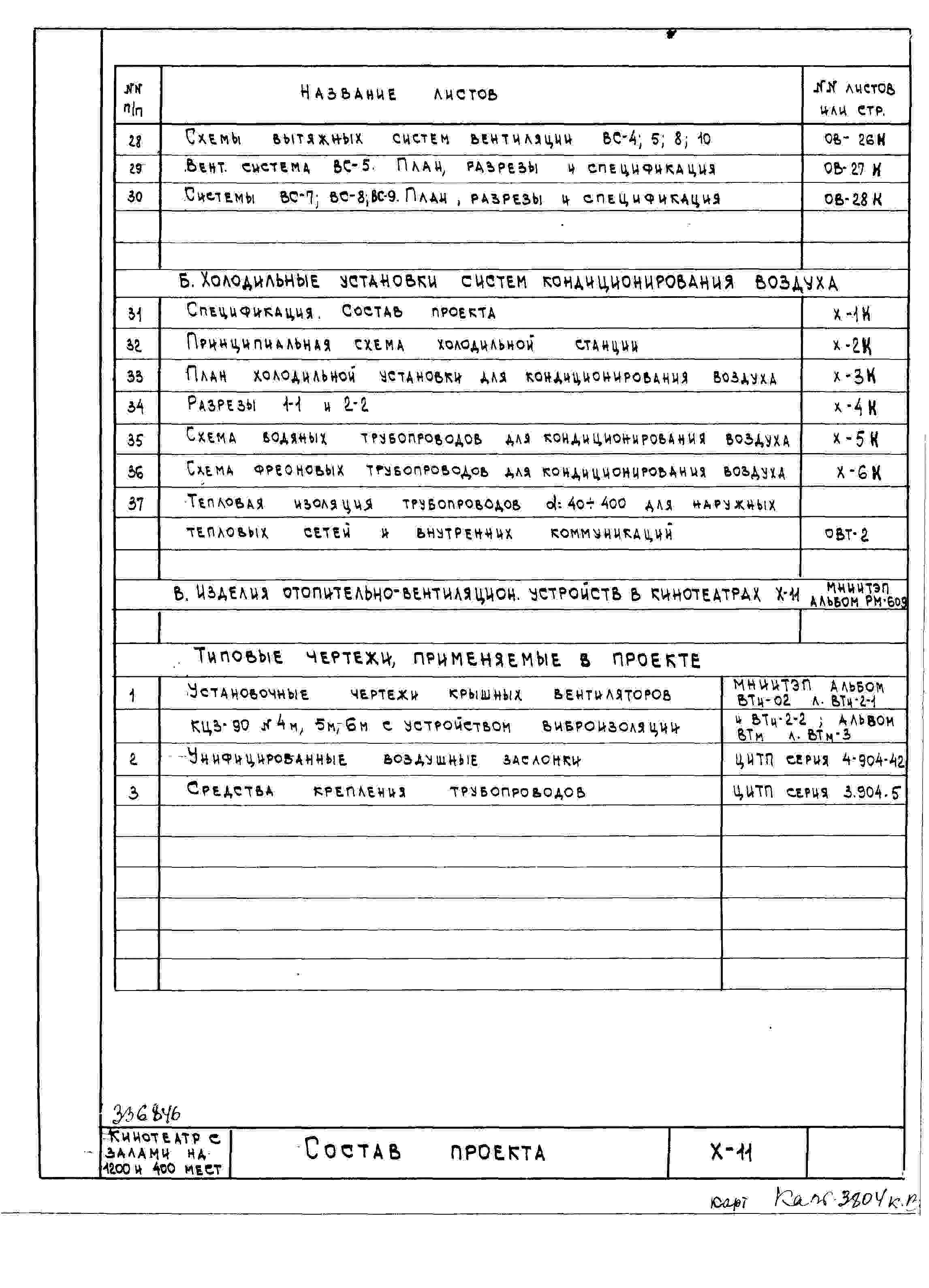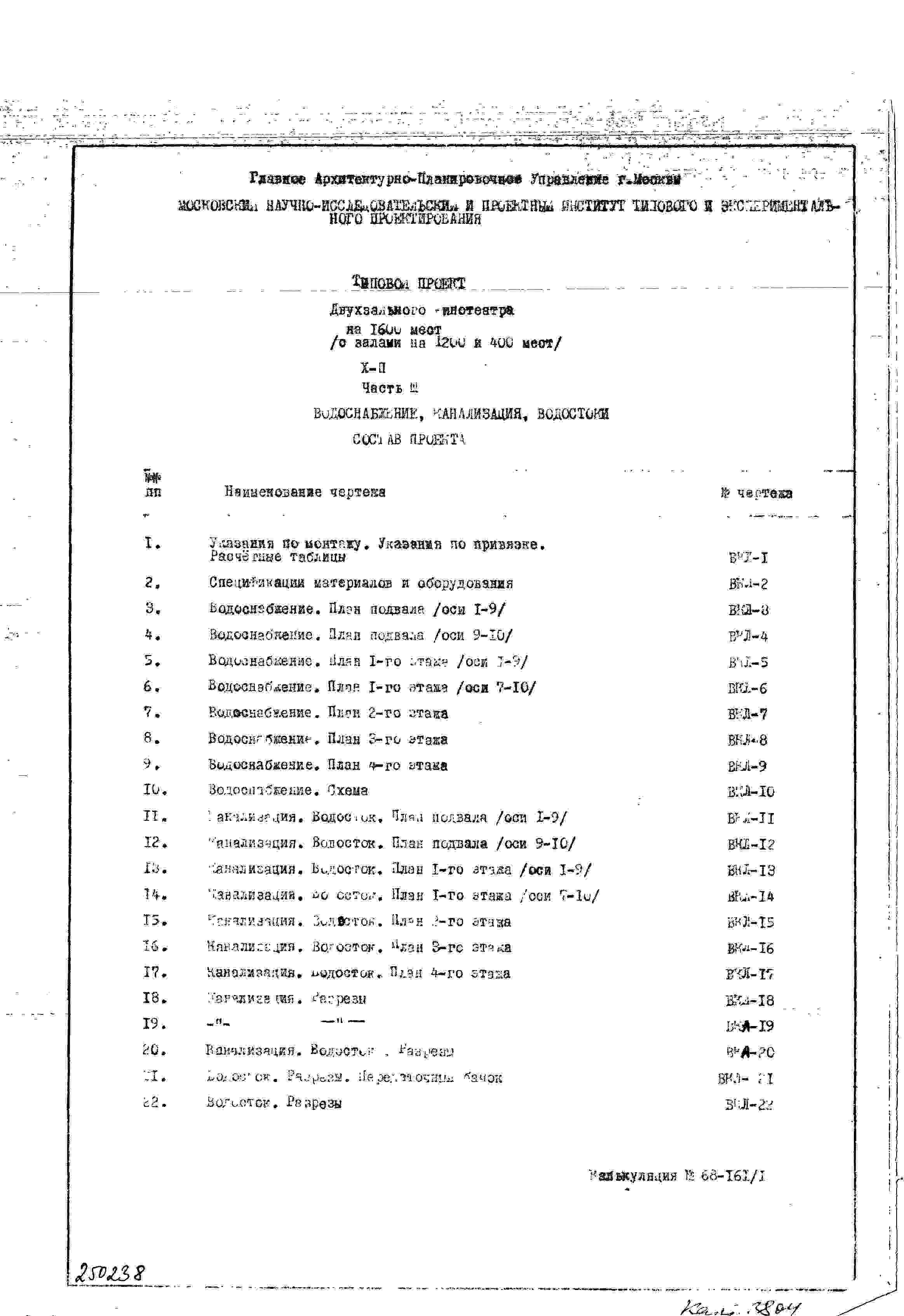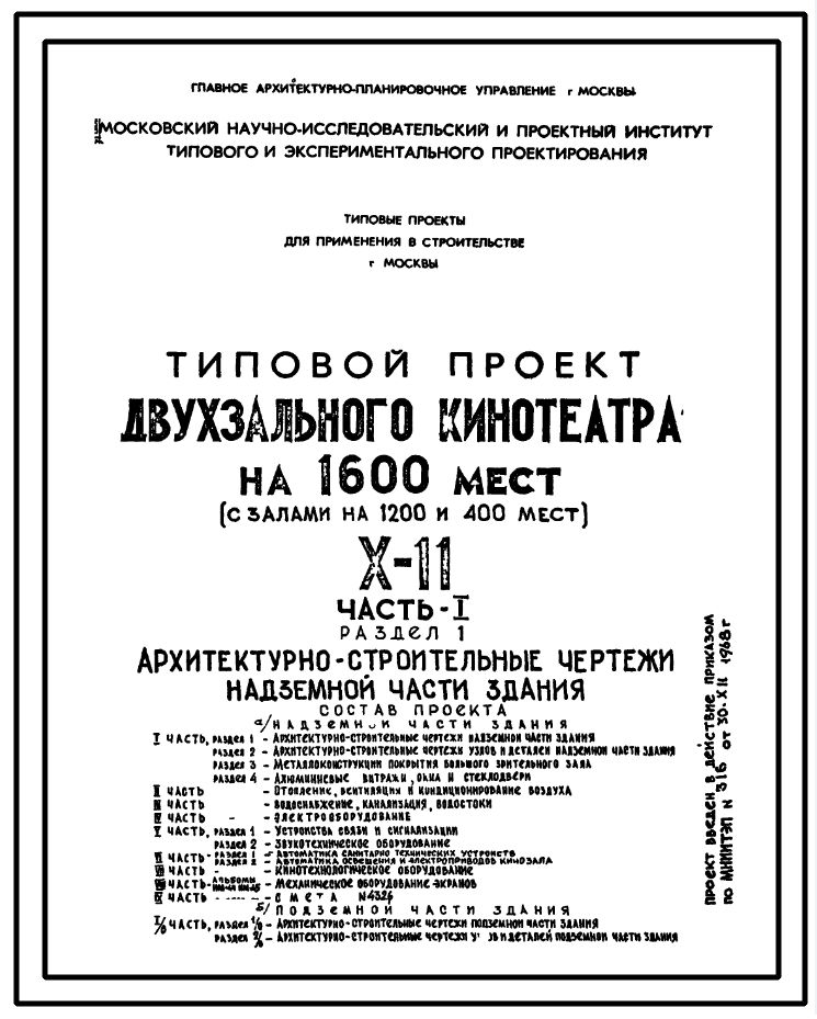 Типовой проект X-11 Двухзальный кинотеатр на 1600 мест для строительства в г. Москве (Х-11)