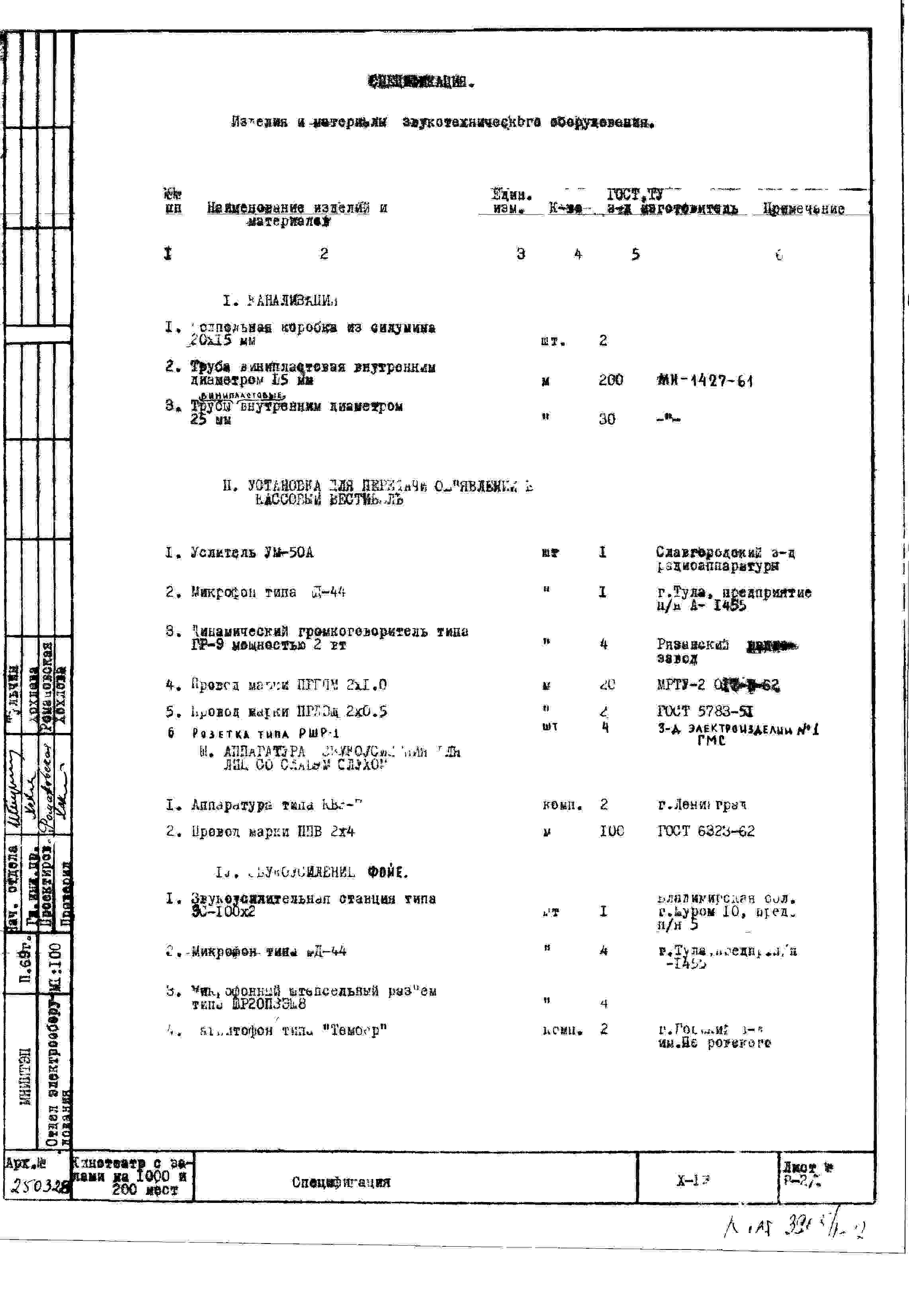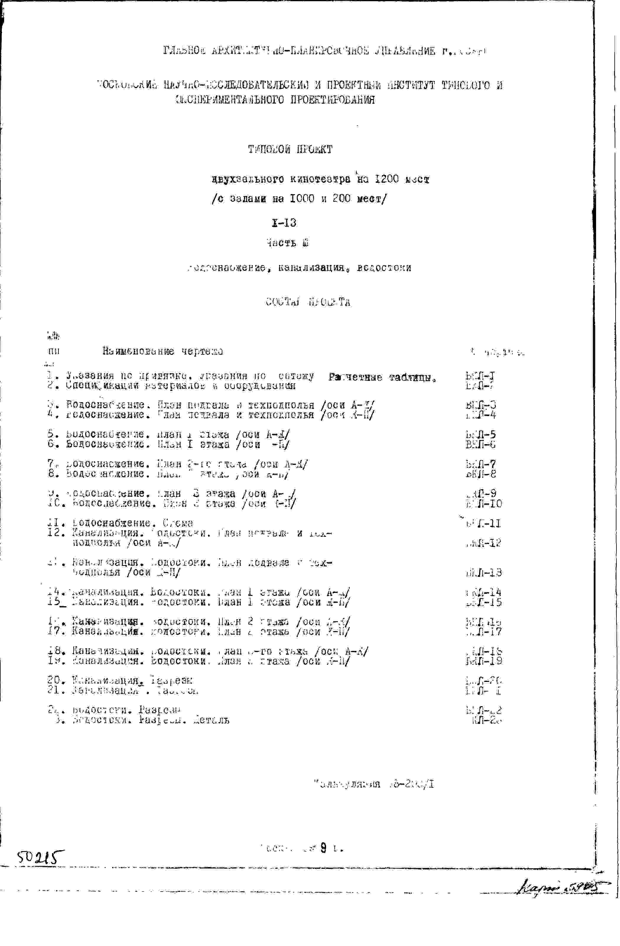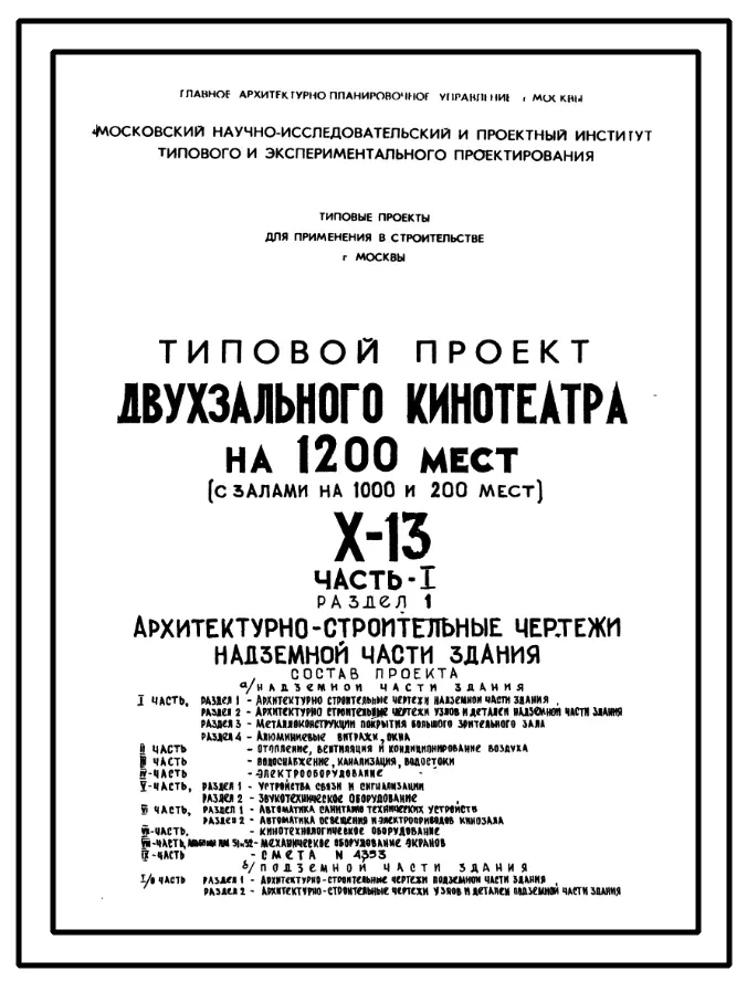 Типовой проект X-13 Двухзальный кинотеатр на 1200 мест (с залами на 1000 и 200 мест) для строительства в г. Москве (Х-13)