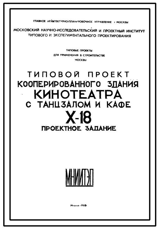 Типовой проект X-18 Двухзальный кинотеатр на 1300 и 200 мест с кафе и танцзалом для строительства в г. Москве