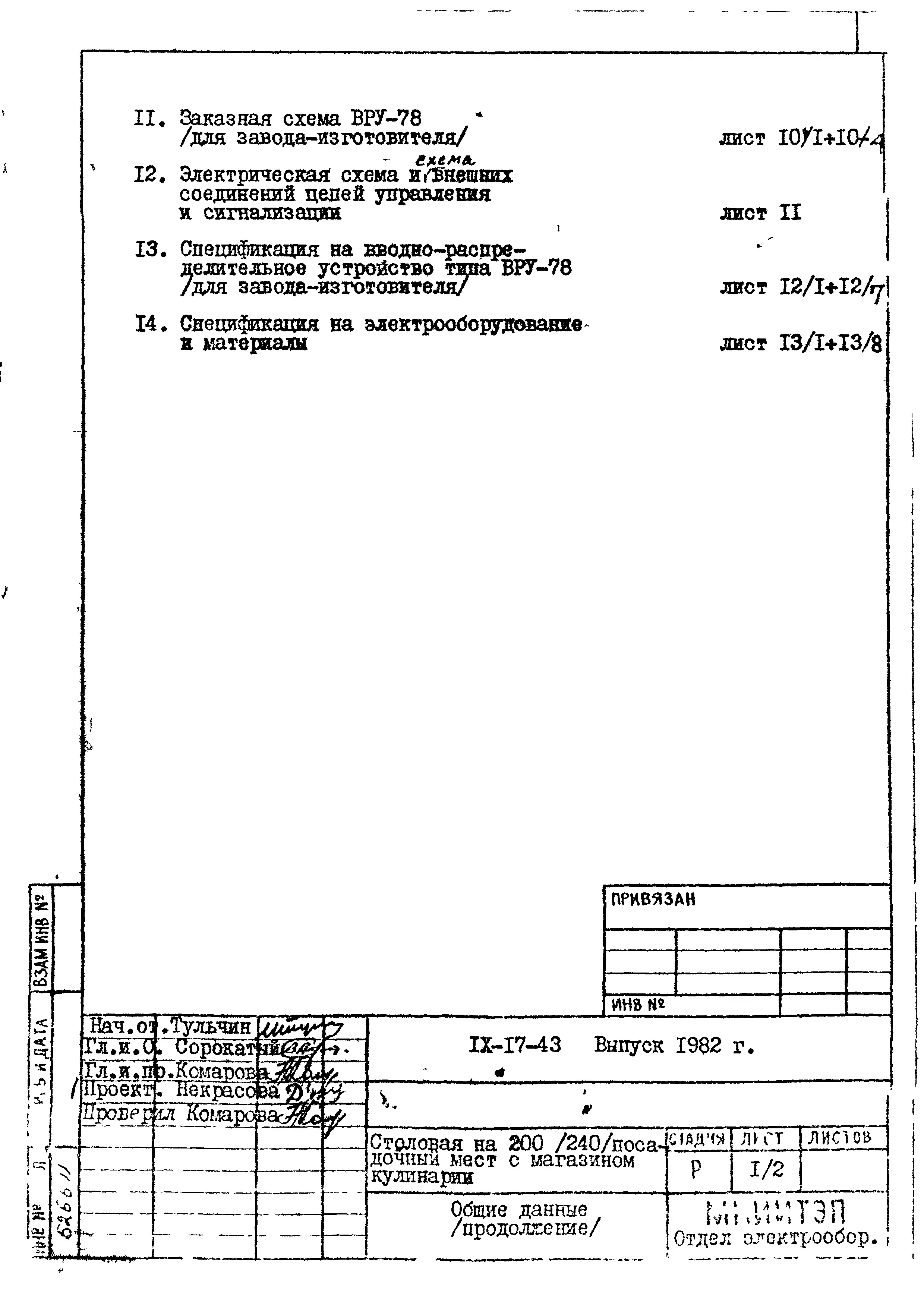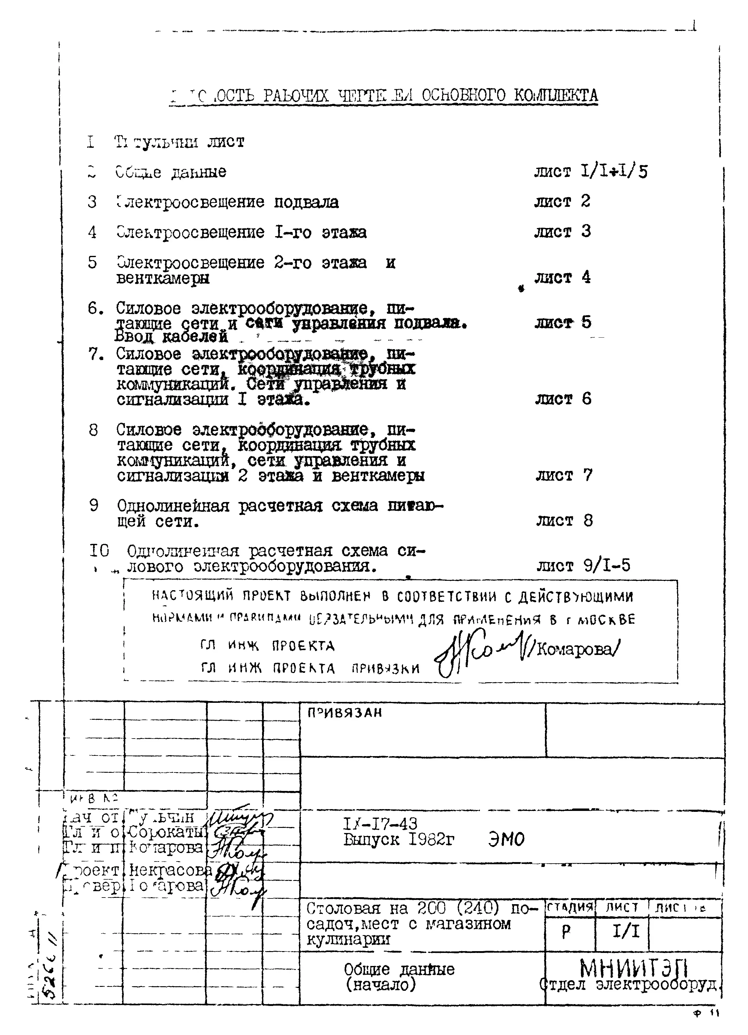 Типовой проект IX-17-43 Кафе-столовая на 200 (240) посадочных мест (Выпуск 1982 года) для строительства в г. Москве