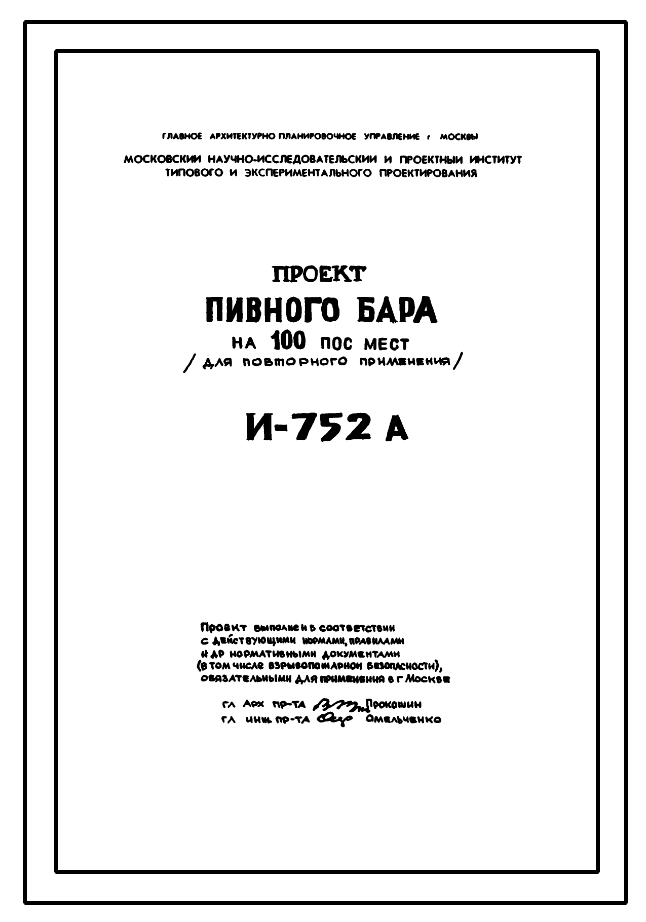 Типовой проект И-752А Пивбар на 100 посадочных мест . Каркас типа МАРХИ. Стены трехслойные алюминиевые панели для строительства в г. Москве