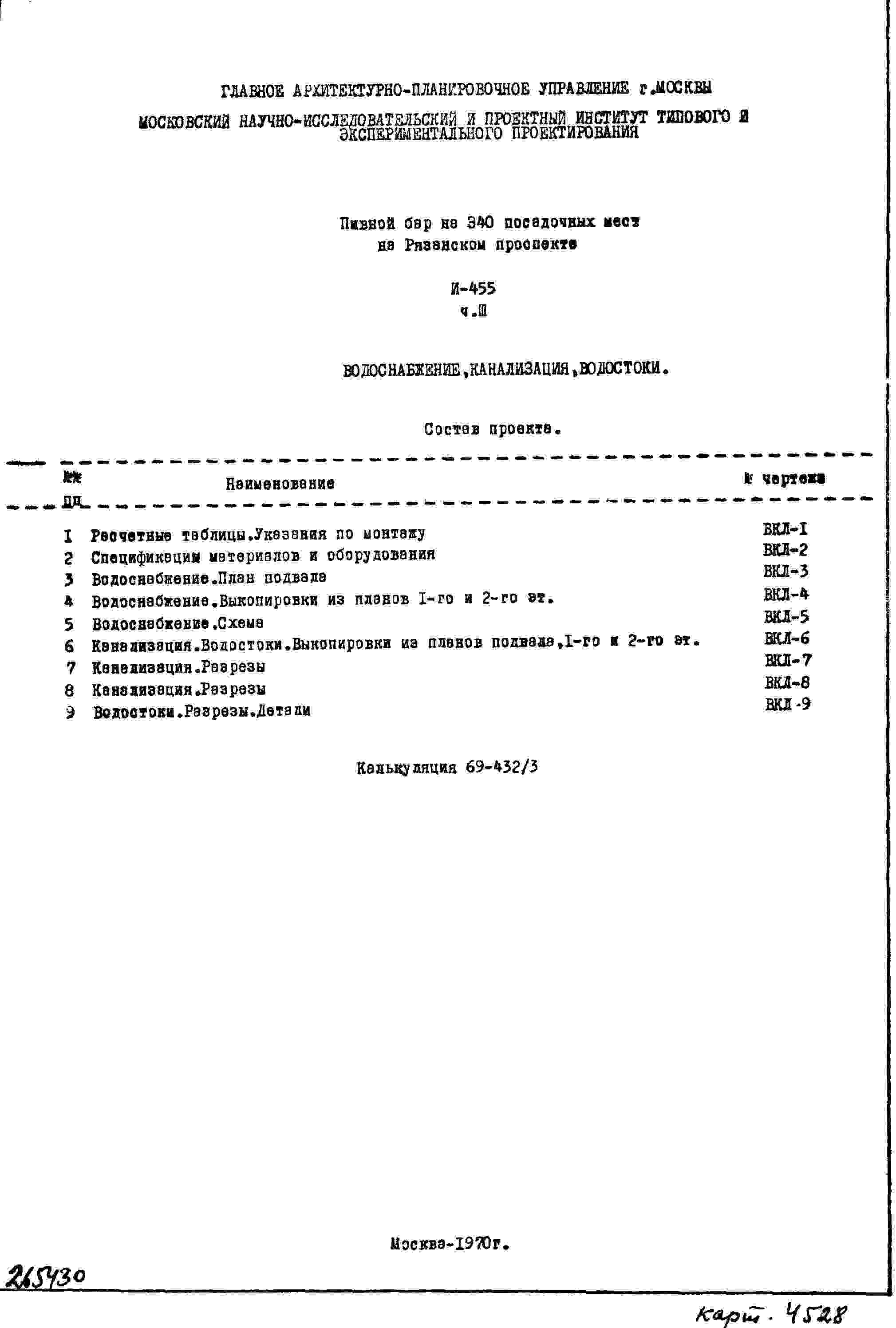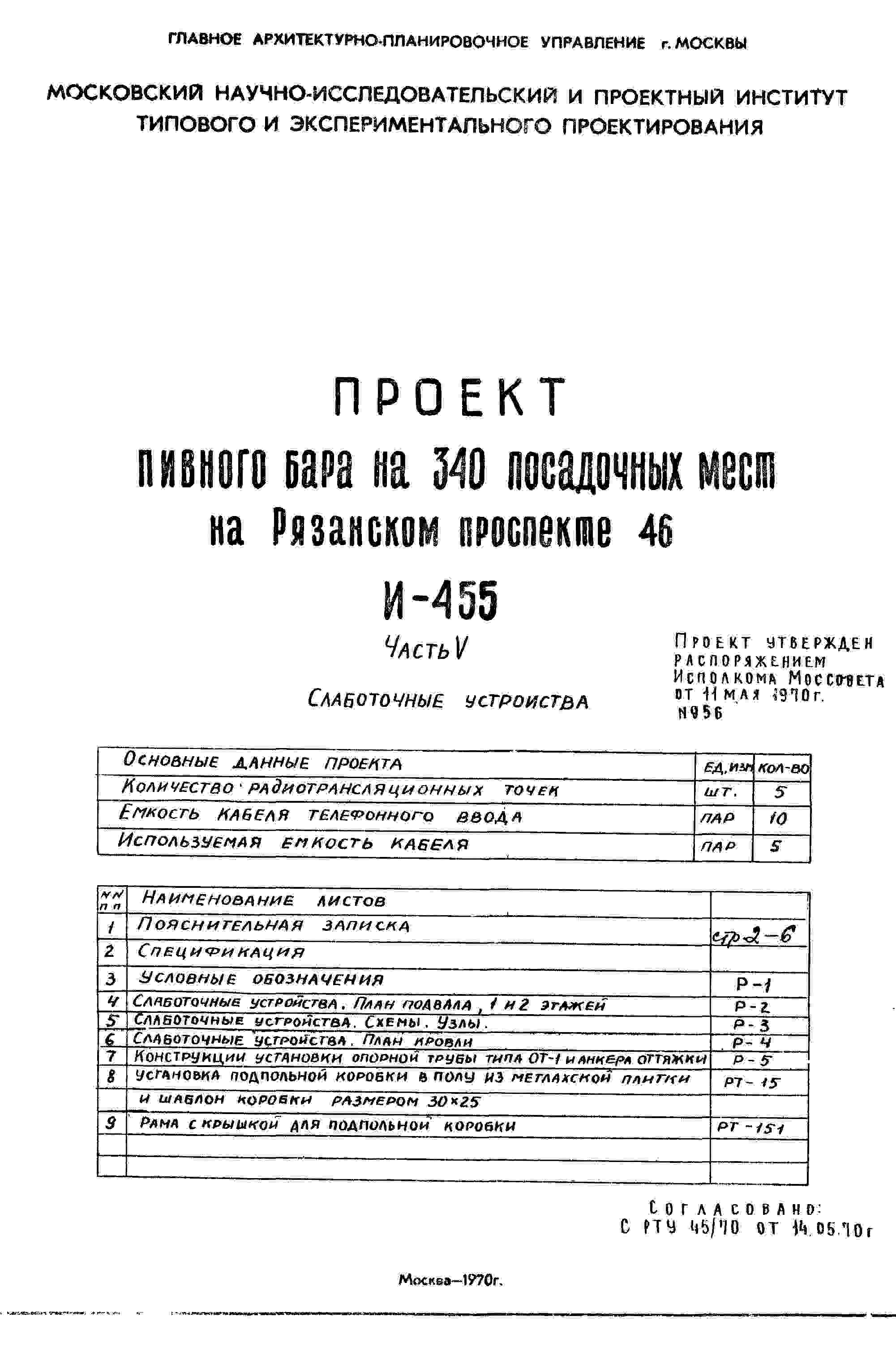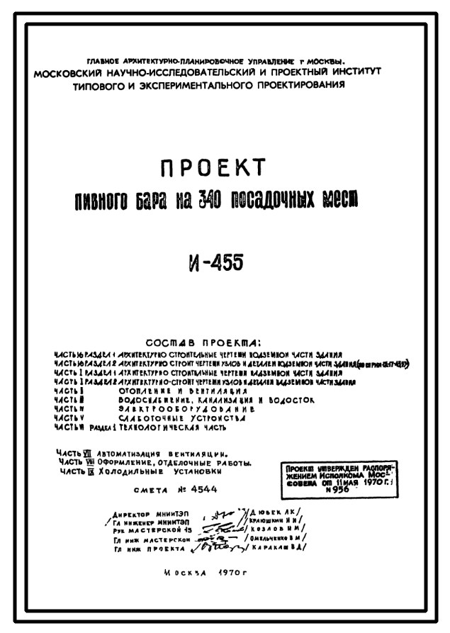 Типовой проект И-455 Пивной бар на 340 посадочных мест для строительства в г. Москве