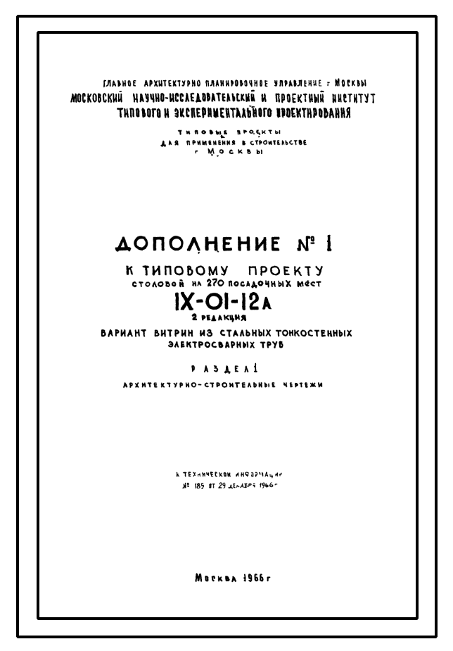 Типовой проект IX-01-12а Столовая на 270 посадочных мест