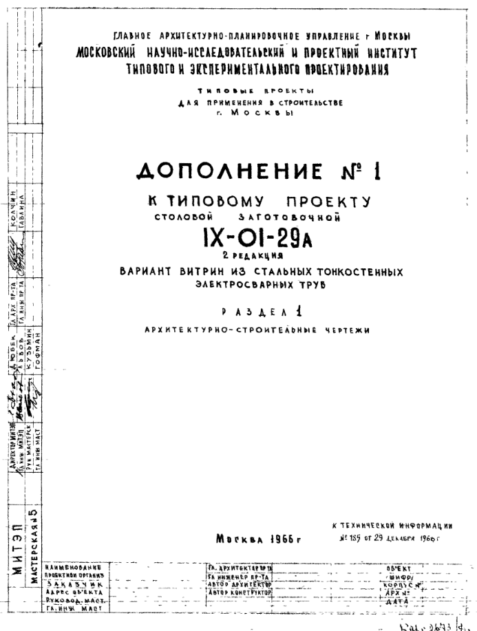 Типовой проект IX-01-29а Столовая заготовочная