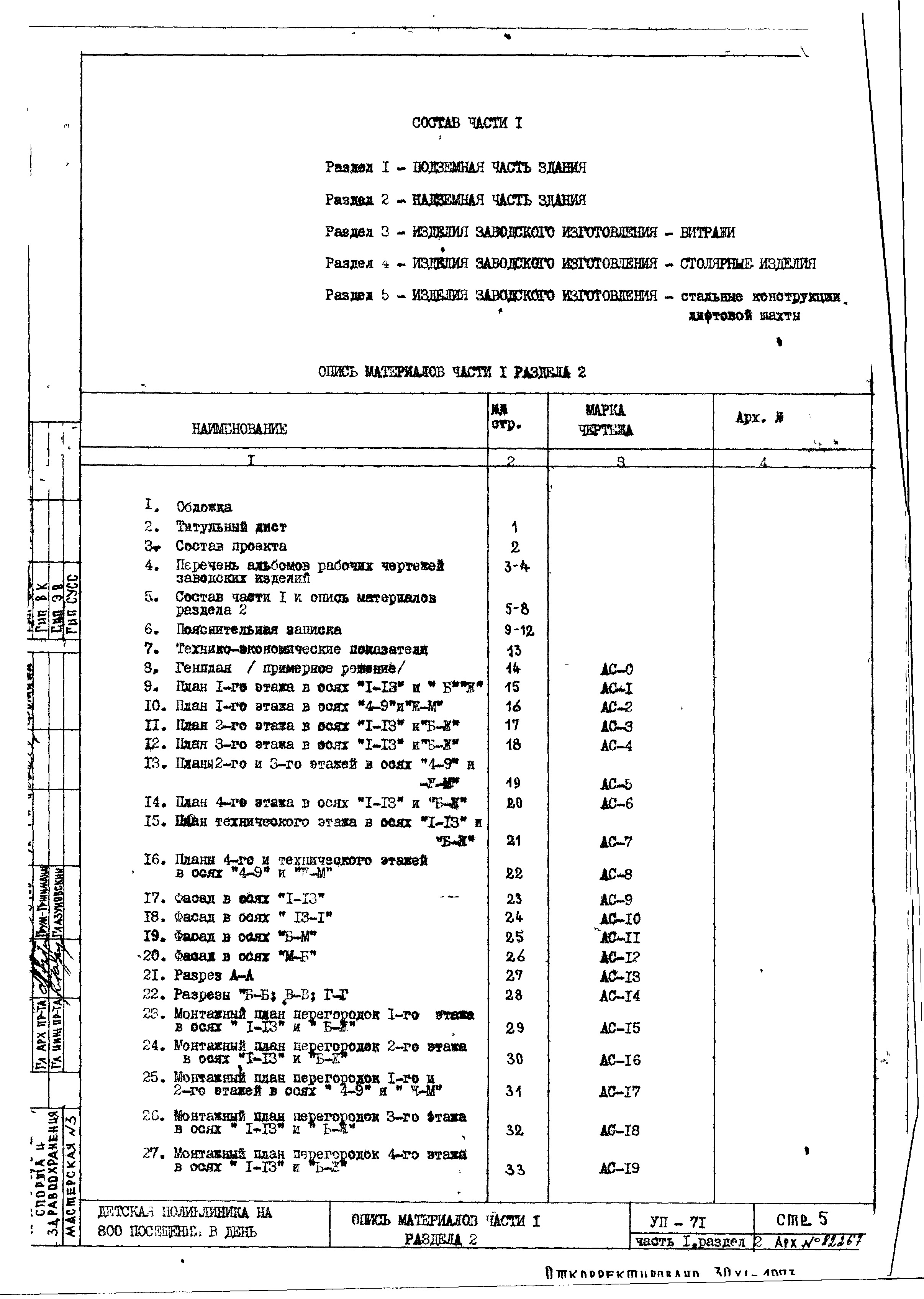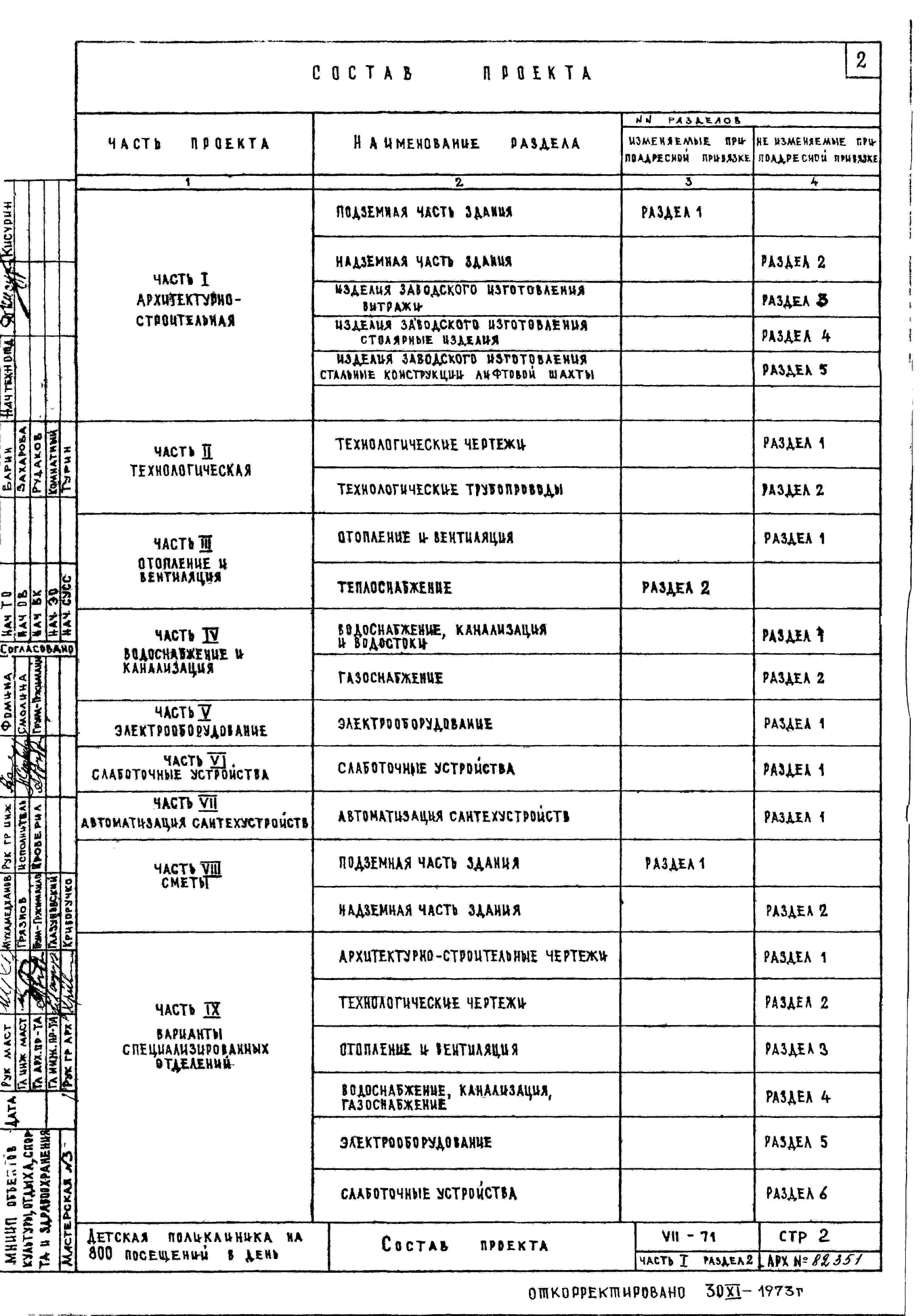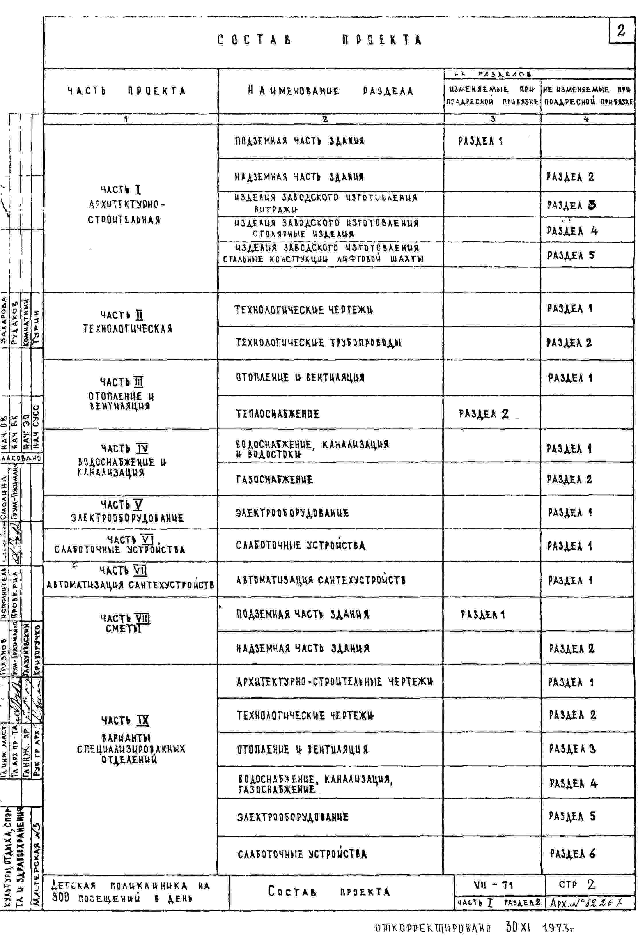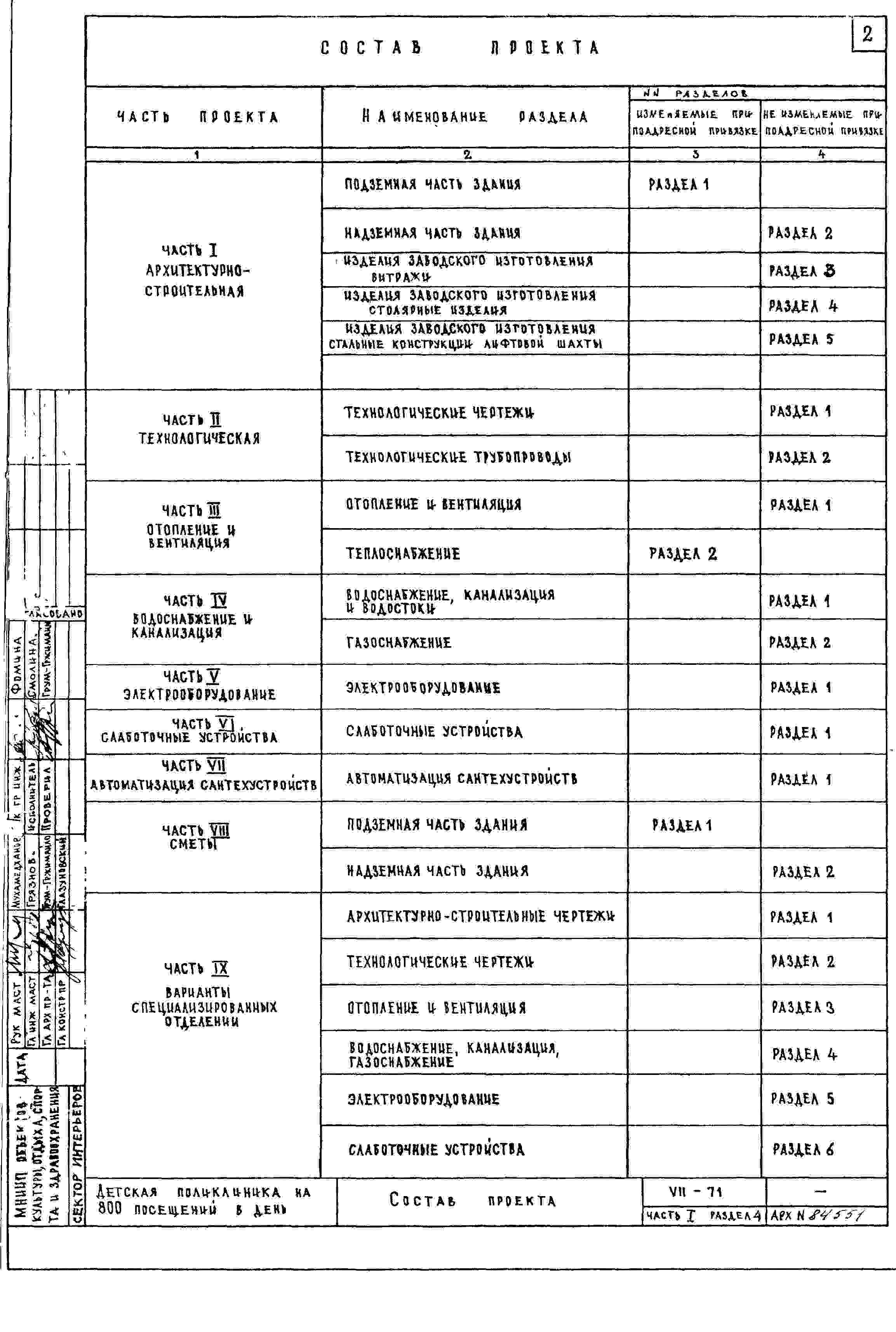 Типовой проект VII-71 Детская поликлиника на 480 посещений в смену (800 в день)